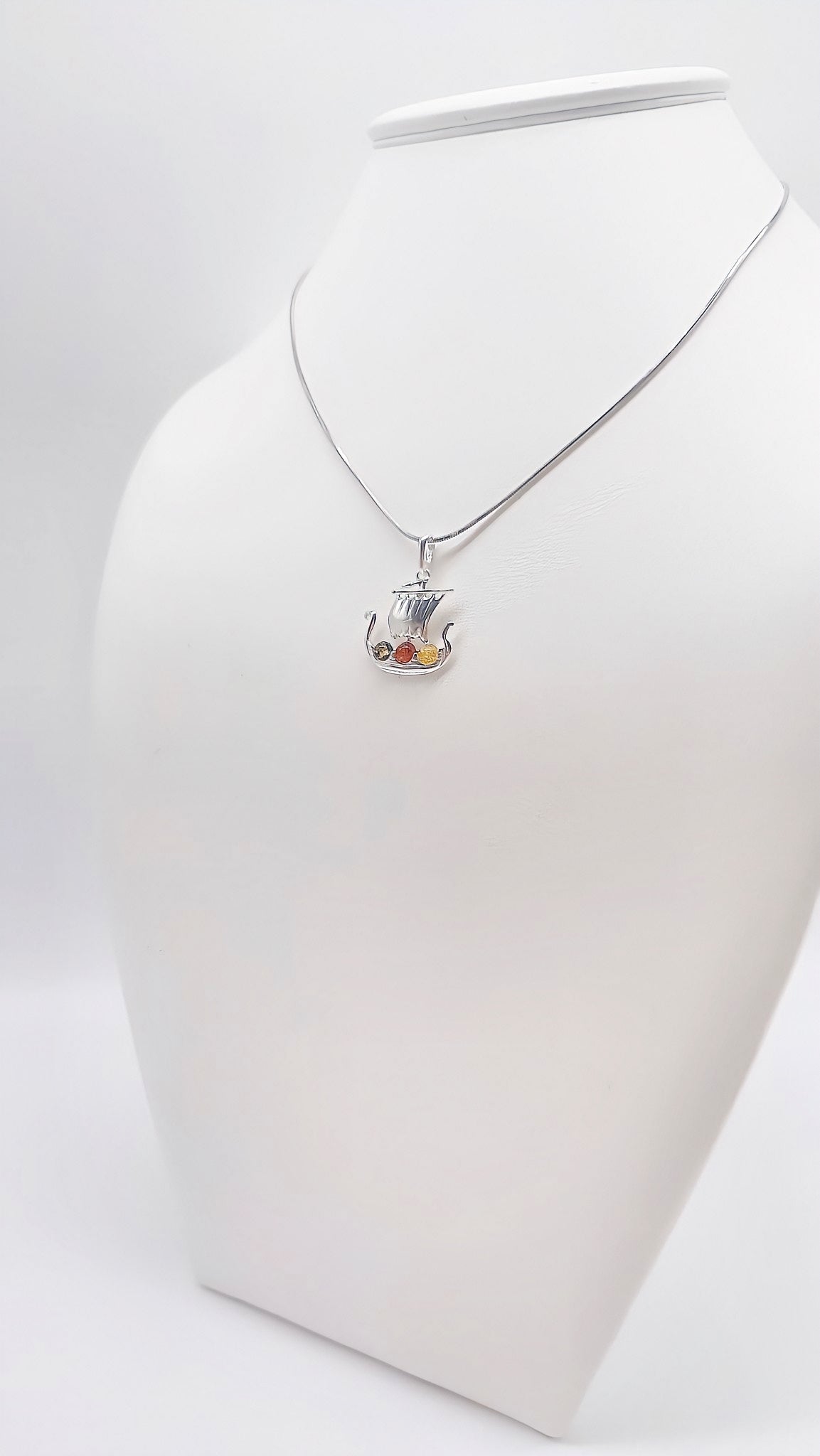 Viking boat pendant: amber and colorful stones