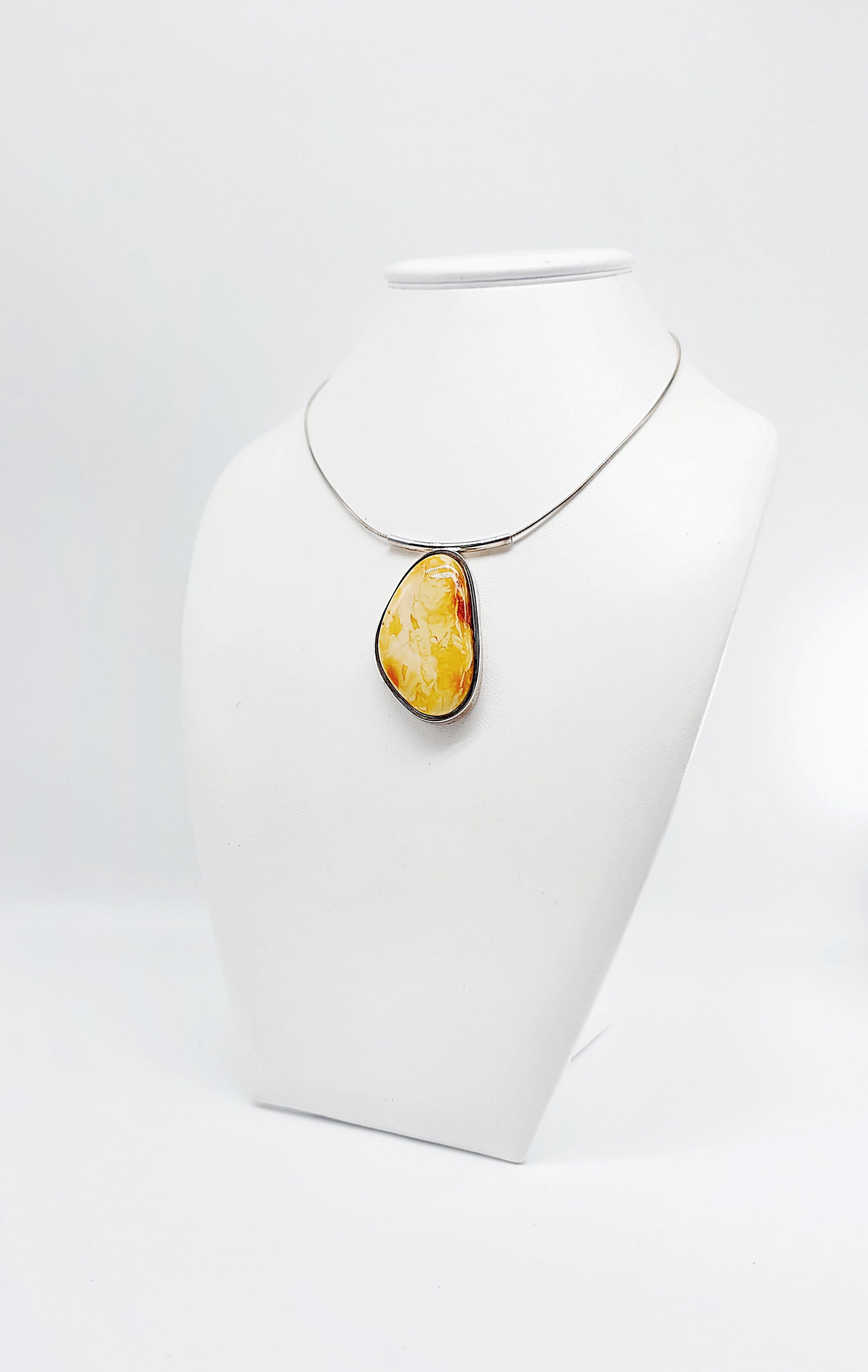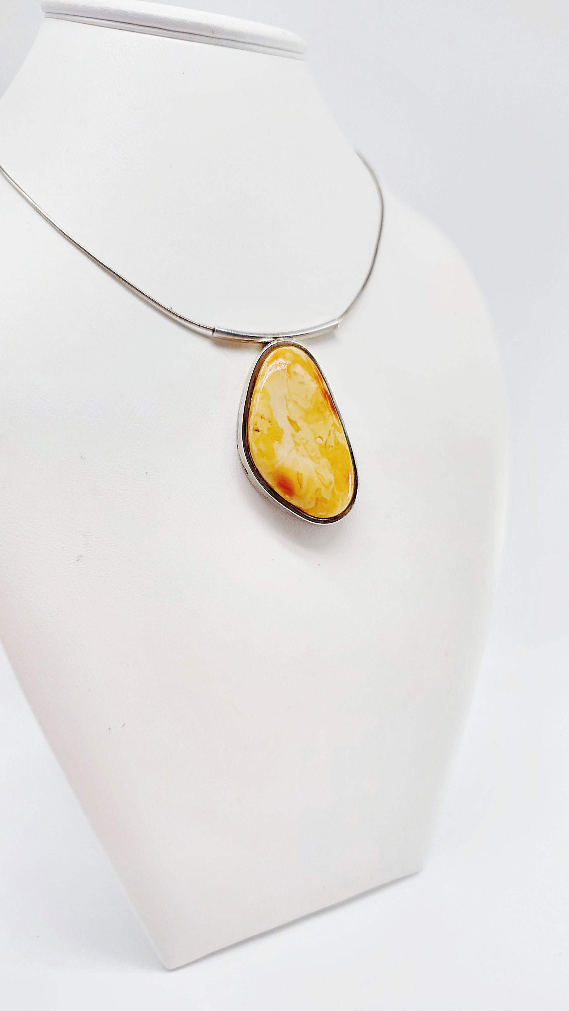 This classic amber pendant impresses with its simple elegance and the natural beauty of the stone. The warm, golden amber is framed in a simple silver setting that perfectly showcases its colors and textures. Each pendant is unique, captivating with the unique grain of the amber. This timeless piece is ideal for any occasion and adds a special touch of natural elegance and exclusivity to your look.