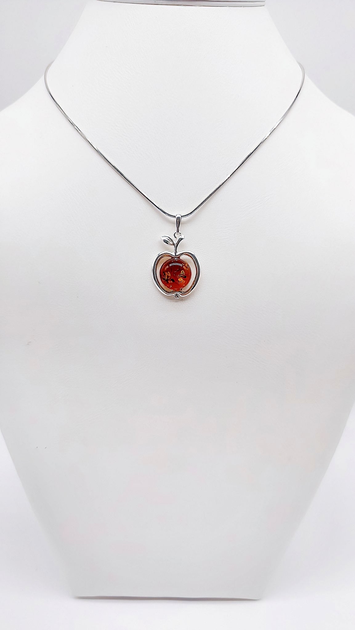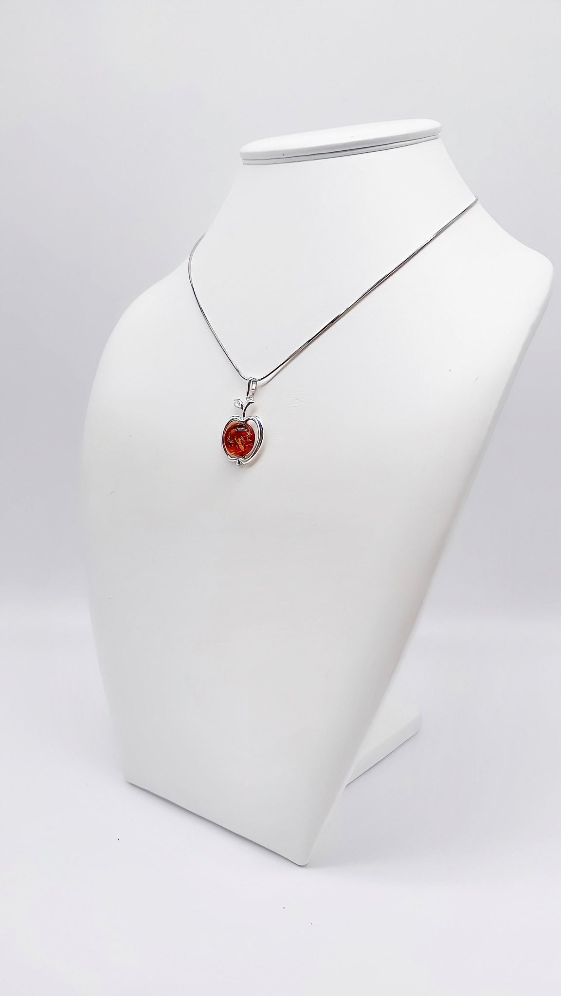 This charming apple-shaped pendant is crafted from high-quality 925 Sterling silver and adorned with luminous amber. The detailed design and the warm color of the amber make this pendant a special piece of jewelry that can be worn both everyday and on special occasions. The amber harmonizes perfectly with the lustrous silver and lends the pendant a timeless elegance. Ideal as a stylish accessory or as a special gift for someone you love.