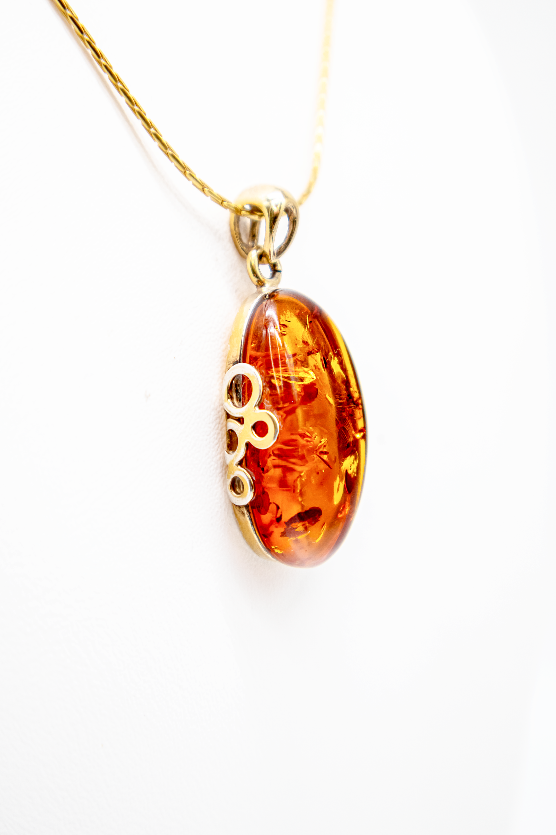 Feine vergoldete Akzente betonen die natürliche Schönheit des Bernsteins, während das elegante Design die Kombination aus Silber und Gold zu einem stilvollen Highlight macht. Jeder Anhänger ist ein handgefertigtes Unikat – einzigartig und mit Liebe zum Detail gefertigt.