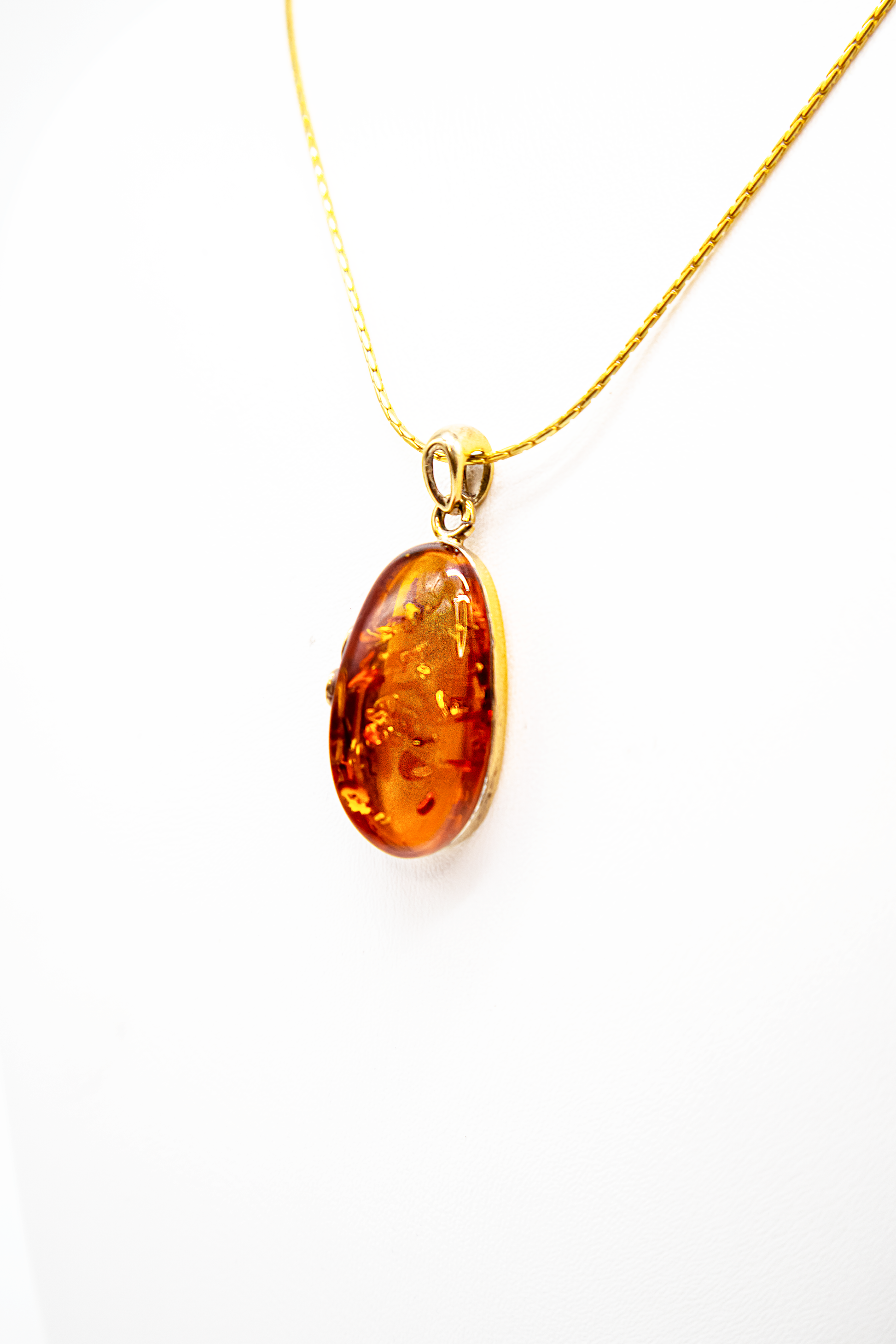 Bernstein Anhänger vergoldet – 24K 925er Silber Unikat