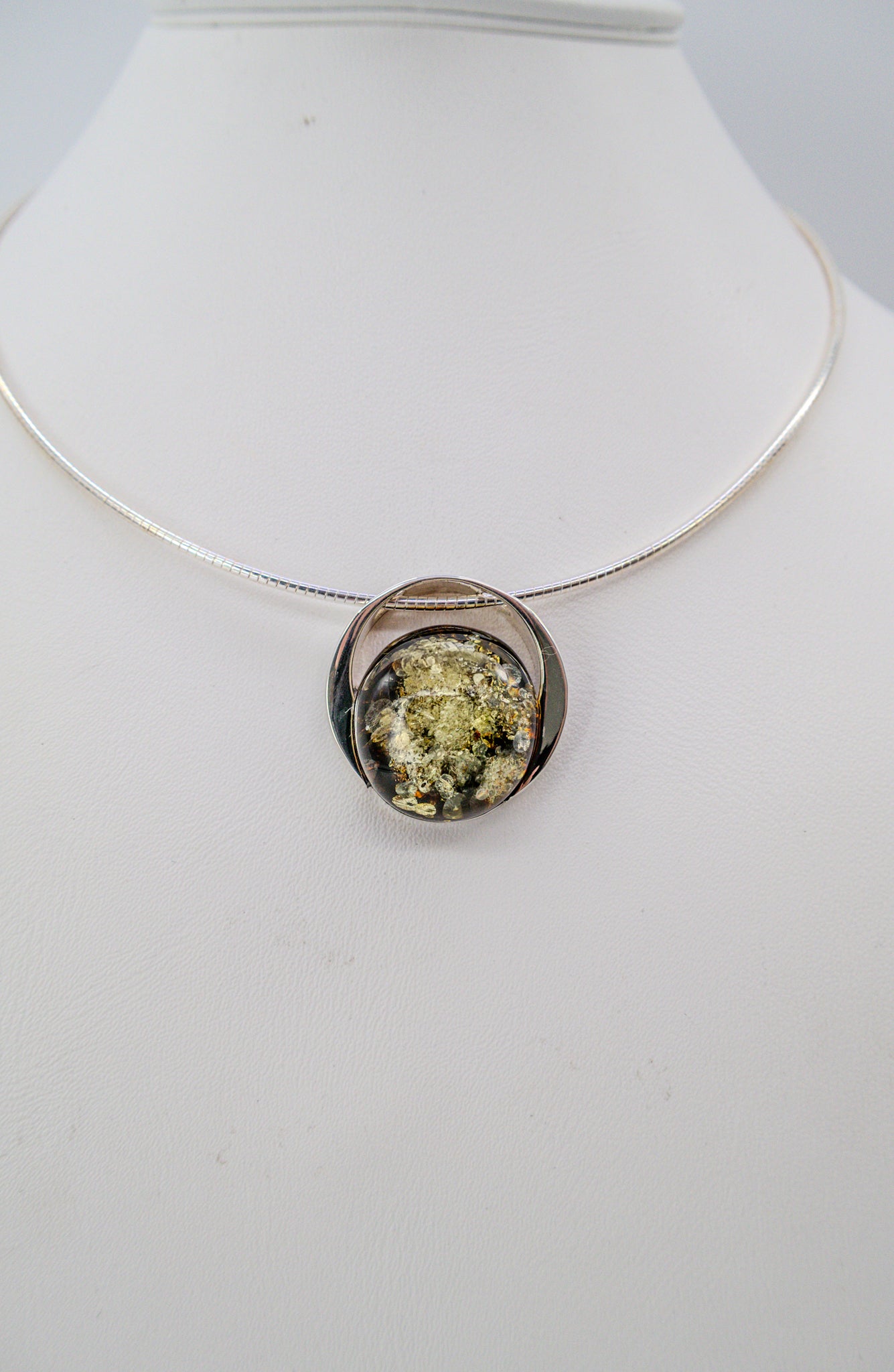 Funkelnder heller Bernstein mit einzigartigen Einschlüssen, gefasst in einem harmonischen Silberrahmen – ein stilvolles Einzelstück.