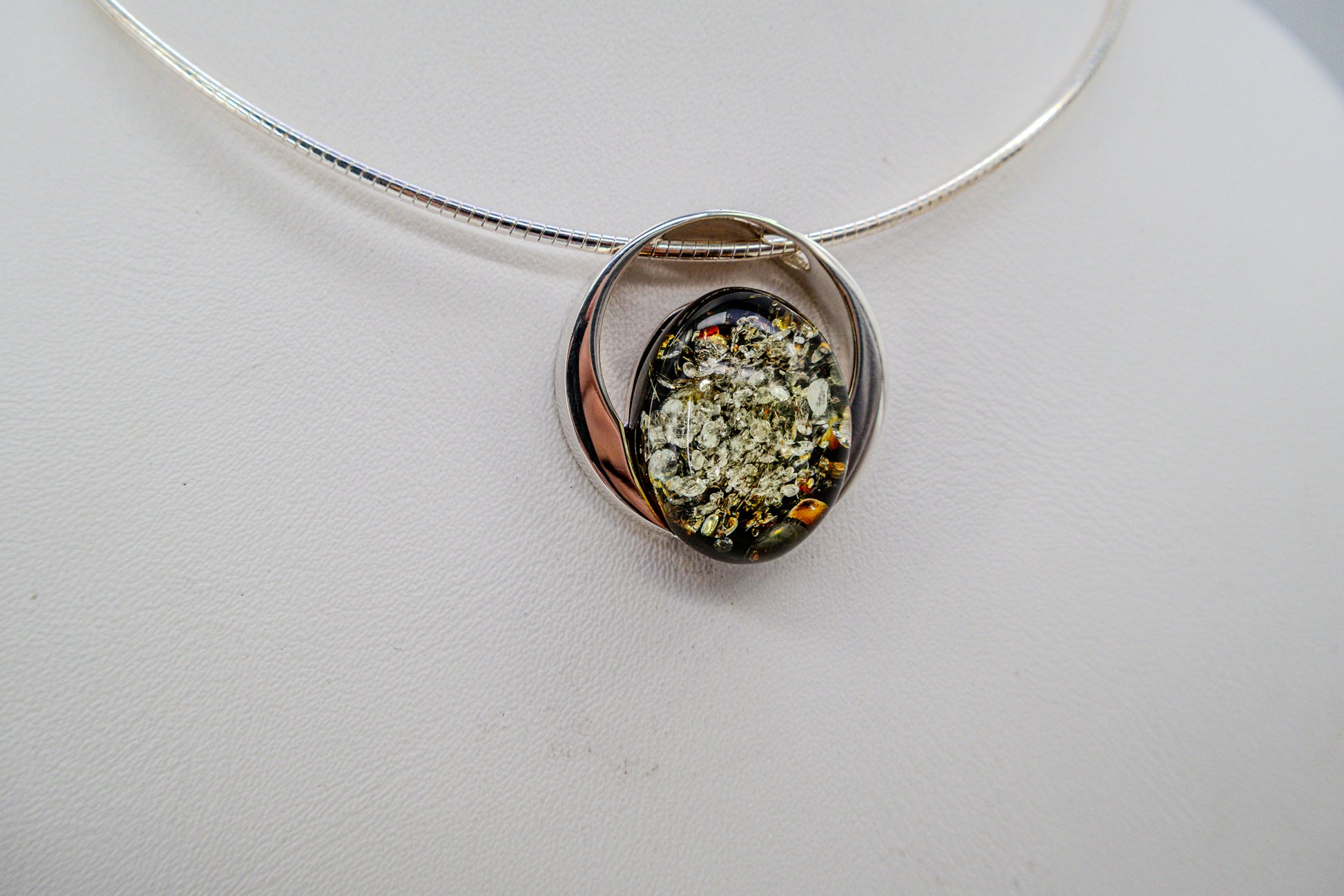 Dieser elegante Anhänger aus 925er Sterlingsilber überzeugt durch seinen einzigartigen Bernstein mit faszinierendem Glitzern und Einschlüsse in Gold- und Grüntönen. Mit seinen kompakten Maßen von ca. 3,1 cm x 3,1 cm ist er ein zeitloses Schmuckstück, das sowohl im Alltag als auch zu festlichen Anlässen getragen werden kann. Perfekt als Geschenk zum Geburtstag, Jubiläum oder zu besonderen Feiertagen – ein edles Unikat für alle Liebhaberinnen von stilvollem Bernsteinschmuck.