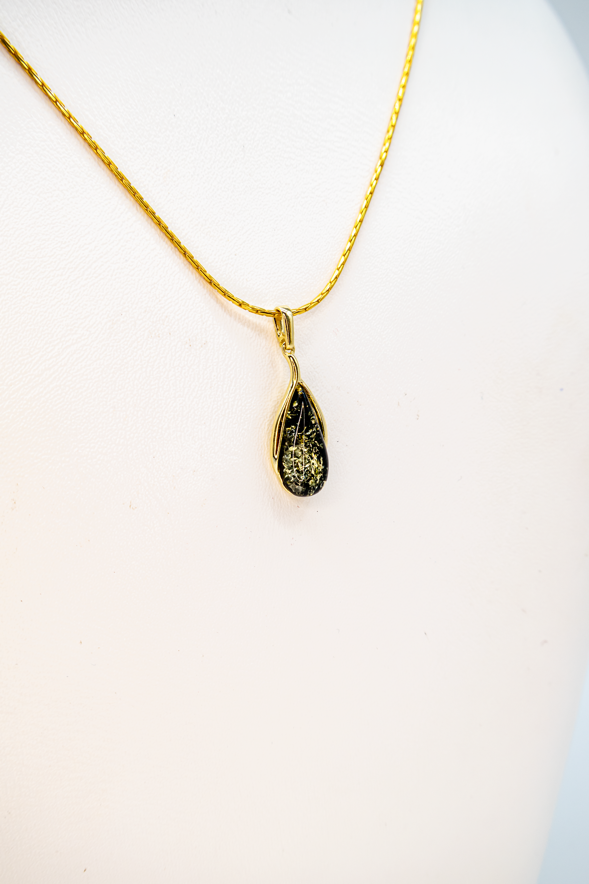 Schmuck aus echtem Bernstein – Tropfenanhänger vergoldet