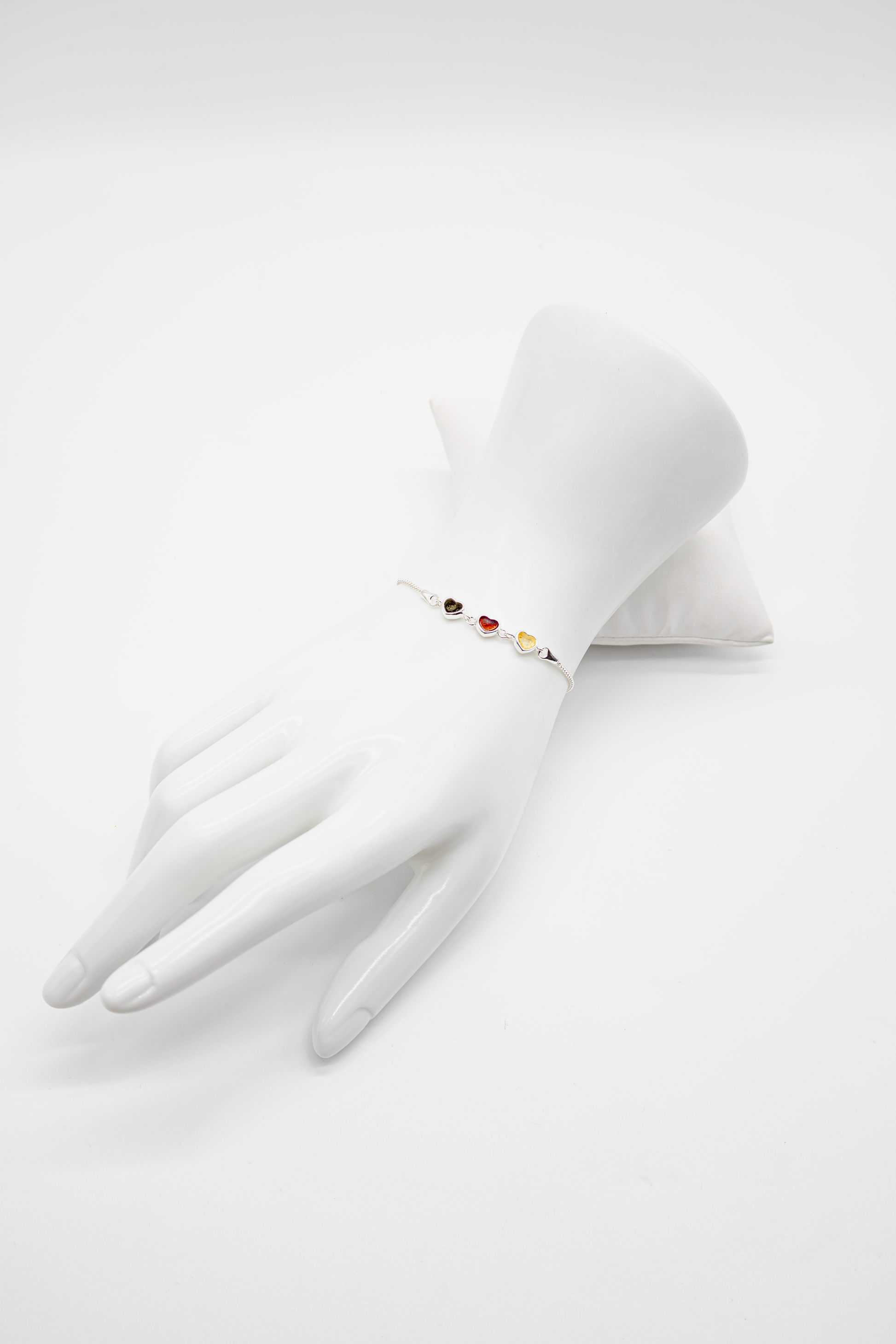Slider-Armband Silber: Farbenfrohe Bernstein-Herzen