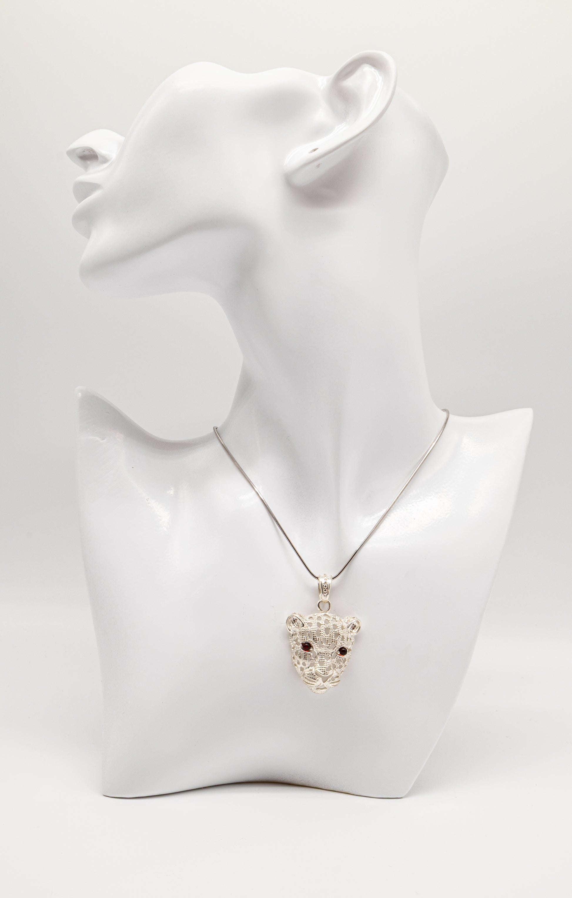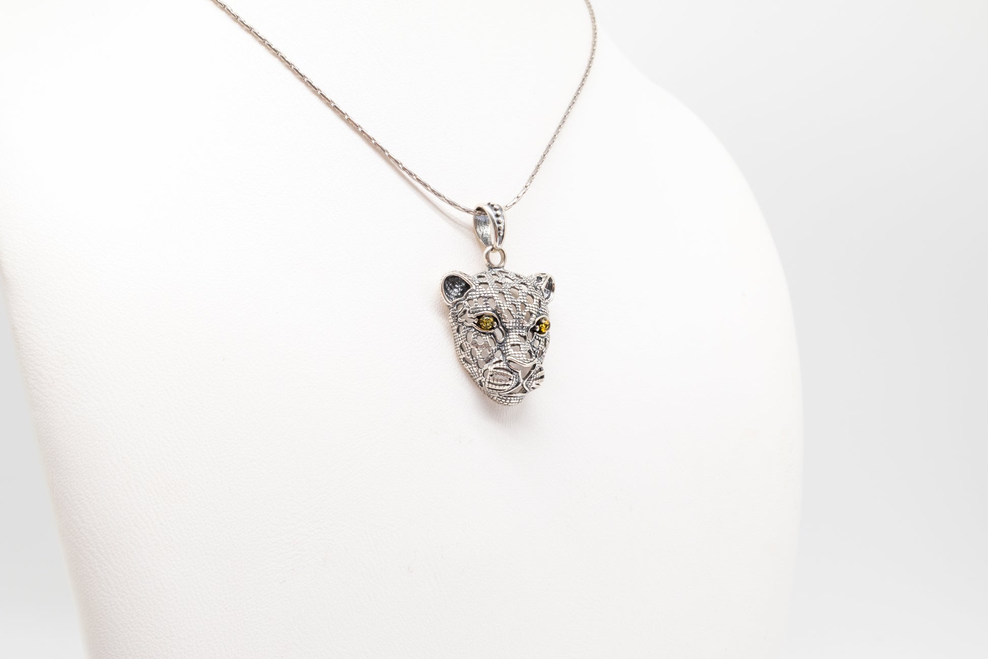 Der Leopardenkopf mit Bernsteinaugen macht diesen Anhänger zu einem einzigartigen Hingucker.