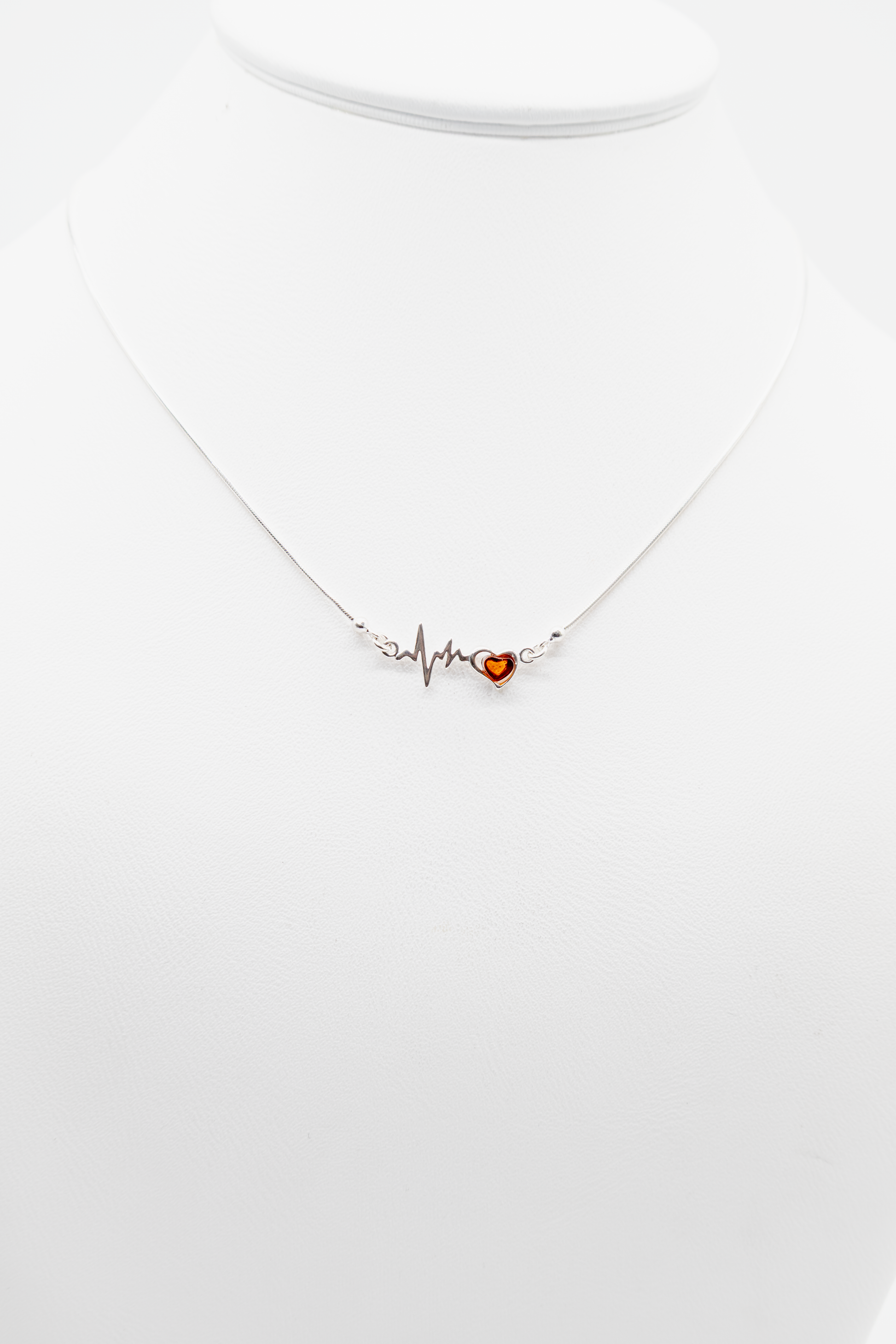 Zeigen Sie jemandem, wie viel er Ihnen bedeutet, oder tragen Sie ein Symbol der Lebensfreude direkt am Herzen. Diese filigrane Silberkette zeichnet die Linie eines Herzschlags (EKG) nach, die in einem zarten, leuchtenden Bernstein-Herz mündet.