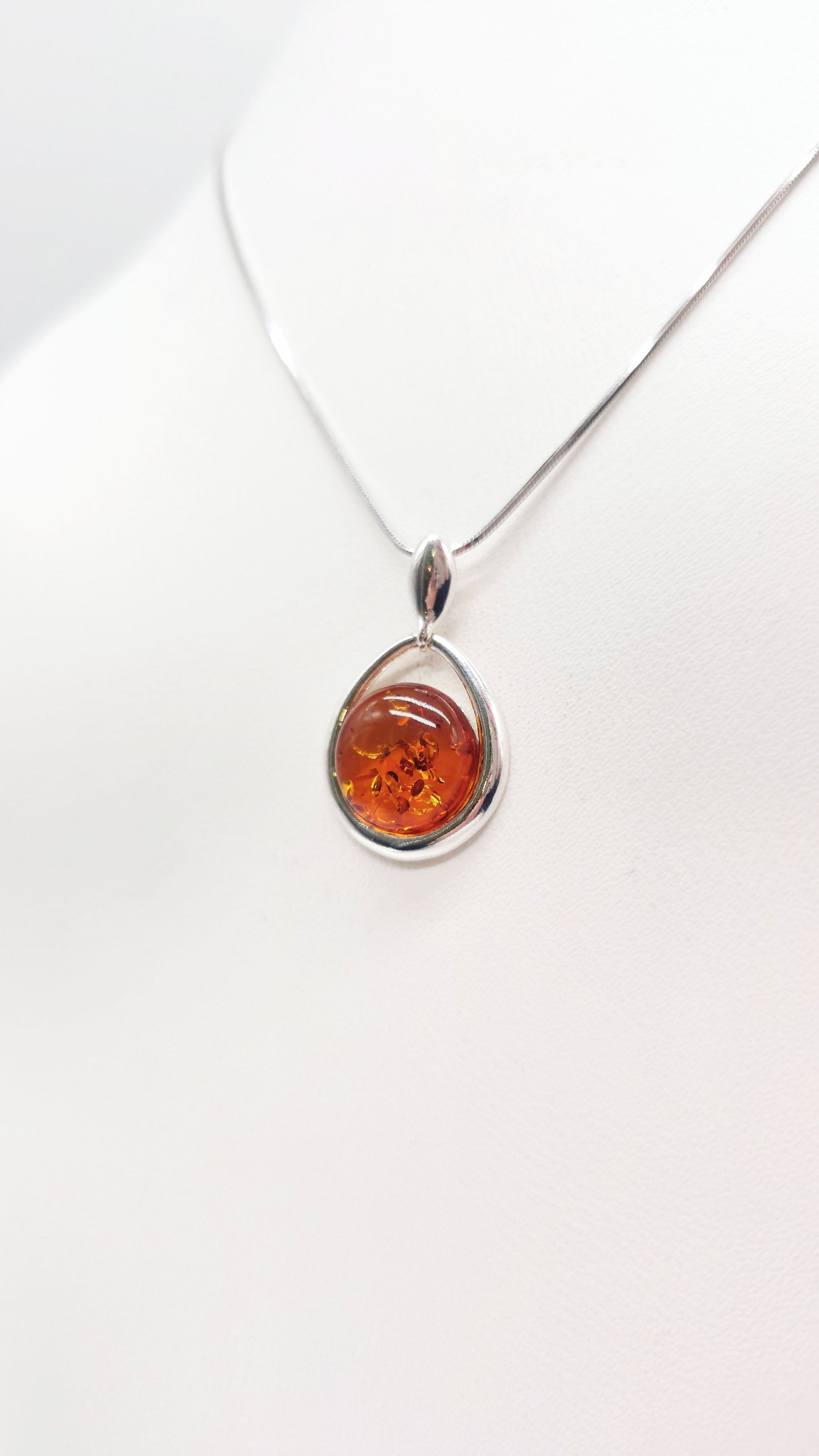 Klassischer Anhänger aus 925er Silber mit orangem Bernstein