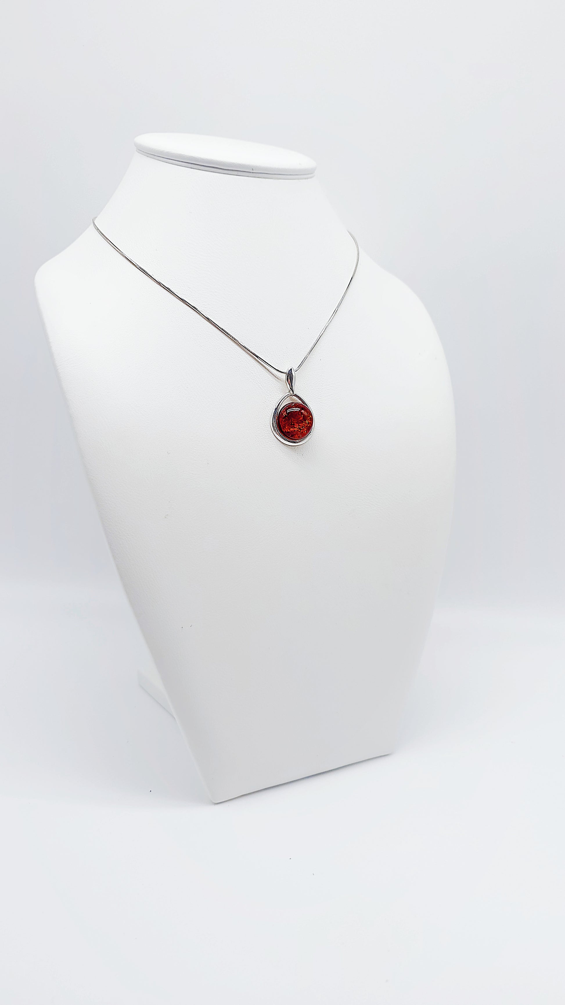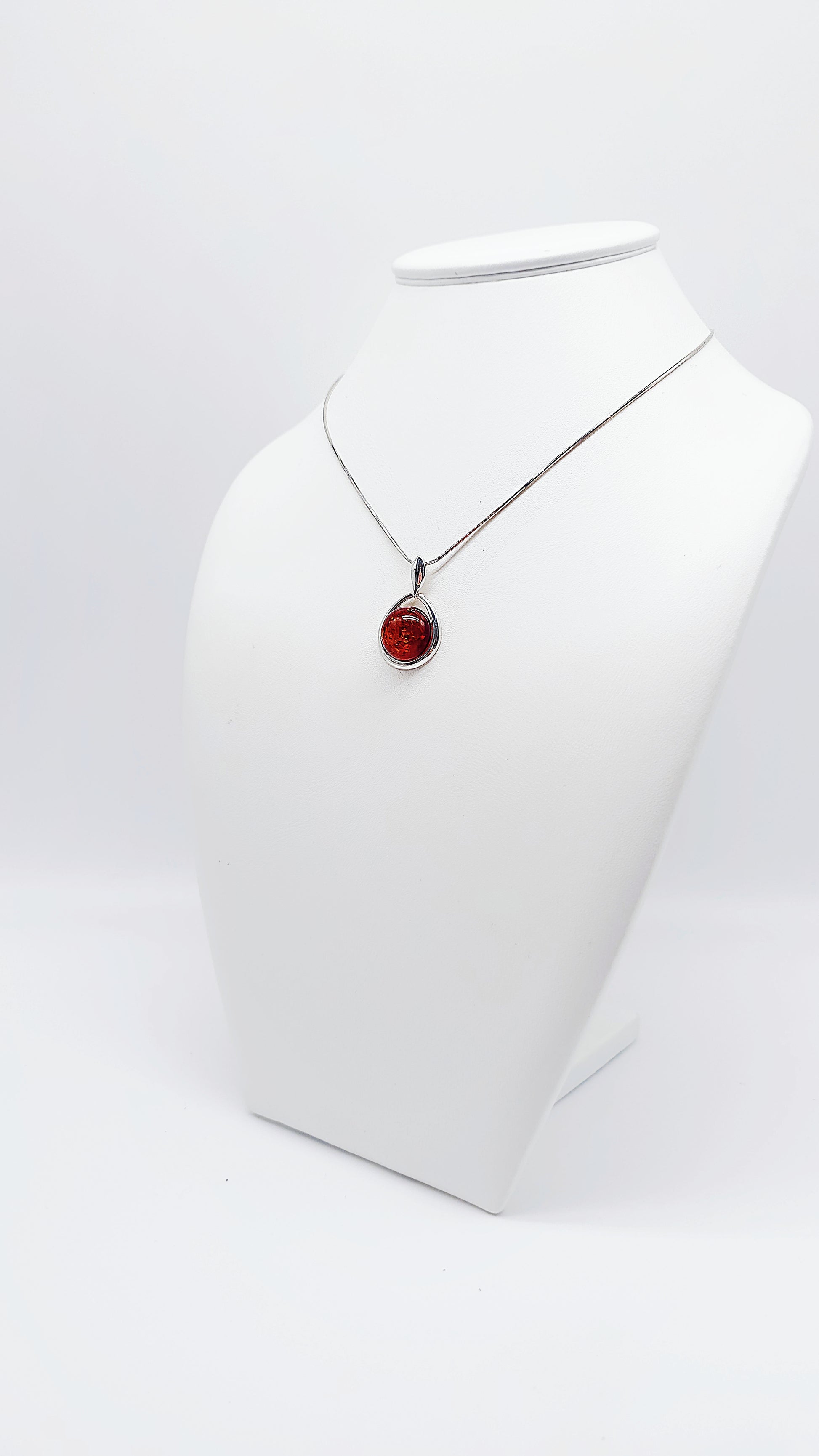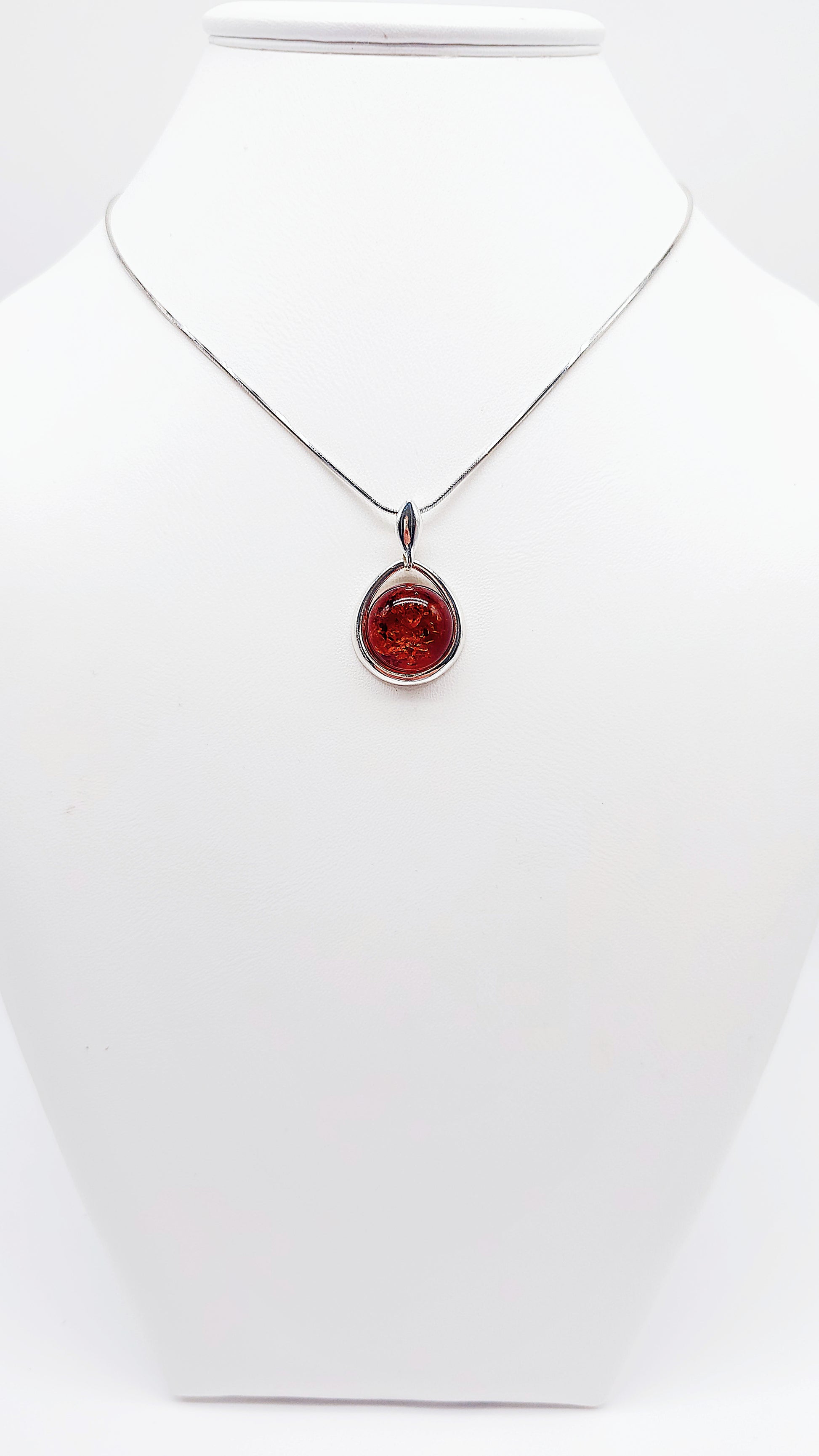 Dieser klassische, runde Anhänger aus hochwertigem 925er Sterlingsilber ist mit einem strahlenden roten Bernstein verziert. Die tiefrote Farbe des Bernsteins harmoniert perfekt mit dem glänzenden Silber und verleiht dem Anhänger eine edle Ausstrahlung. Das minimalistische und dennoch ansprechende Design macht diesen Anhänger zu einem vielseitigen Schmuckstück, das sowohl im Alltag als auch zu besonderen Anlässen getragen werden kann. Ideal als elegantes Accessoire oder als besonderes Geschenk für einen geliebten Menschen.