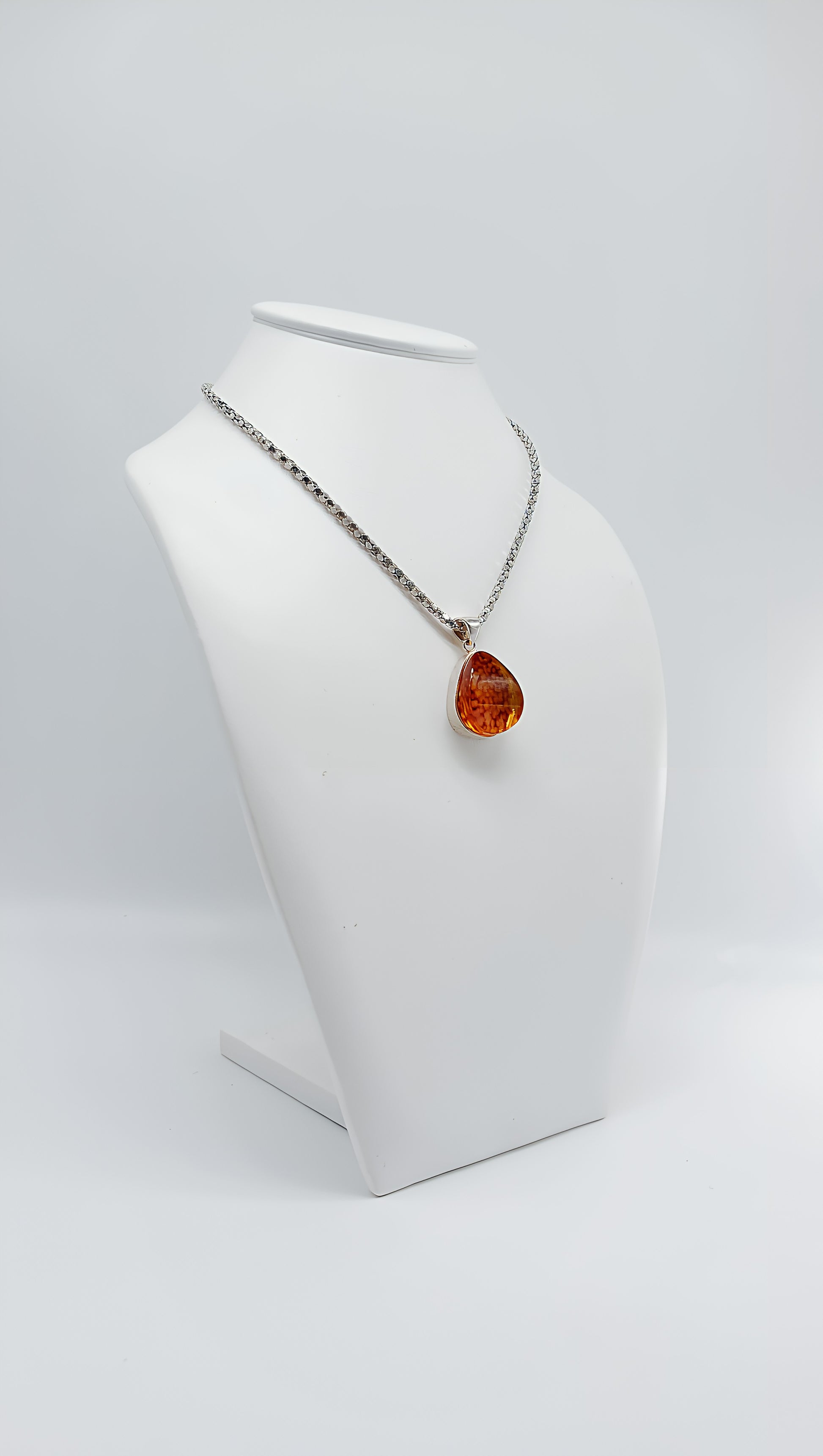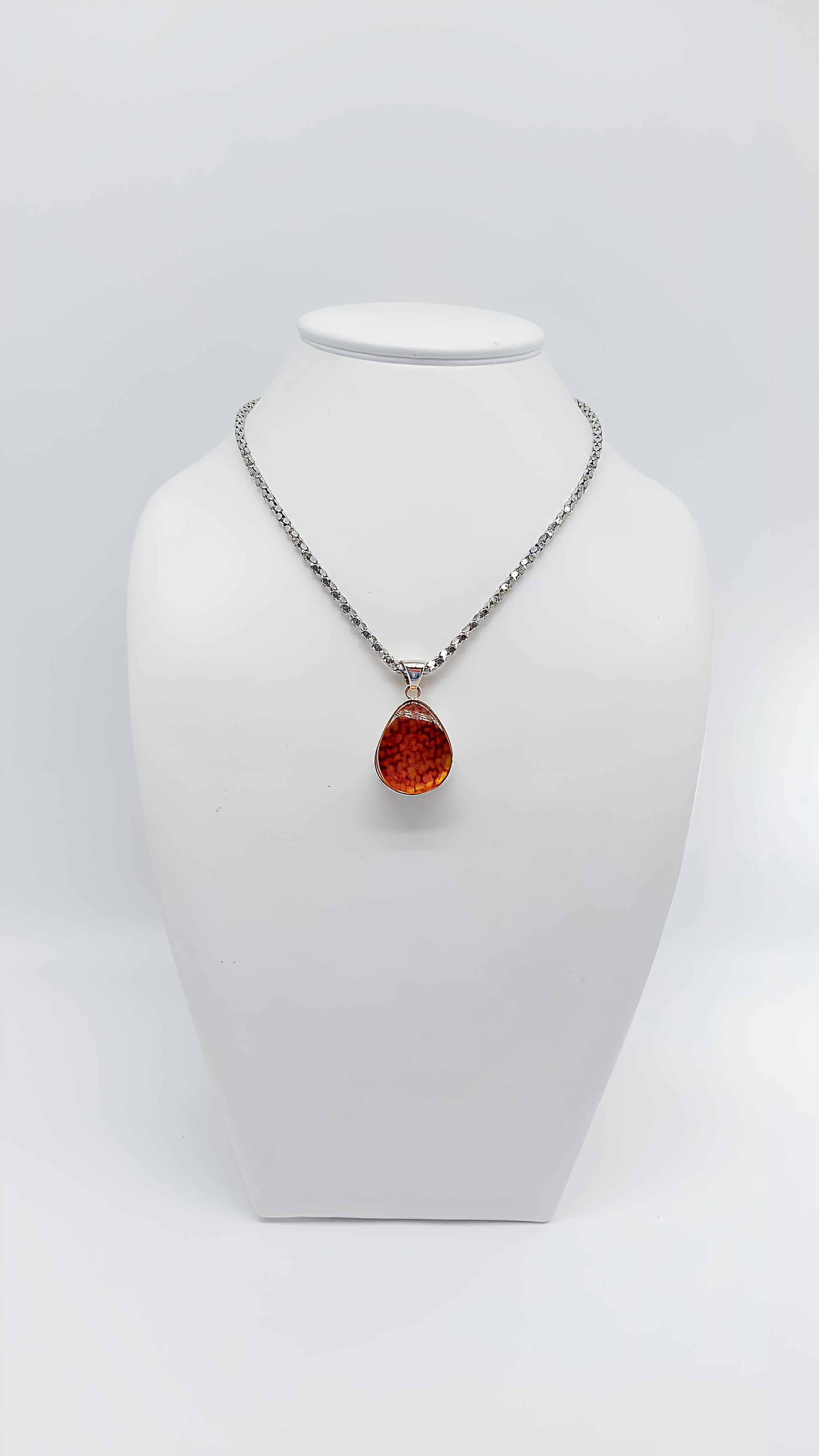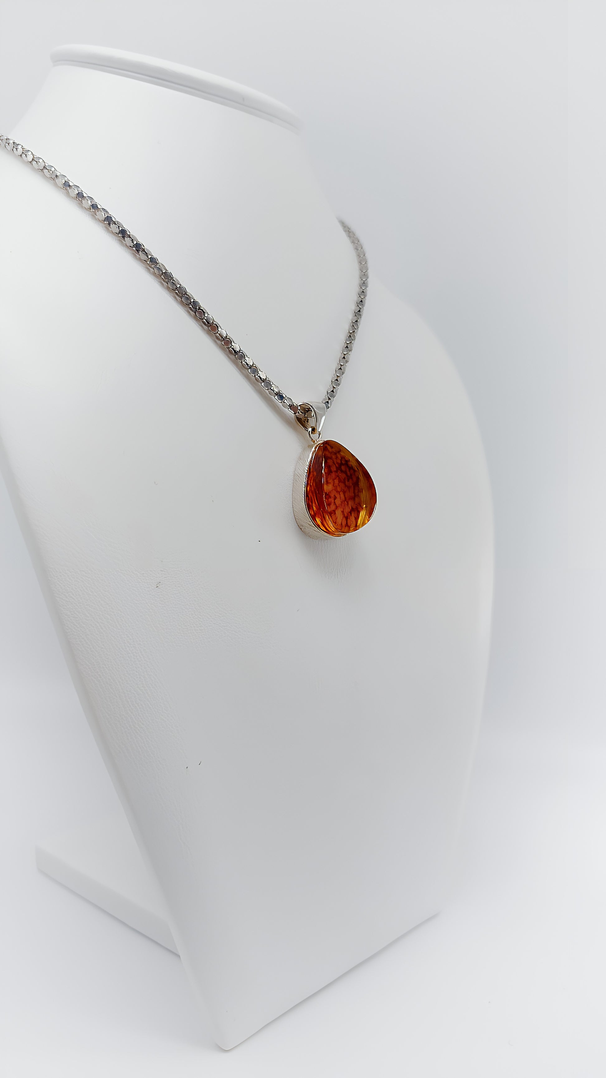 Feuertropfen: Bernsteinanhänger in Silber