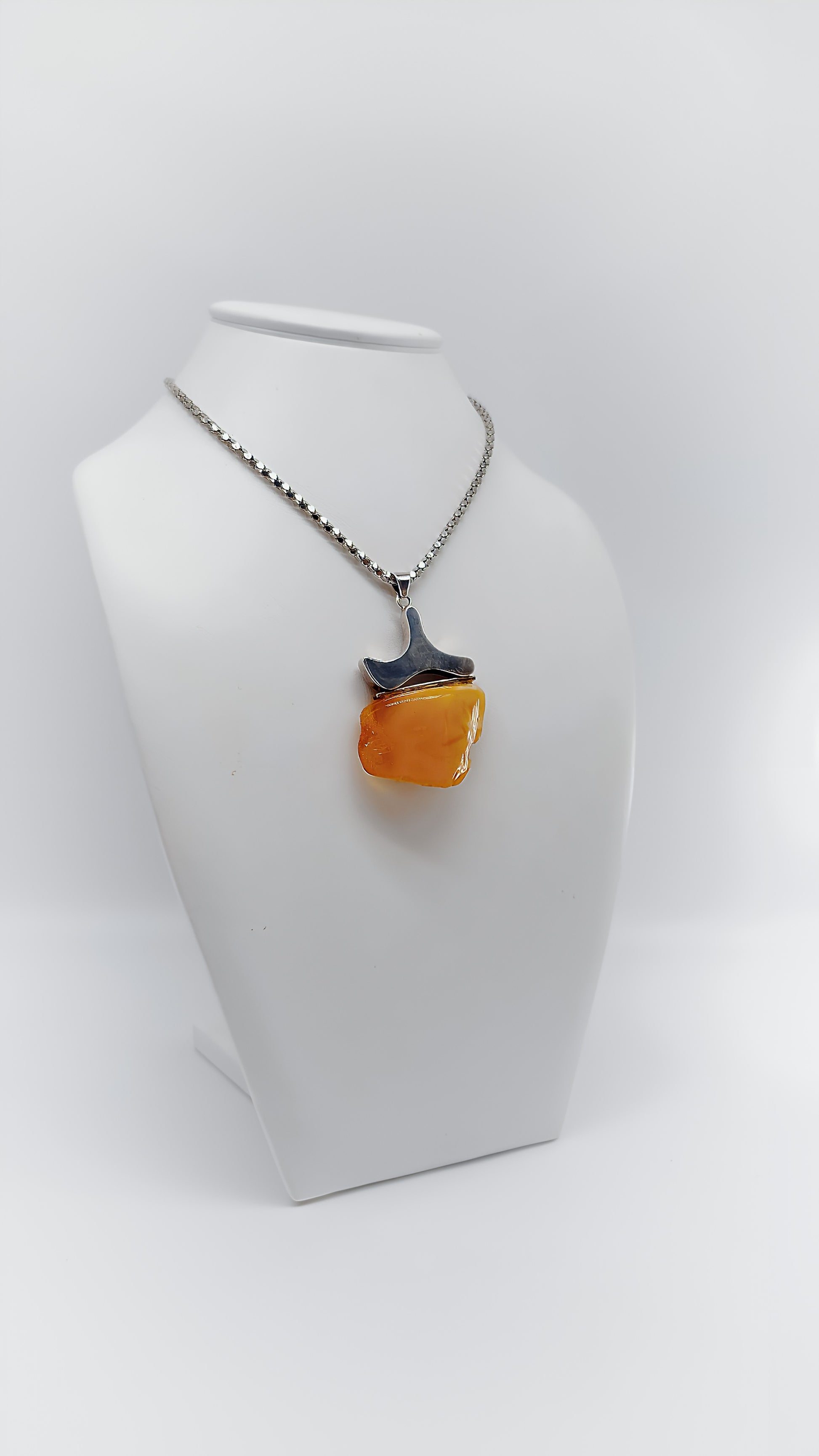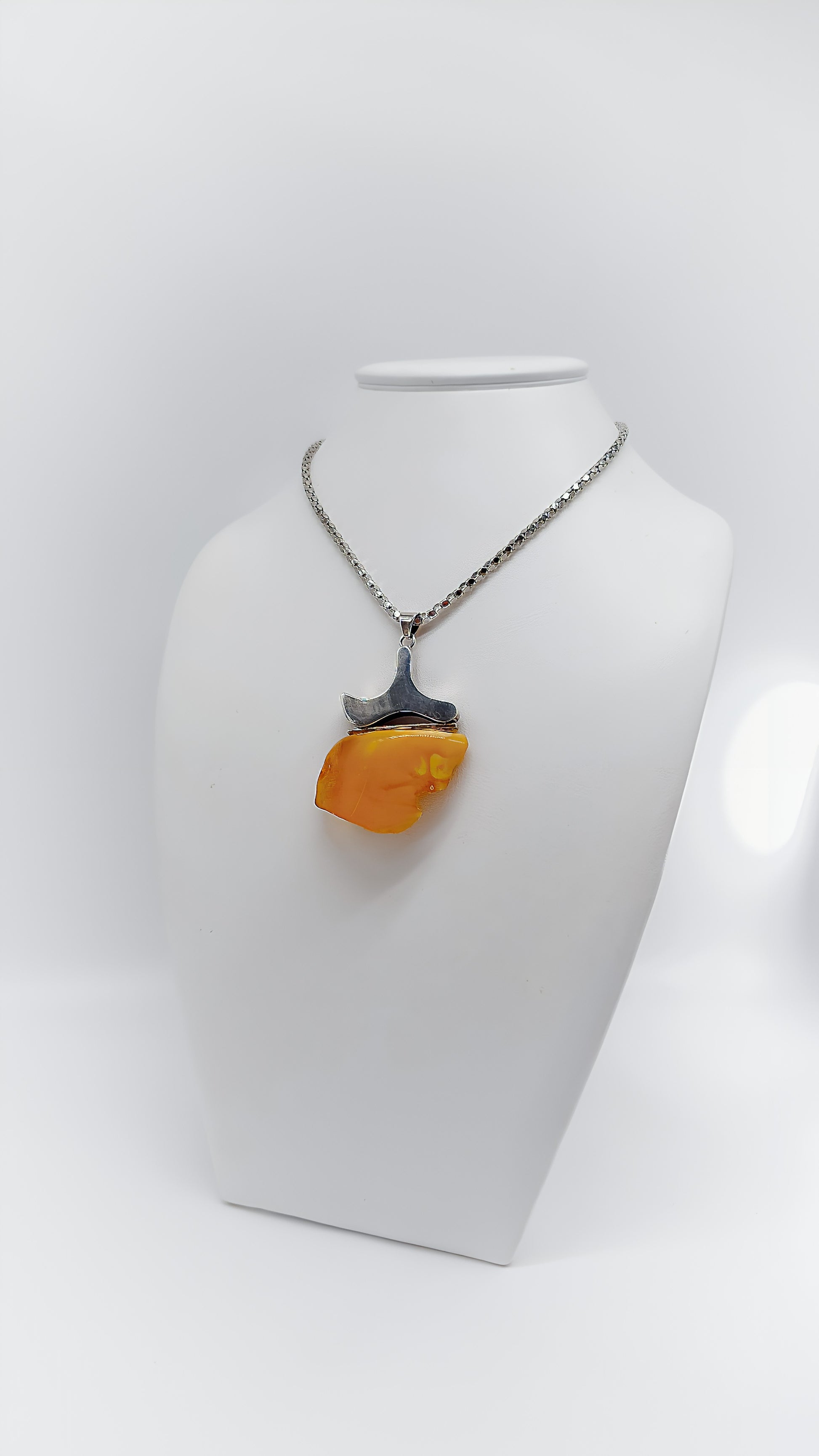 Entdecken Sie die faszinierende Schönheit dieses Bernsteinanhängers, meisterhaft eingefasst in 925er Sterlingsilber. Der Anhänger zeichnet sich durch seine einzigartige, asymmetrische Form aus, die an eine sanfte Welle erinnert. Der leuchtend gelbe Bernstein verleiht jedem Outfit ein strahlendes Highlight und macht dieses Schmuckstück zu einem echten Blickfang. Dieser Unikat-Anhänger ist das perfekte Geschenk für alle, die das Besondere schätzen und Naturschönheit in ihrer täglichen Garderobe integrieren möchten.
