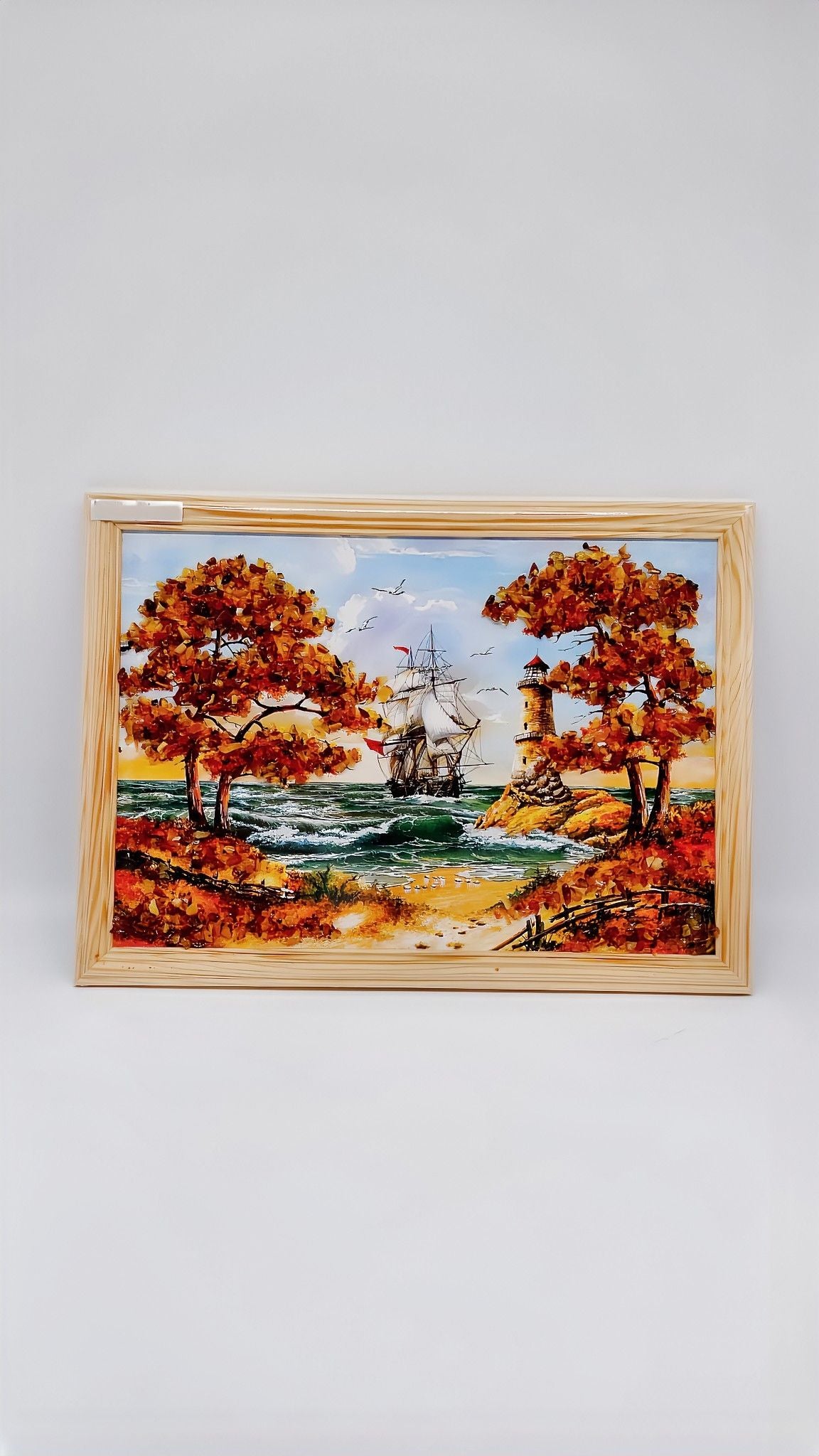 Dieses lebendige Gemälde verkörpert die Essenz maritimer Abenteuer, festgehalten in einem herbstlichen Küstenszenario. Ein stolzes Segelschiff setzt seine Segel nahe einem robusten Leuchtturm, während das umgebende Meer in aufgewühlten Wellen tobt. Herbstlich gefärbte Bäume rahmen die Szene ein und verleihen dem Bild eine warme, einladende Atmosphäre. Der natürliche Holzrahmen komplettiert das Kunstwerk und macht es zu einem idealen Wandschmuck für jeden Liebhaber der Seefahrt und herbstlichen Landschaften.