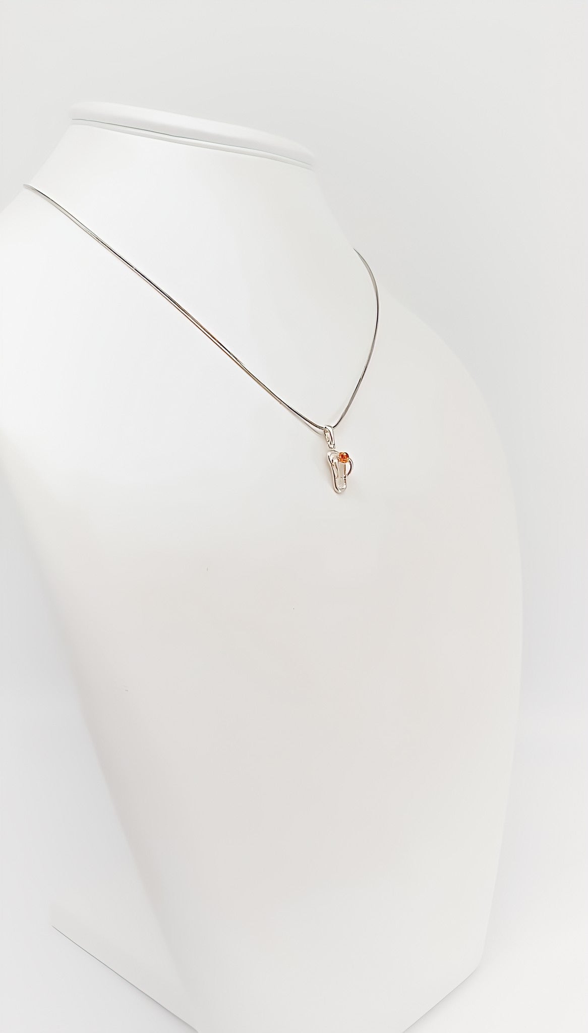 Dieser filigrane Anhänger aus 925er Sterlingsilber besticht durch seine schlichte Eleganz und die warme Strahlkraft des Bernsteins. Das zeitlose Design macht dieses Schmuckstück zu einem perfekten Begleiter für den Alltag und besondere Momente. Der Bernstein, liebevoll in das feine Silber eingefasst, zieht durch seine leuchtende Farbe alle Blicke auf sich und verleiht jedem Outfit einen Hauch von natürlicher Schönheit. Ein kleines, aber bedeutungsvolles Schmuckstück für Liebhaber des Besonderen.