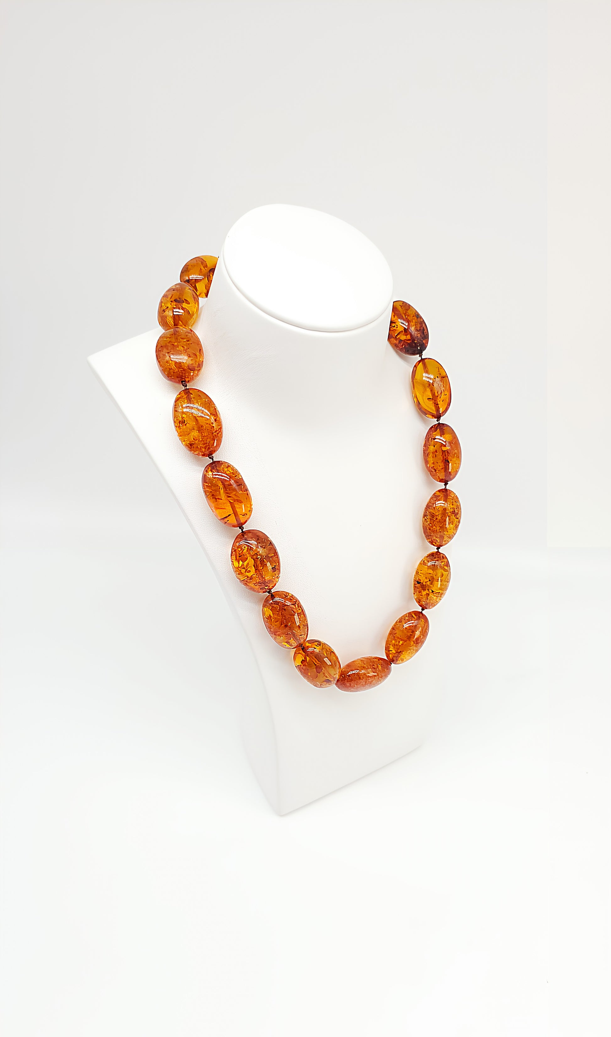Diese handgefertigte Bernsteinkette ist ein einzigartiges Kunstwerk der Natur. Die ovalen Bernsteinsteine leuchten in warmen Goldtönen und fangen das Licht auf eine faszinierende Weise ein. Jede Perle dieser Kette ist ein Unikat, mit natürlichen Einschlüssen, die die Geschichte von Millionen Jahren erzählen. Die perfekte Wahl für besondere Anlässe oder als stilvolles Accessoire für den Alltag – dieses Schmuckstück strahlt zeitlose Eleganz und natürliche Schönheit aus. Ein Must-Have für alle, die Exklusivität und Eleganz schätzen.