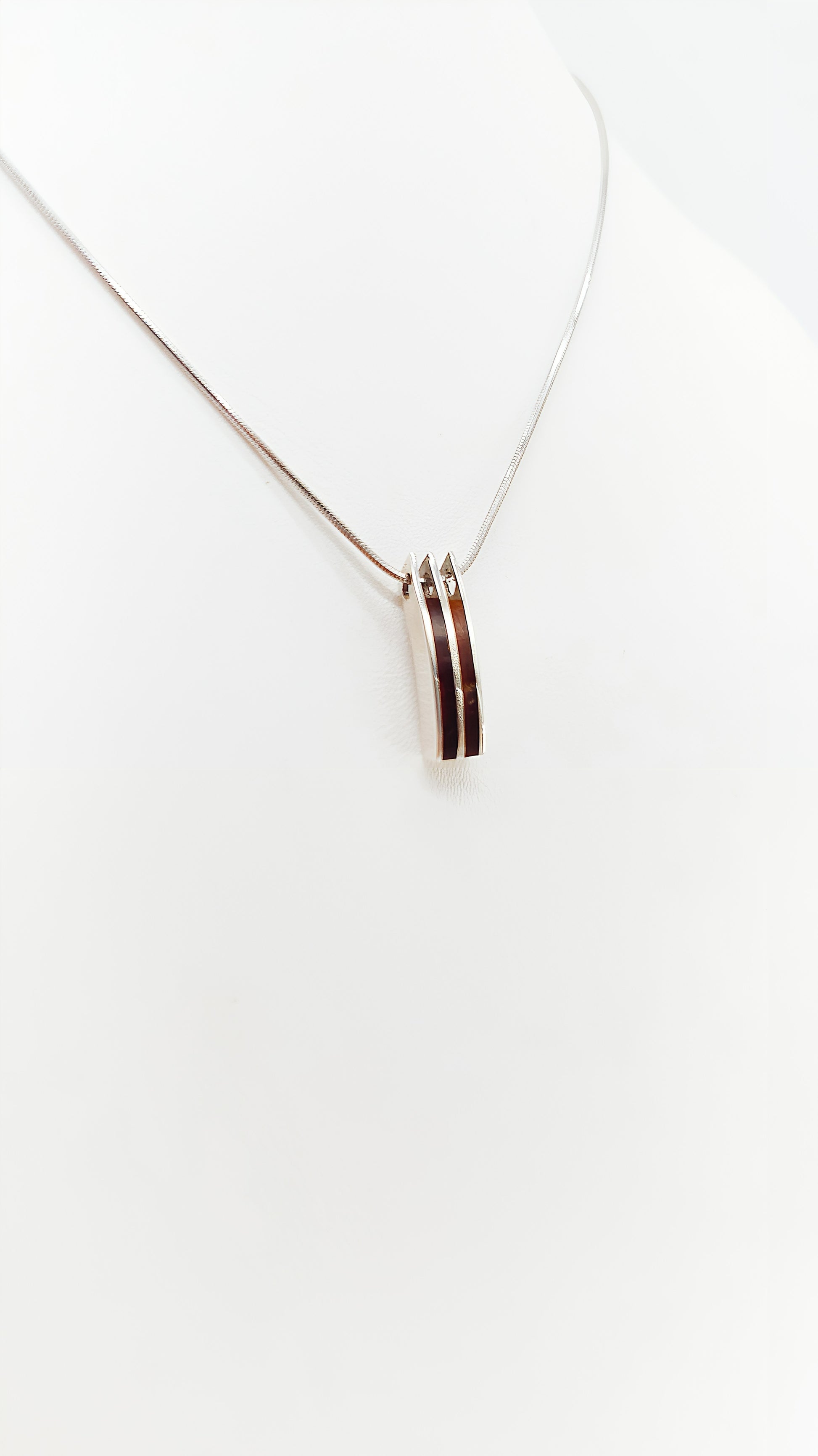 Dieser elegante Anhänger aus 925er Sterlingsilber besticht durch seine einzigartige, moderne Form. Zwei perfekt gearbeitete Linien aus funkelndem Bernstein setzen raffinierte Akzente und bringen die natürliche Wärme des Steins zum Ausdruck. Die Kombination aus minimalistischer Silhouette und der natürlichen Tiefe des Bernsteins macht dieses Schmuckstück zu einem vielseitigen Begleiter – egal, ob zu eleganten Anlässen oder im Alltag.