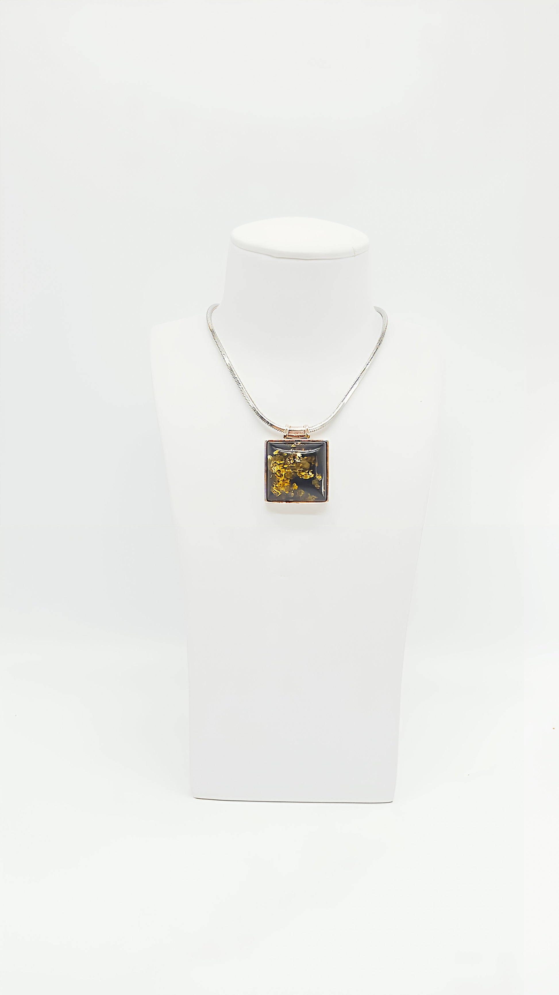 Quadratische Schönheit: Bernsteinanhänger in Silber
