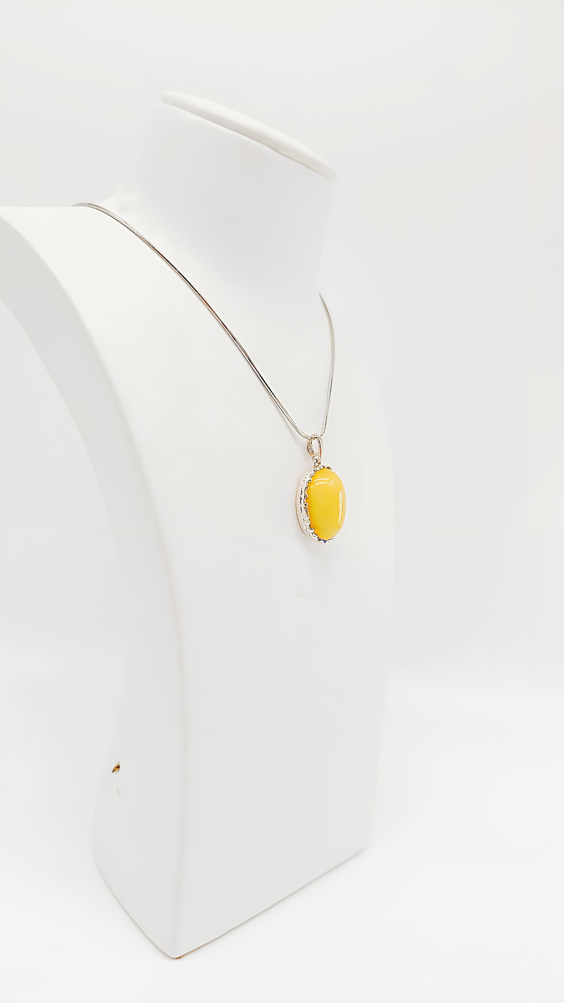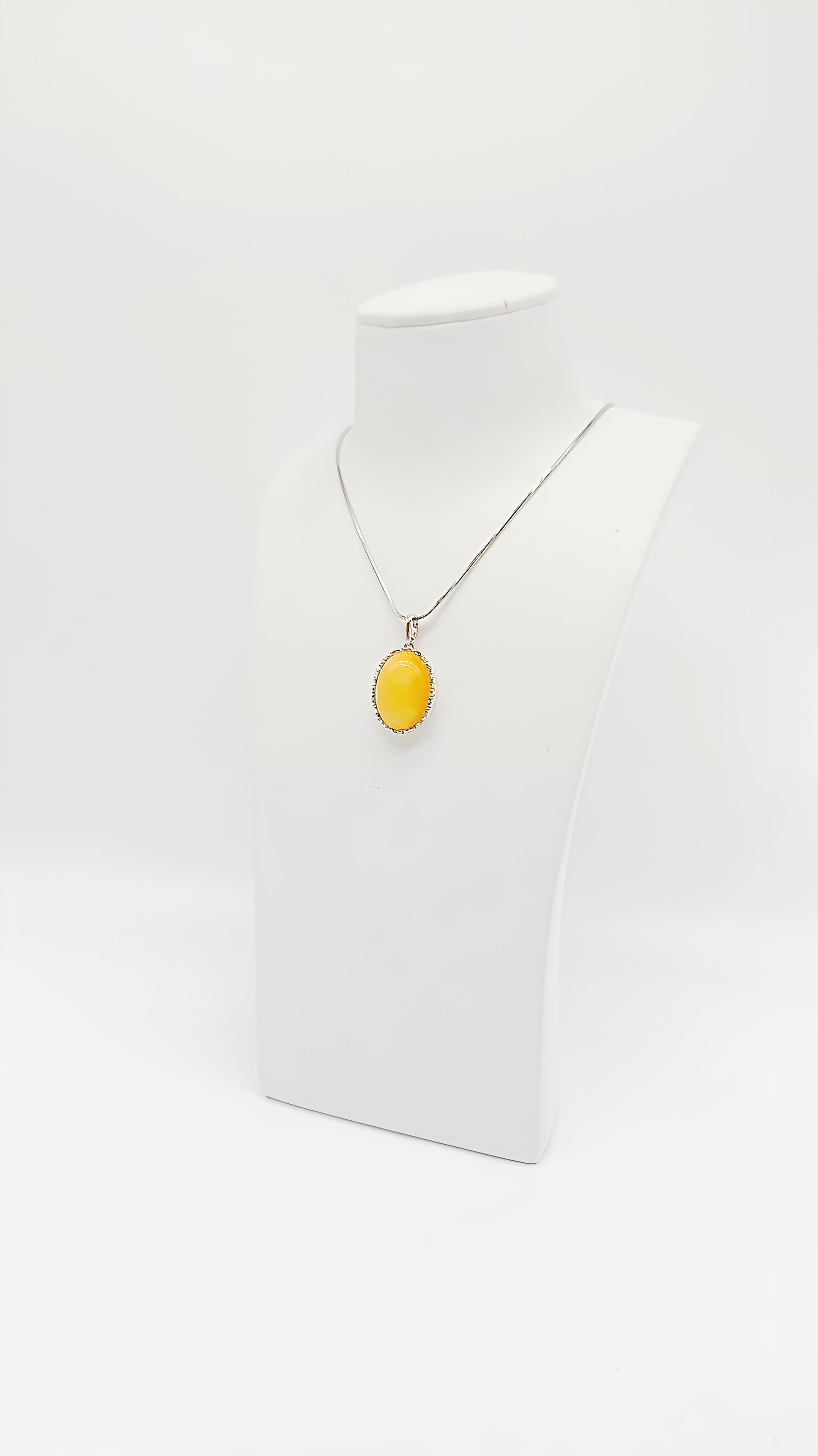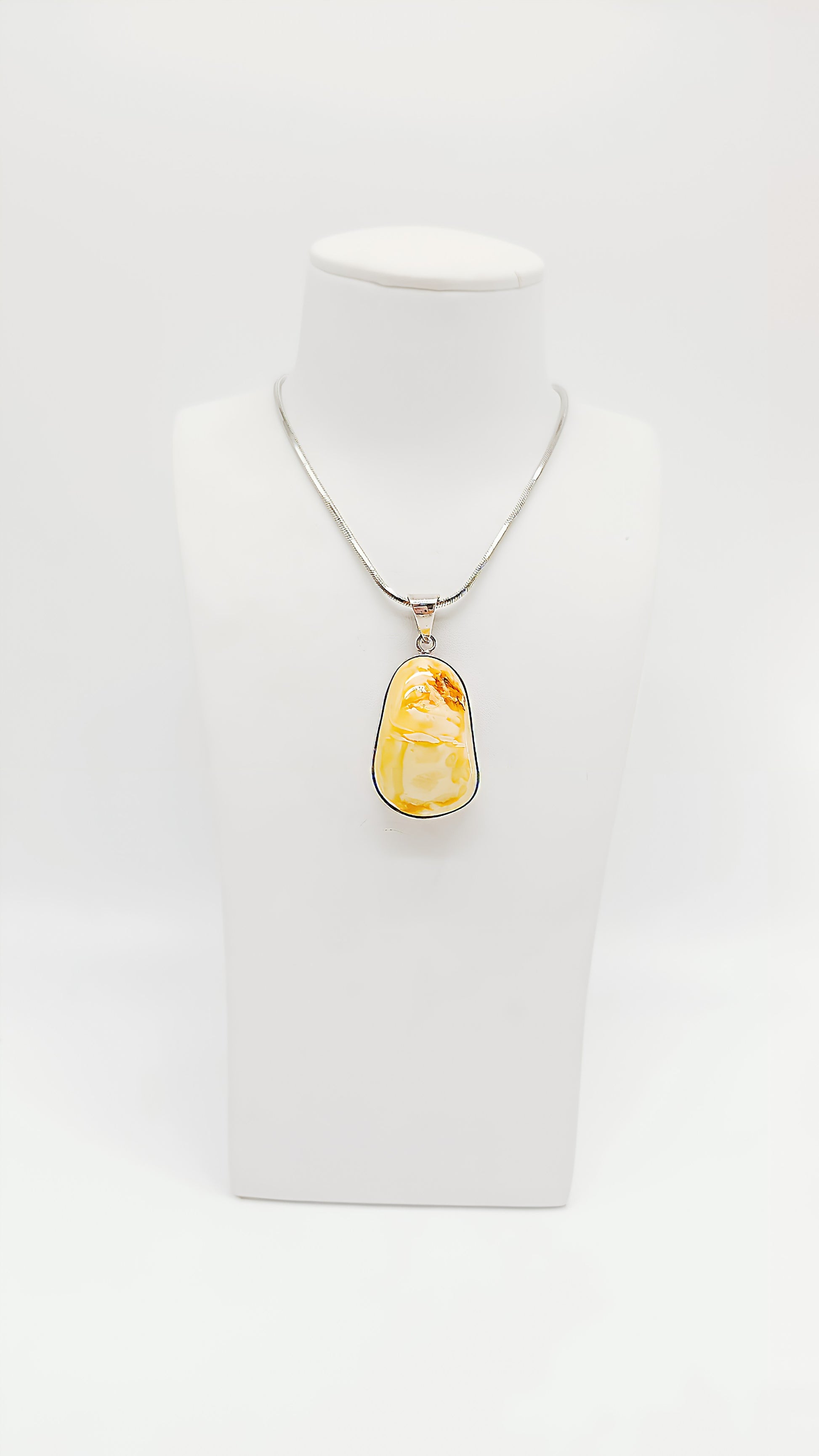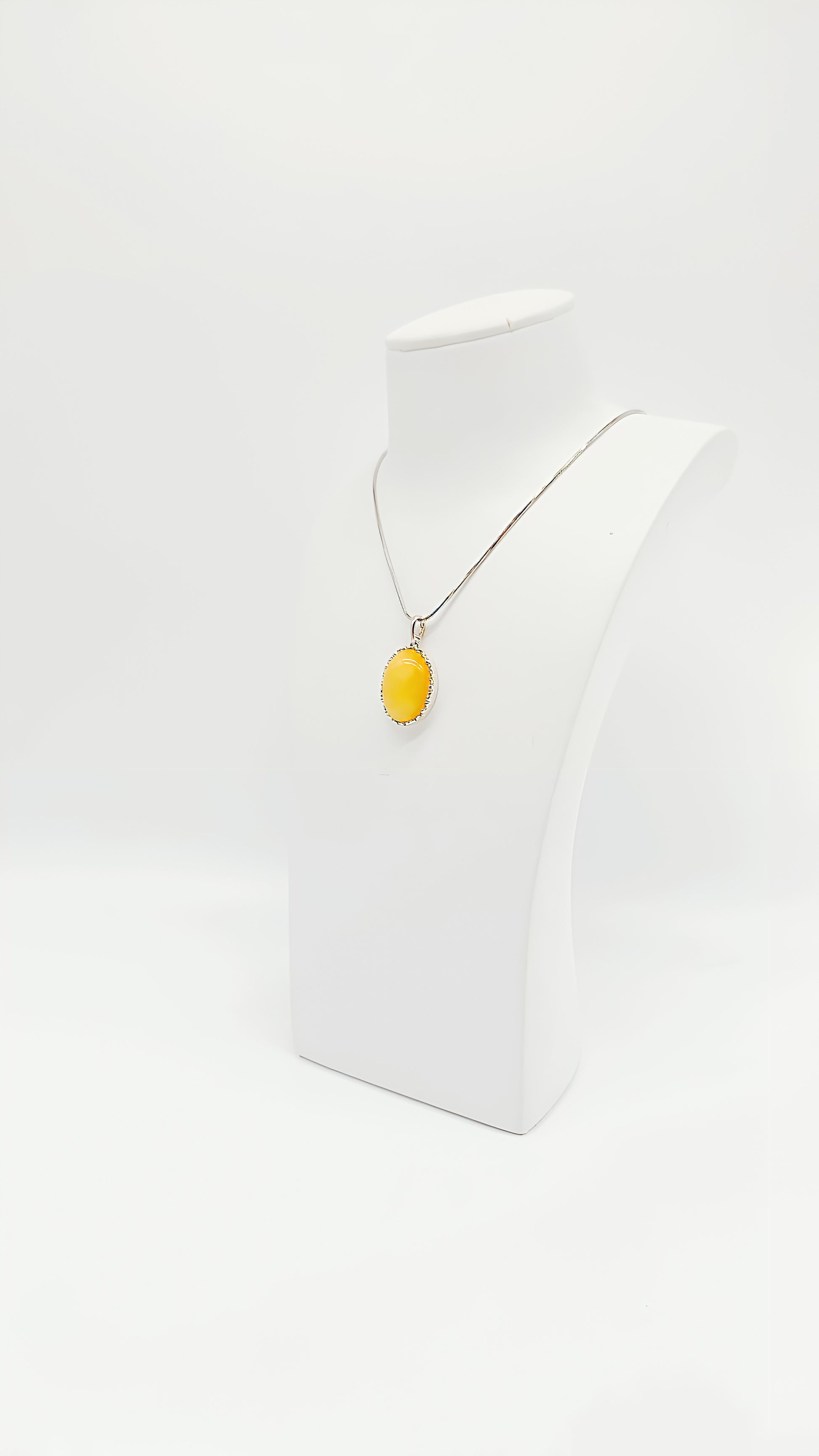 Dieser wunderschöne Anhänger aus 925er Sterlingsilber ist ein wahres Unikat, das die Schönheit der Natur in einem eleganten Schmuckstück einfängt. Der bernsteinfarbene Stein erstrahlt in warmen, goldgelben Nuancen und wird durch die schlichte Silberfassung perfekt in Szene gesetzt. Durch die natürliche Farbstruktur des Bernsteins erhält jeder Anhänger seine individuelle Note, was ihn zu einem echten Einzelstück macht. Ideal für alle, die ein zeitloses und einzigartiges Schmuckstück suchen, das Eleganz und Natürlichkeit vereint.
