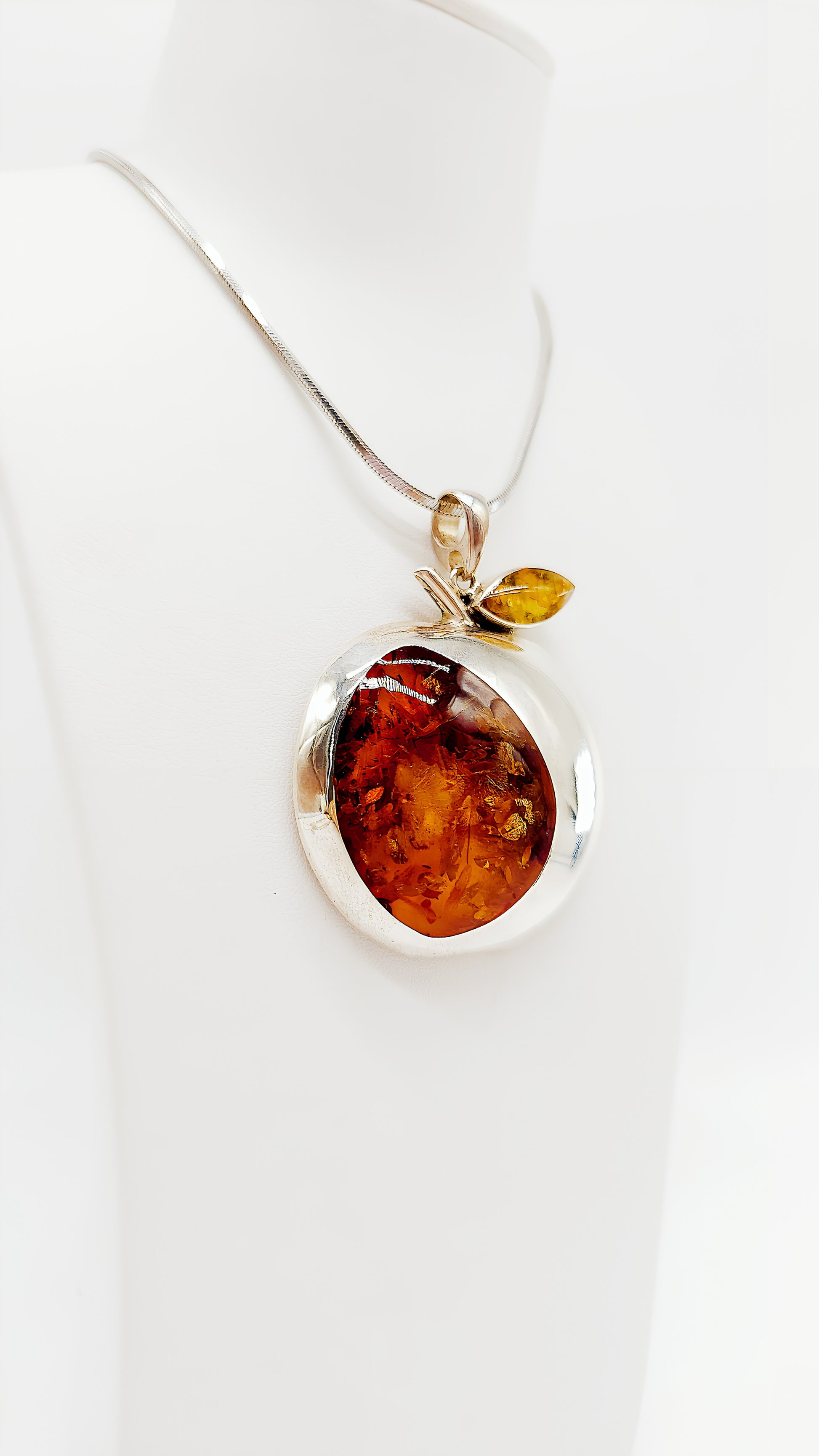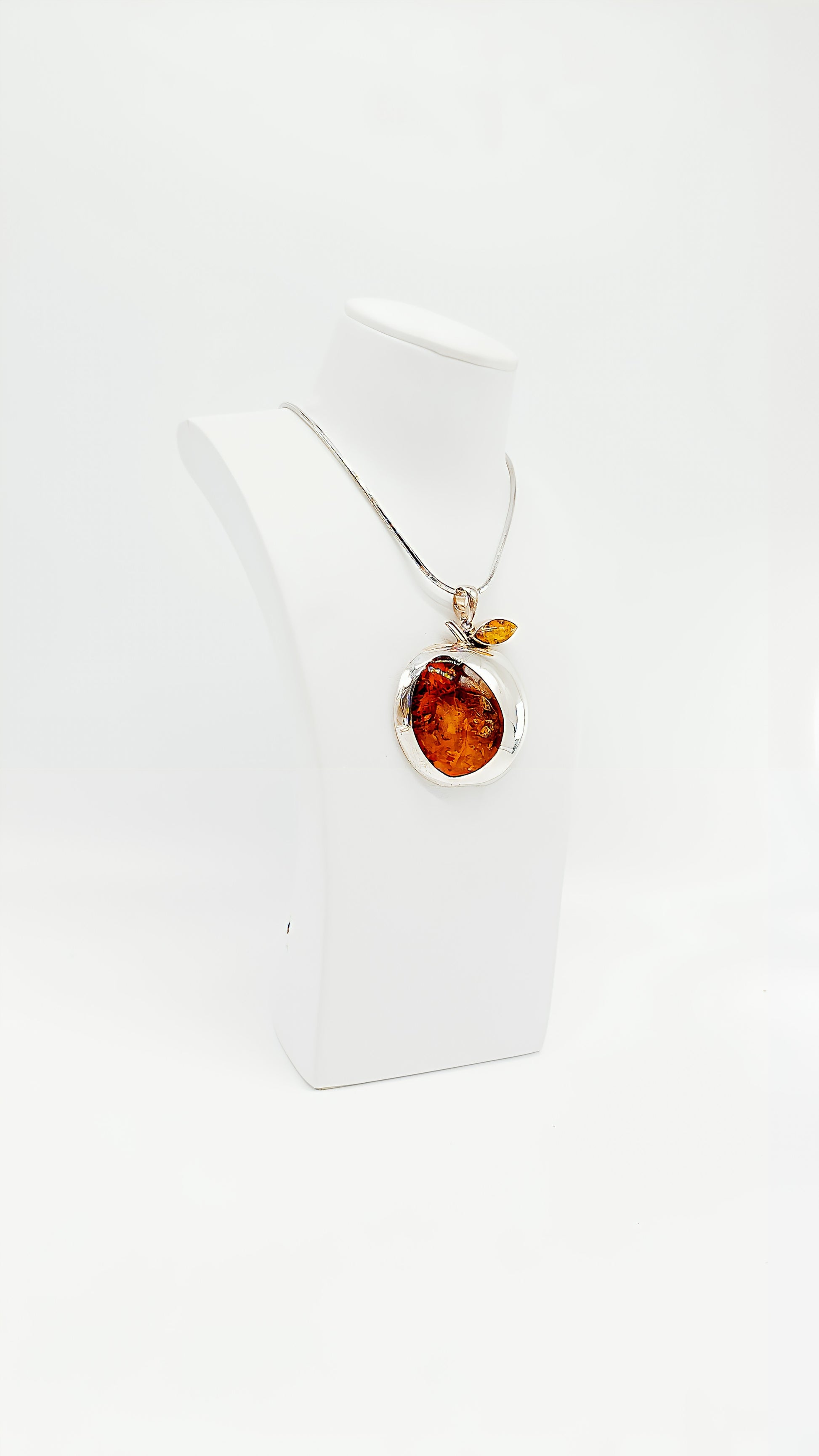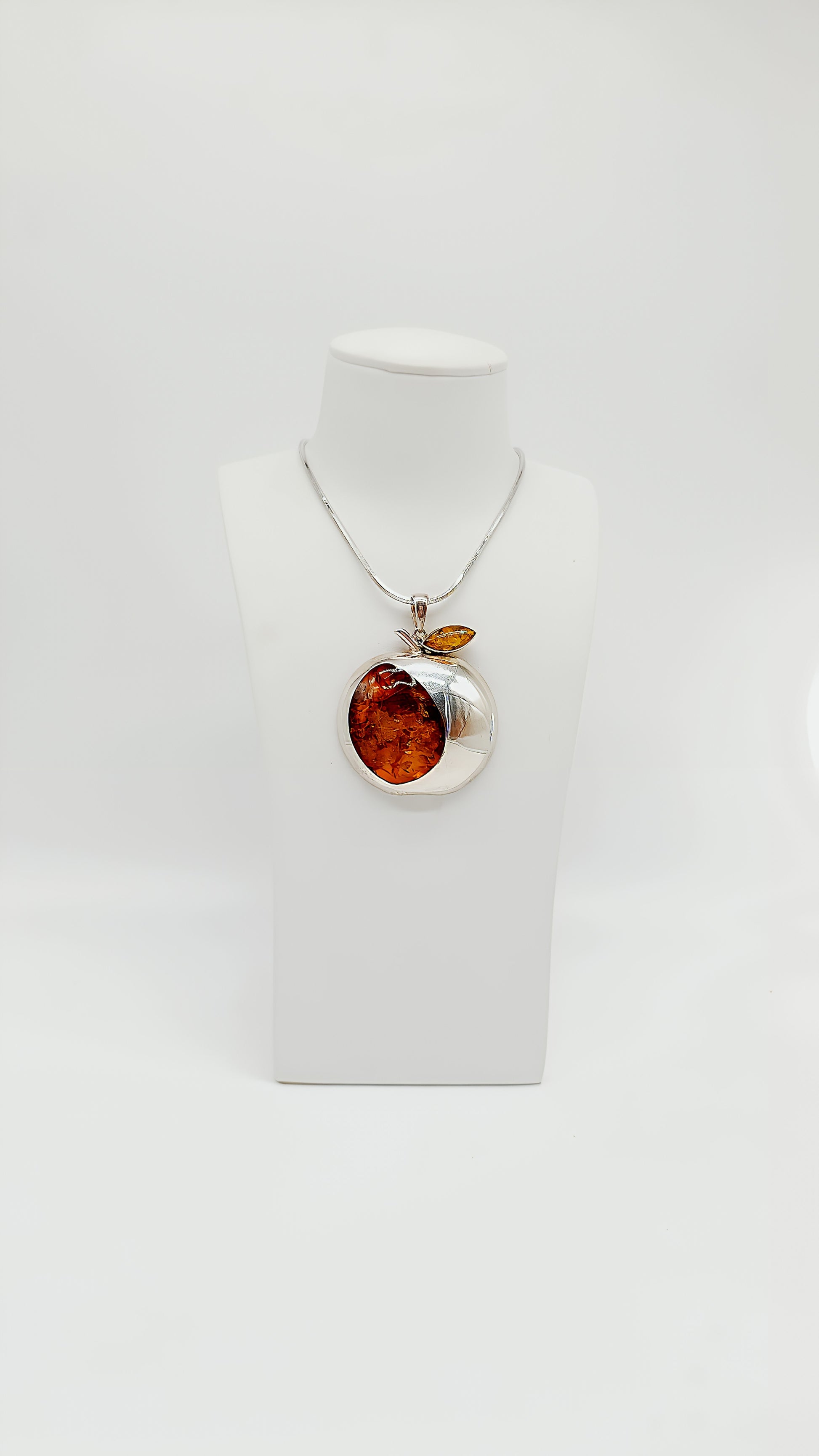 Dieser außergewöhnliche Anhänger aus 925er Sterlingsilber besticht durch sein einzigartiges Apfel-Design, in dessen Mitte ein atemberaubender Bernstein perfekt eingebettet ist. Der warme Bernsteinton harmoniert wundervoll mit dem glänzenden Silber und verleiht dem Schmuckstück eine zeitlose Eleganz. Das filigrane Blattdetail rundet das Design harmonisch ab. Jeder Anhänger ist ein handgefertigtes Unikat – ideal für Naturliebhaber und diejenigen, die nach einem besonderen Schmuckstück suchen.