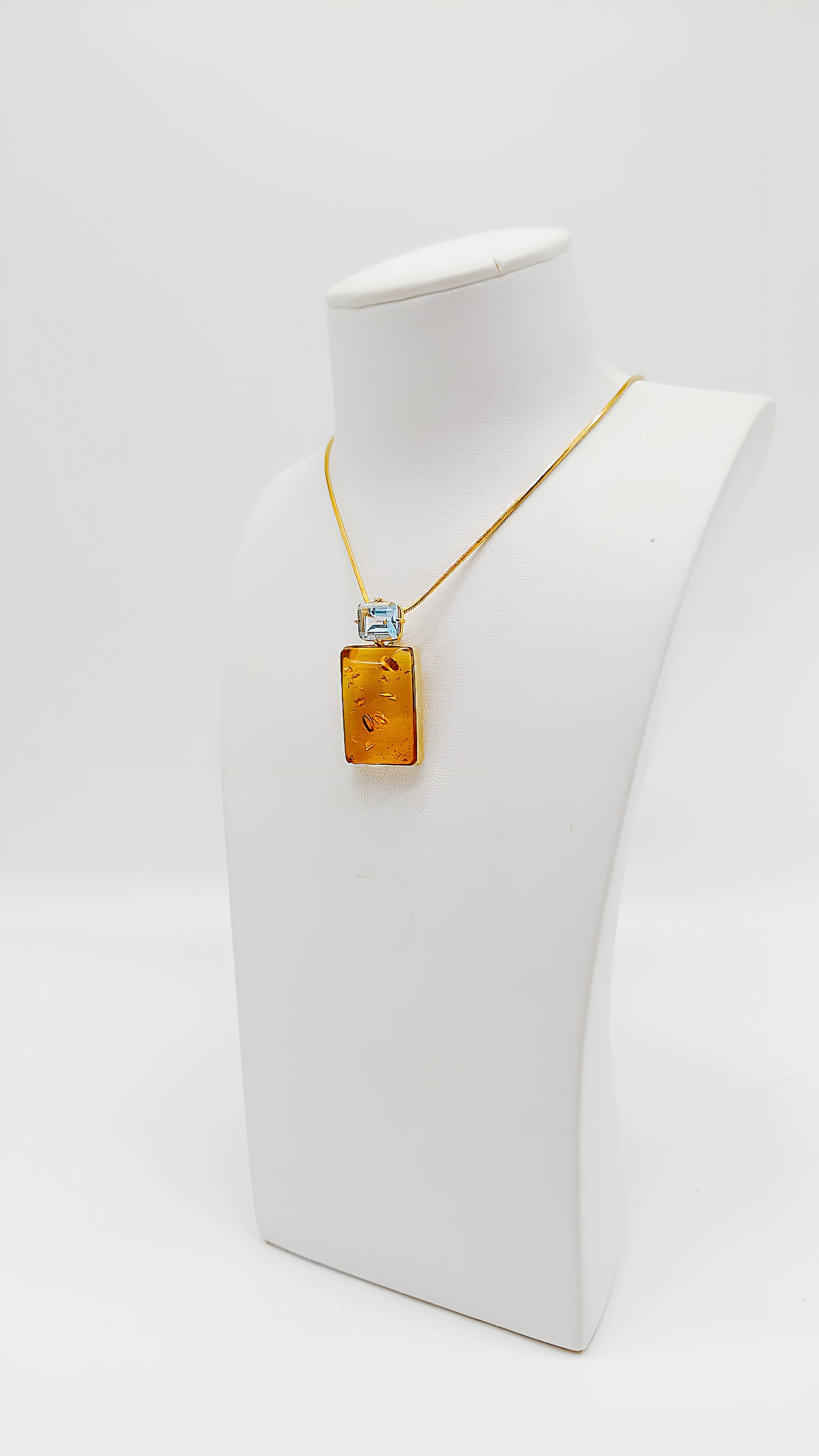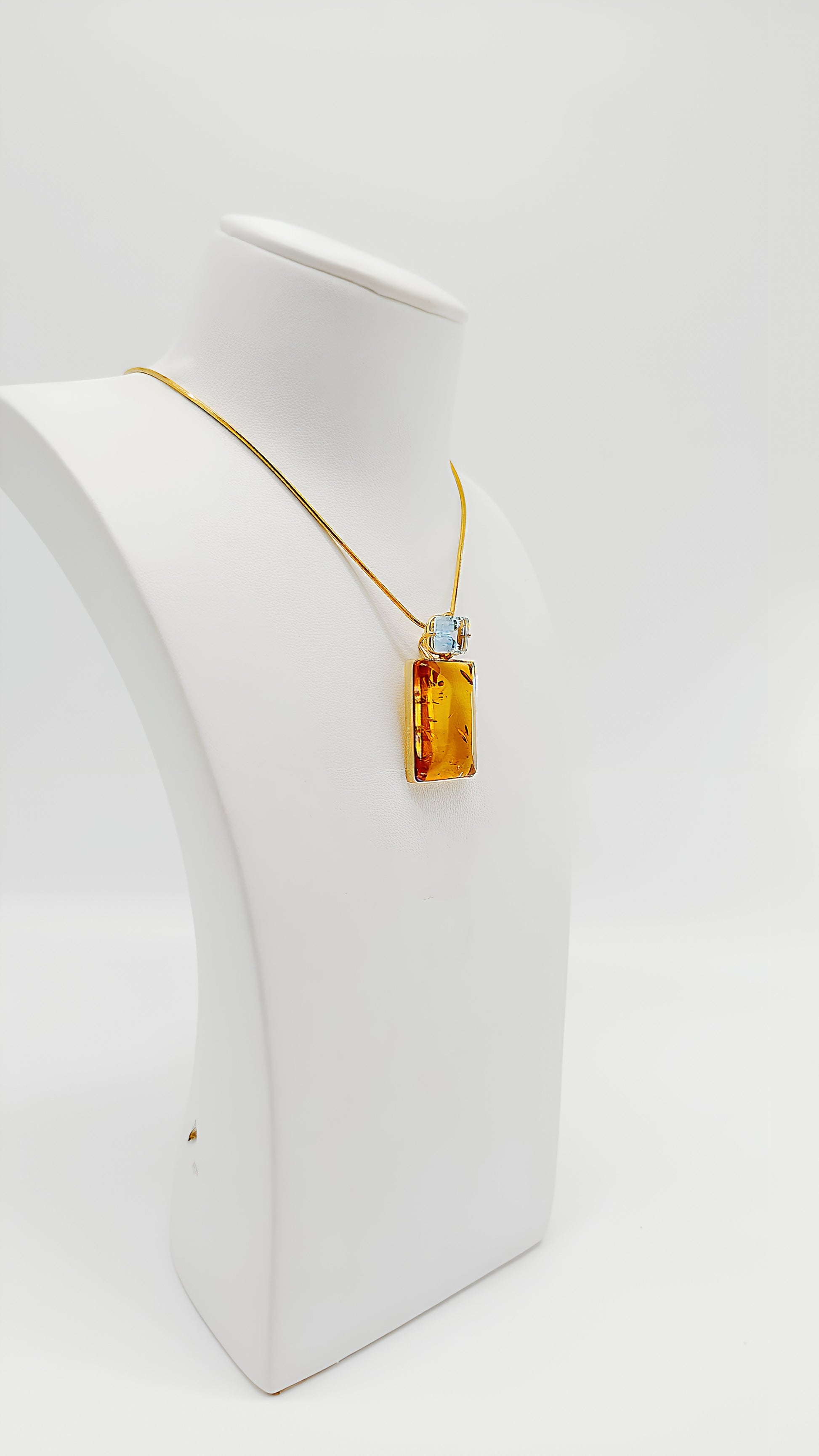Dieser edle Anhänger aus vergoldetem 925er Sterlingsilber vereint klassische Eleganz mit modernem Design. Der rechteckige, leuchtend warme Bernstein wird von einer hochwertigen vergoldeten Fassung umrahmt und präsentiert sich als einzigartiges Highlight. Die schlichte Eleganz der Form bringt die natürliche Schönheit des Bernsteins perfekt zur Geltung. Ein Schmuckstück, das jedem Outfit eine luxuriöse Note verleiht und ideal für besondere Anlässe oder als stilvolles Alltagsaccessoire ist.