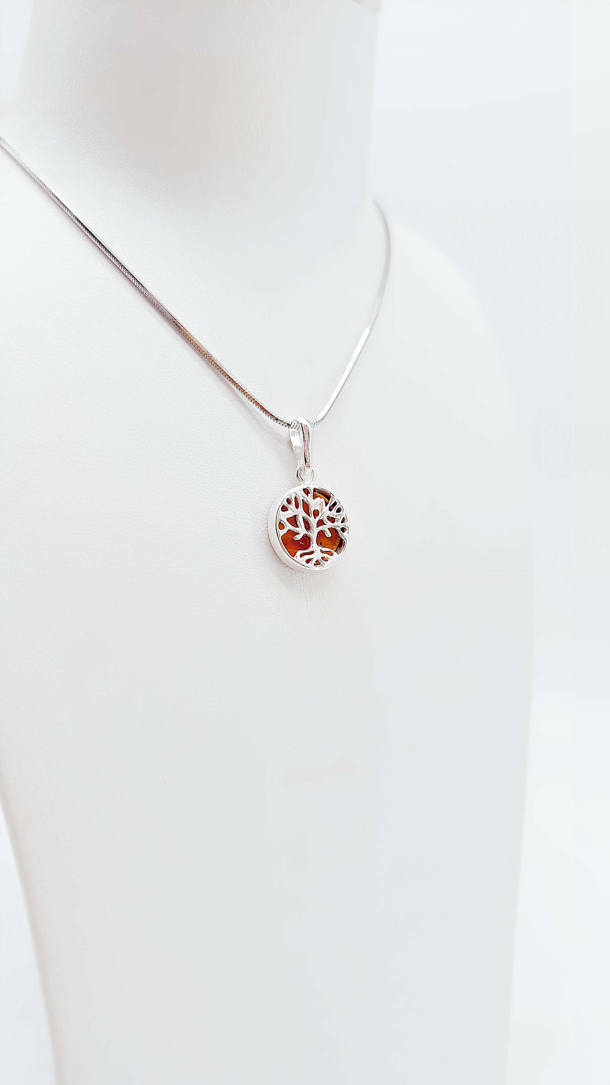 Dieser wunderschöne runde Anhänger aus 925er Sterlingsilber kombiniert den warmen Glanz des Bernsteins mit dem symbolischen Motiv des Lebensbaums. Der Bernstein funkelt in einer Fassung aus Silber, die den Lebensbaum filigran zur Geltung bringt. Ein Schmuckstück, das für Verbundenheit, Wachstum und Lebensenergie steht – ideal als Geschenk für einen geliebten Menschen oder als besonderer Glücksbringer.
