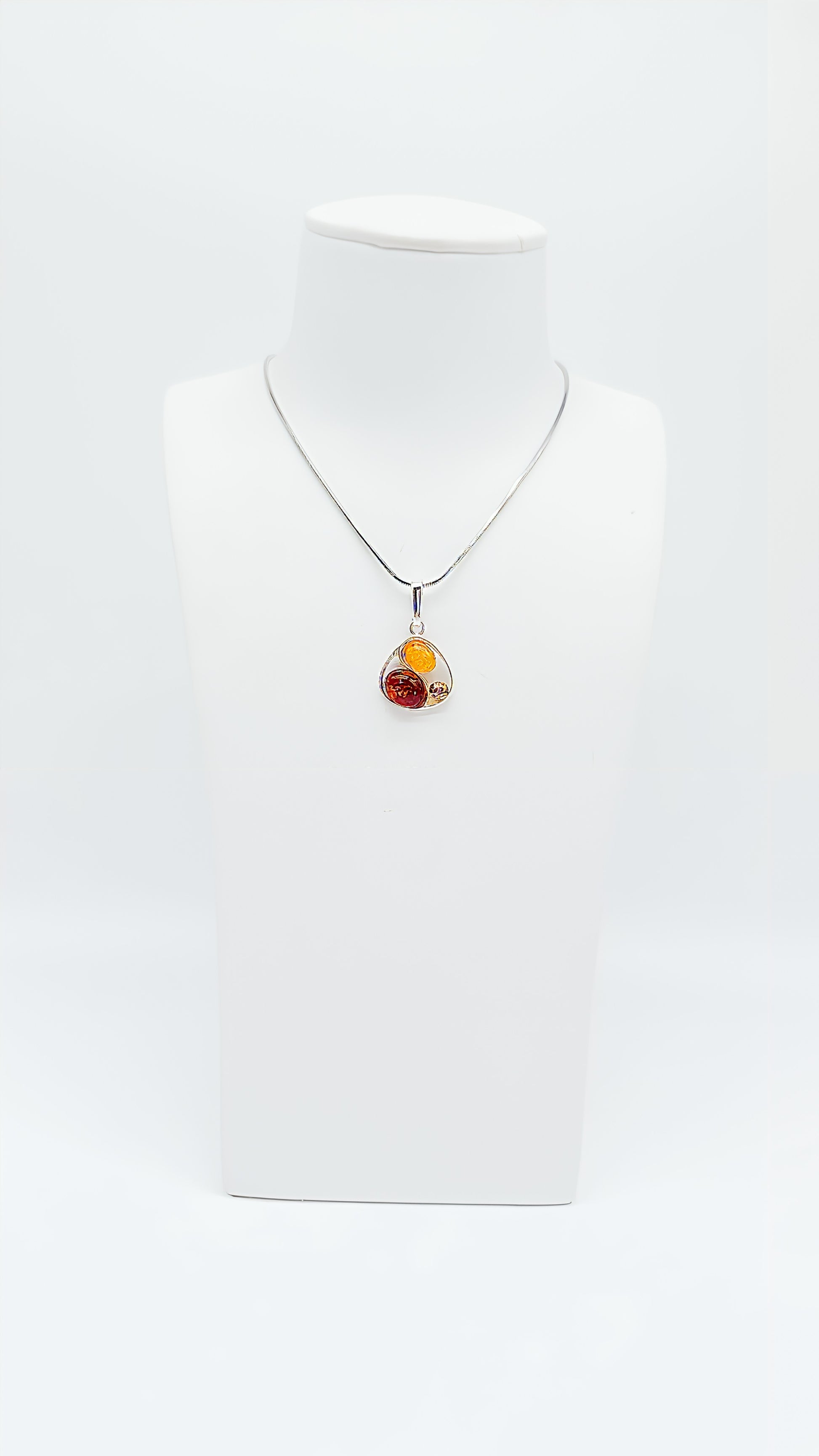 Dieser exquisite Anhänger aus 925er Sterlingsilber vereint die warmen Farbtöne des Bernsteins zu einem faszinierenden Schmuckstück. Mit drei farbigen Bernstein-Steinen in unterschiedlichen Nuancen – von sonnigem Gelb bis zu tiefem Rot – bringt er ein lebendiges Farbenspiel auf Ihre Haut. Der bunte Bernstein verleiht dem Anhänger eine verspielte und zugleich elegante Note, die jeden Look aufwertet. Ein einzigartiges Accessoire, das Eleganz und Naturverbundenheit perfekt miteinander verbindet.