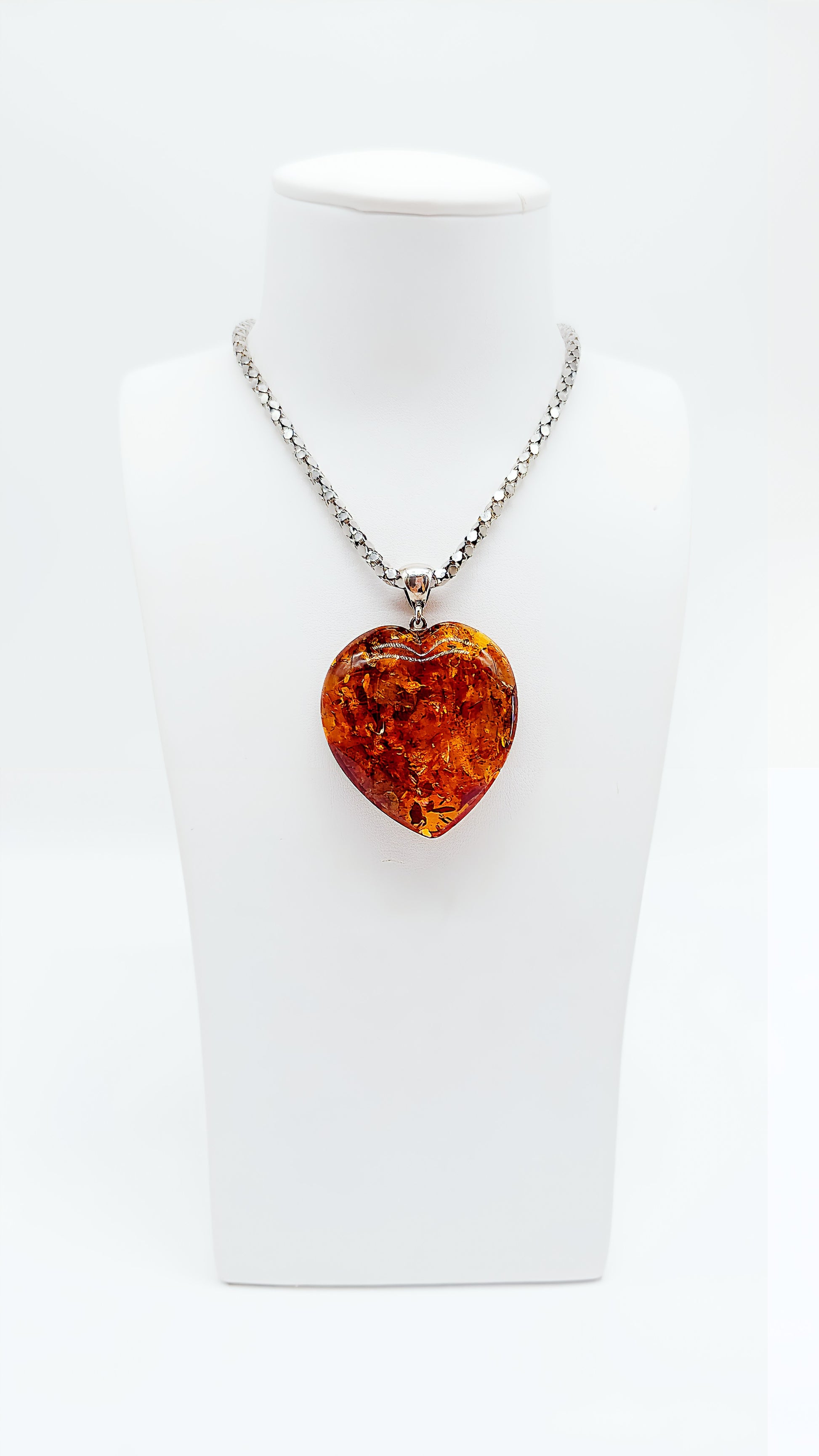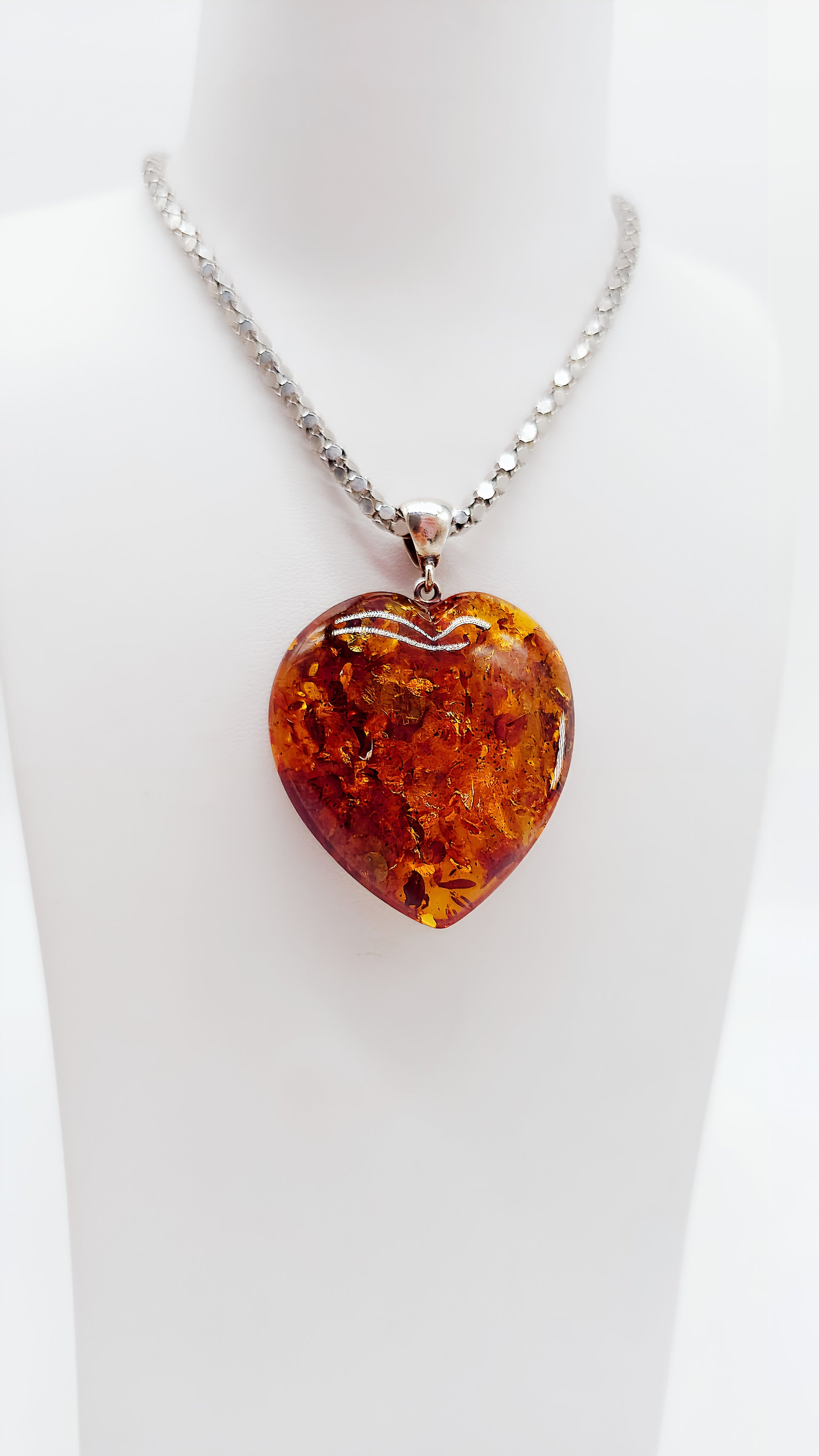 Dieser atemberaubende Bernsteinanhänger in Herzform ist ein echtes Statement. Der große Bernstein beeindruckt durch seine warme, goldene Farbe und die natürliche Textur, die jedem Stück einen einzigartigen Charakter verleiht. In Kombination mit der massiven Halskette ist dieser Anhänger ein stilvolles Accessoire, das jedem Outfit eine besondere Note verleiht. Das perfekte Schmuckstück für alle, die natürliche Eleganz und zeitlose Schönheit lieben.