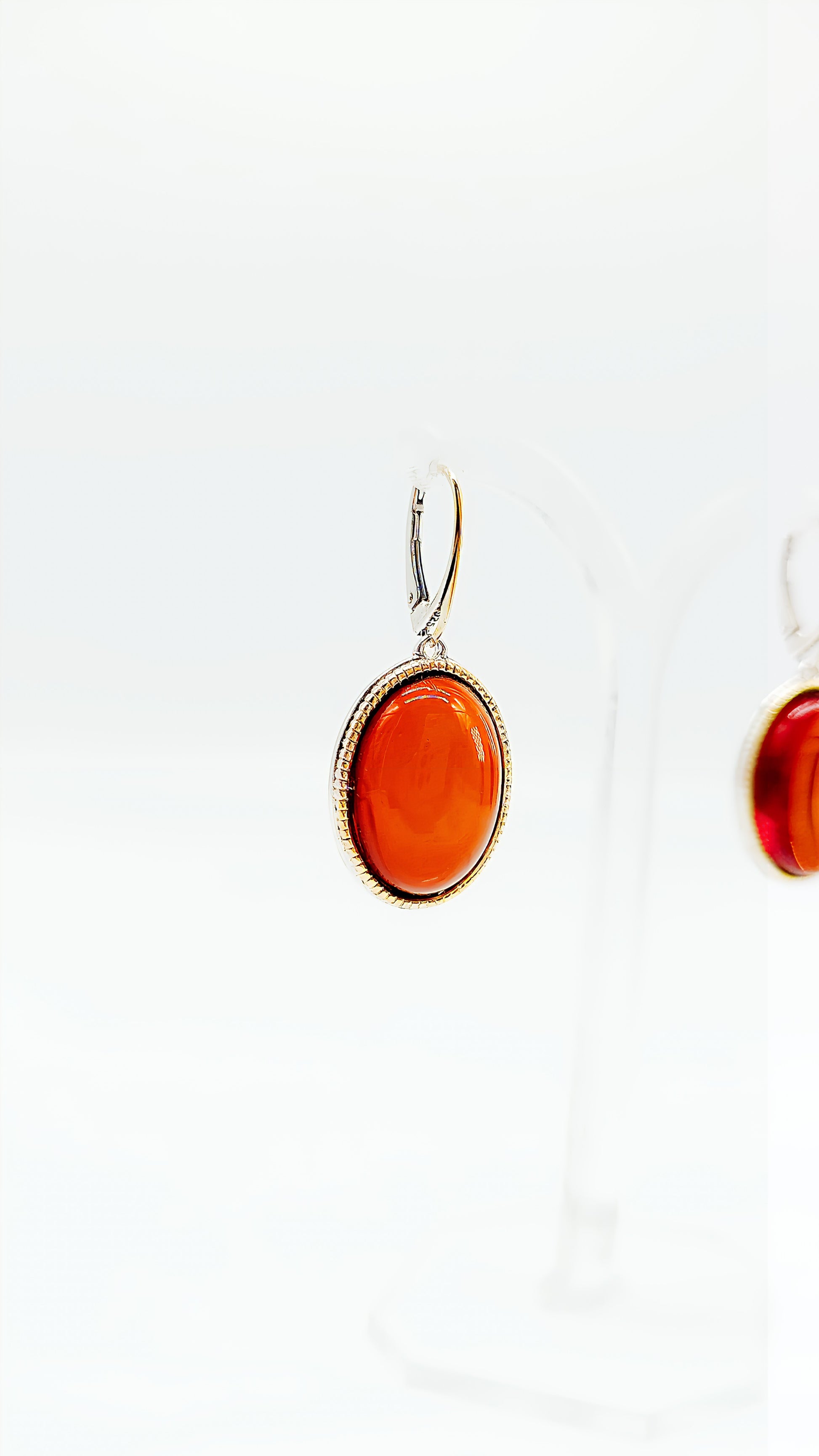 Diese Ohrhänger aus 925er Sterlingsilber präsentieren einen ovalen, warmen Bernstein in seiner schönsten Form. Das klassische Design unterstreicht die natürliche Ausstrahlung des Bernsteins, der in sanften, goldenen Tönen schimmert. Die filigrane Verarbeitung des Silbers verleiht den Ohrhängern einen eleganten und zeitlosen Look, der zu jeder Gelegenheit passt – ob zum täglichen Outfit oder zu besonderen Anlässen.
