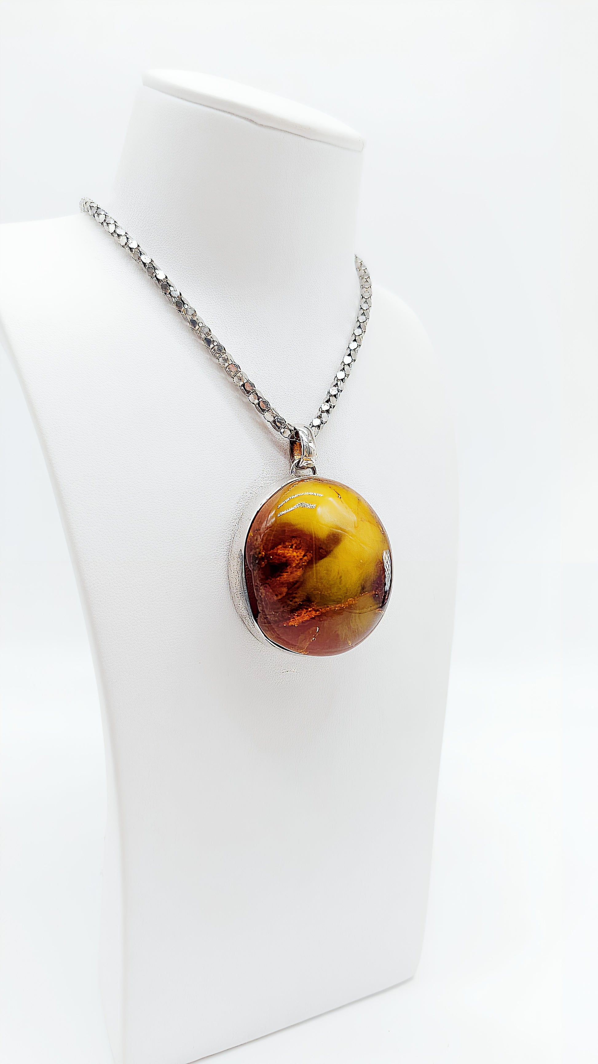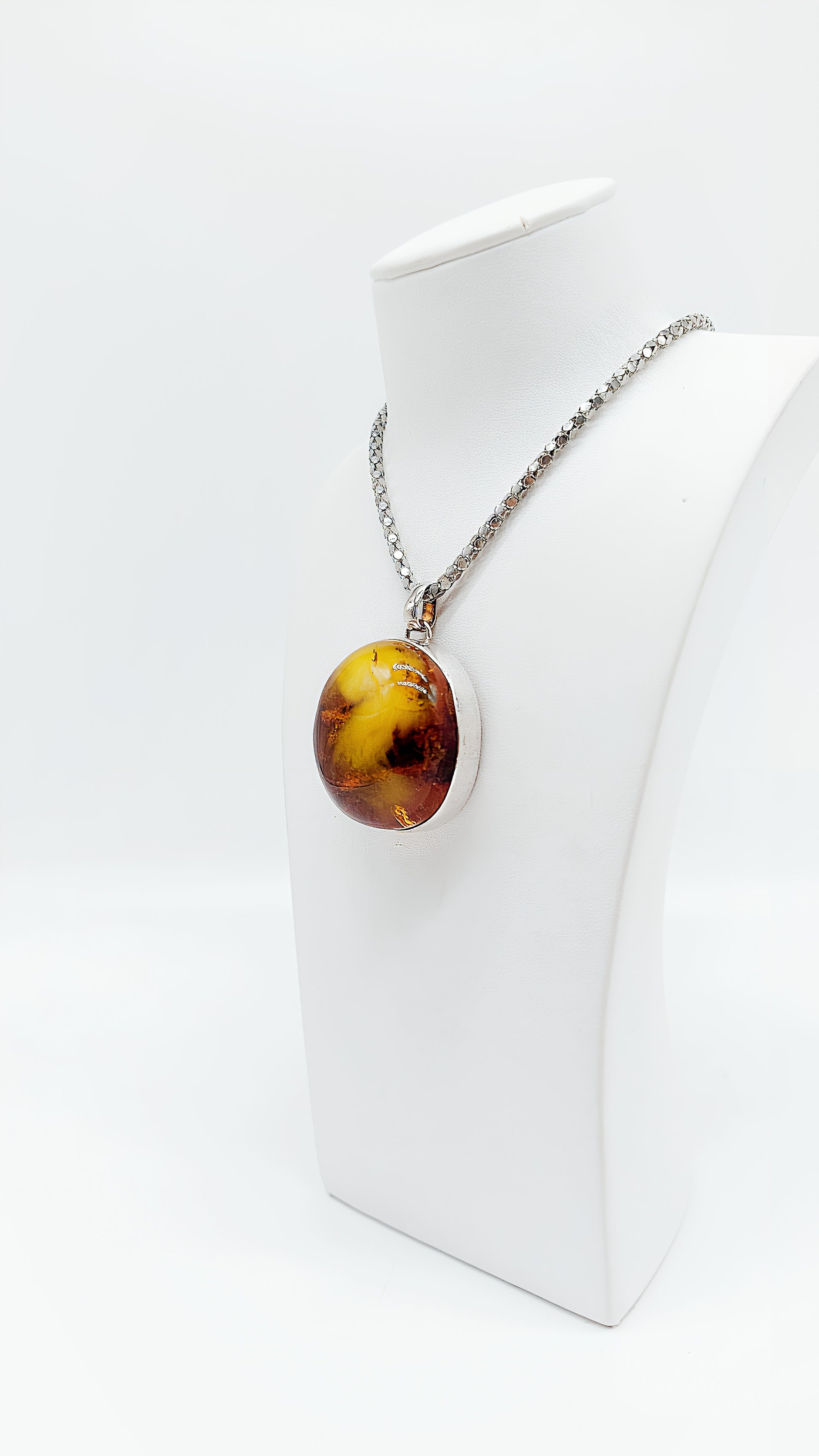 Dieser runde Bernsteinanhänger aus 925er Sterlingsilber vereint die natürliche Schönheit des Bernsteins mit einem eleganten und zeitlosen Design. Der Bernstein leuchtet in warmen Tönen und zeigt ein harmonisches Farbspiel, das von der schlichten Silberfassung perfekt umrahmt wird. Ein ideales Schmuckstück für Frauen, die natürliche Eleganz schätzen und ihrem Look eine besondere Note verleihen möchten. Perfekt als Geschenk für Naturliebhaberinnen oder für besondere Anlässe.