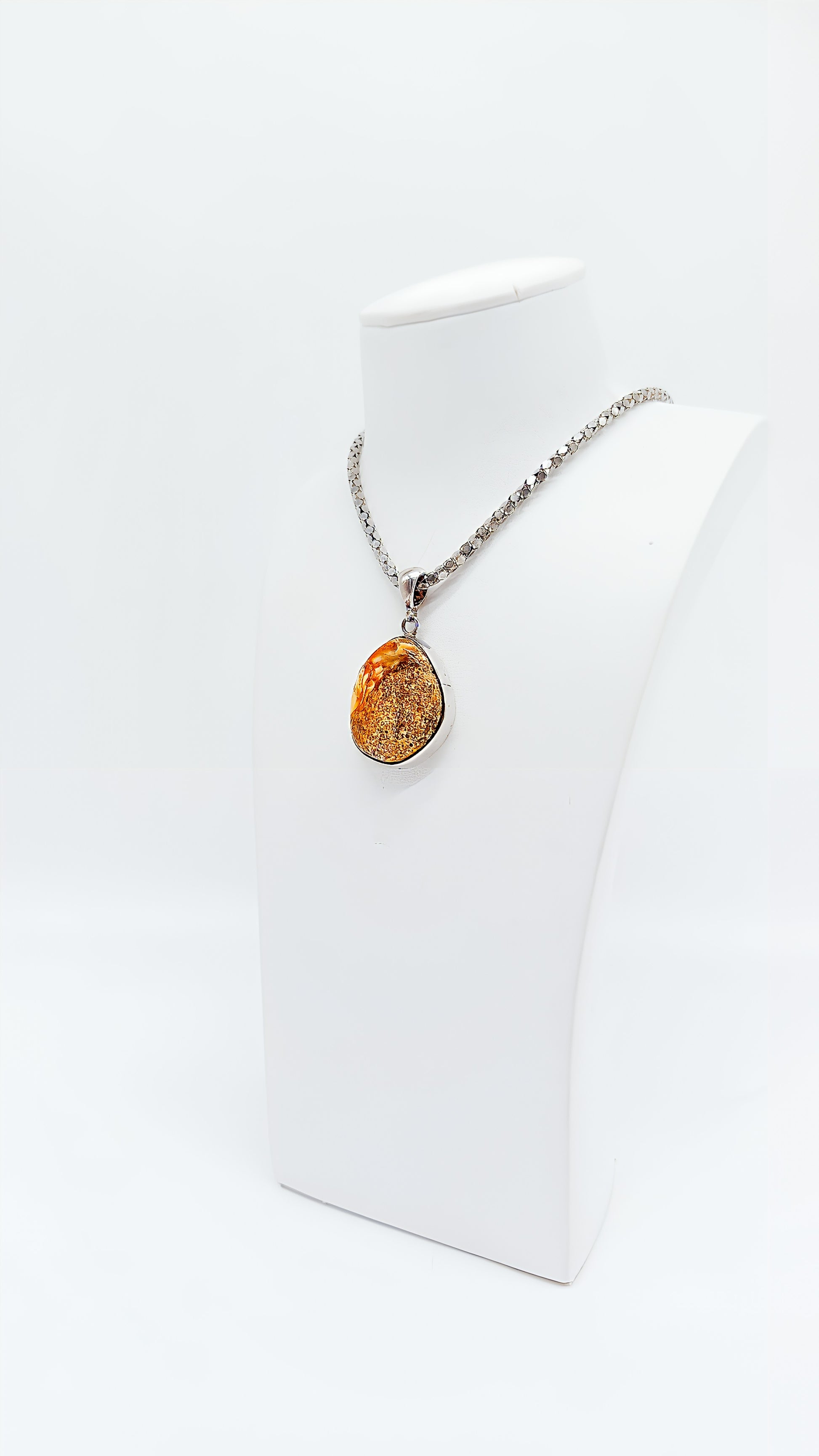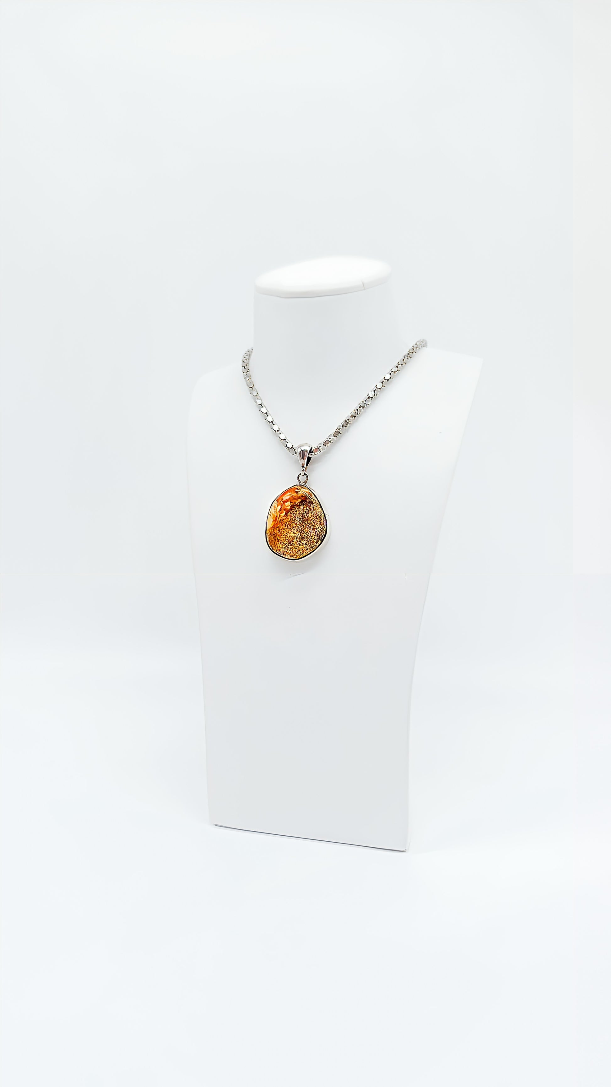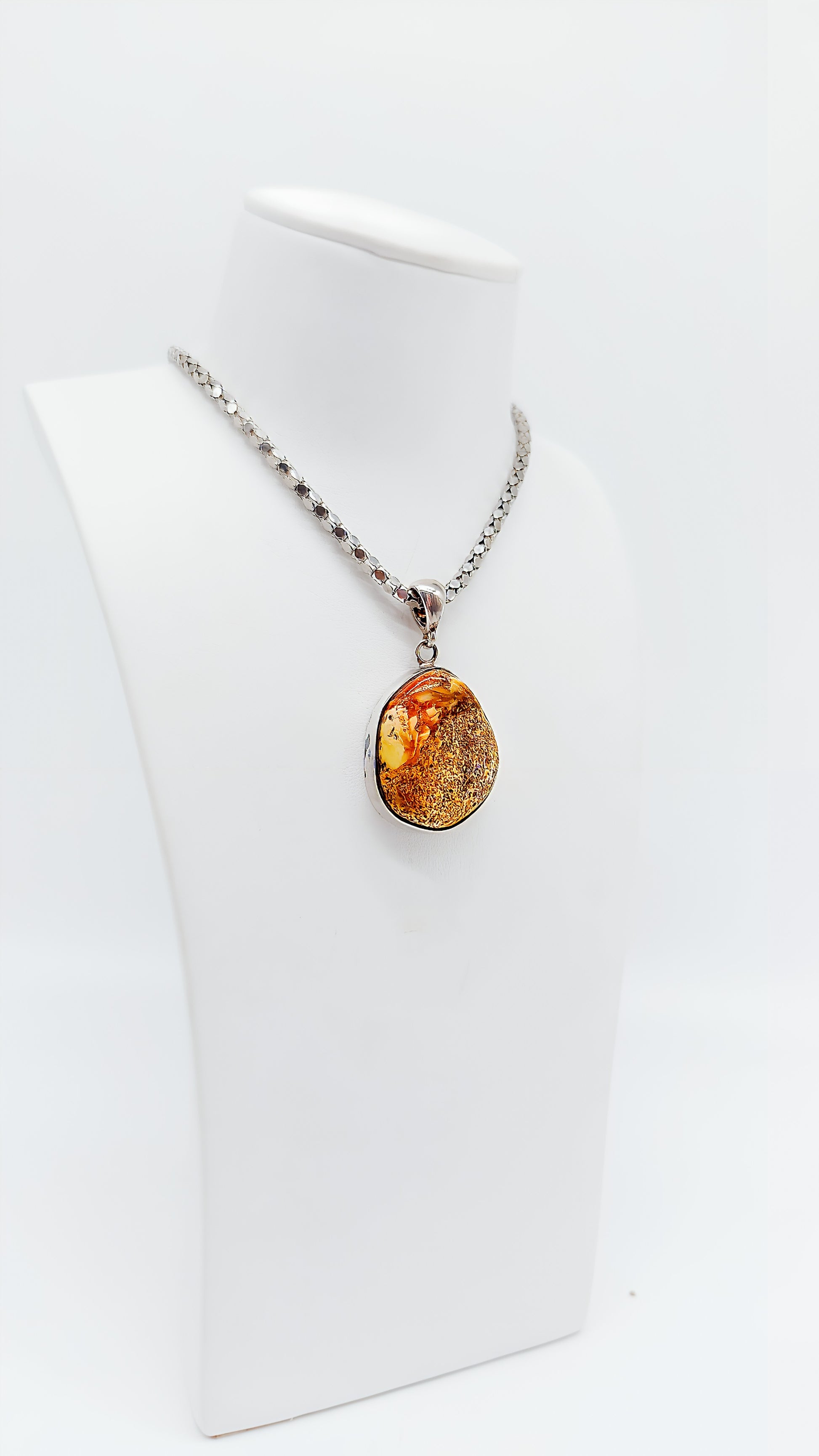 Dieser einzigartige Bernsteinanhänger aus 925er Sterlingsilber zeigt die Schönheit der Natur auf faszinierende Weise. Mit seiner warmen Farbe und natürlichen Einschlüsse erzählt der Bernstein eine Geschichte, die Millionen von Jahren alt ist. Jeder Anhänger ist ein Unikat, das den persönlichen Stil auf besondere Weise unterstreicht. Ideal für Frauen, die den Charme der Natur und Eleganz miteinander verbinden möchten. Perfekt als Geschenk zu besonderen Anlässen oder als persönliches Schmuckstück für den Alltag.