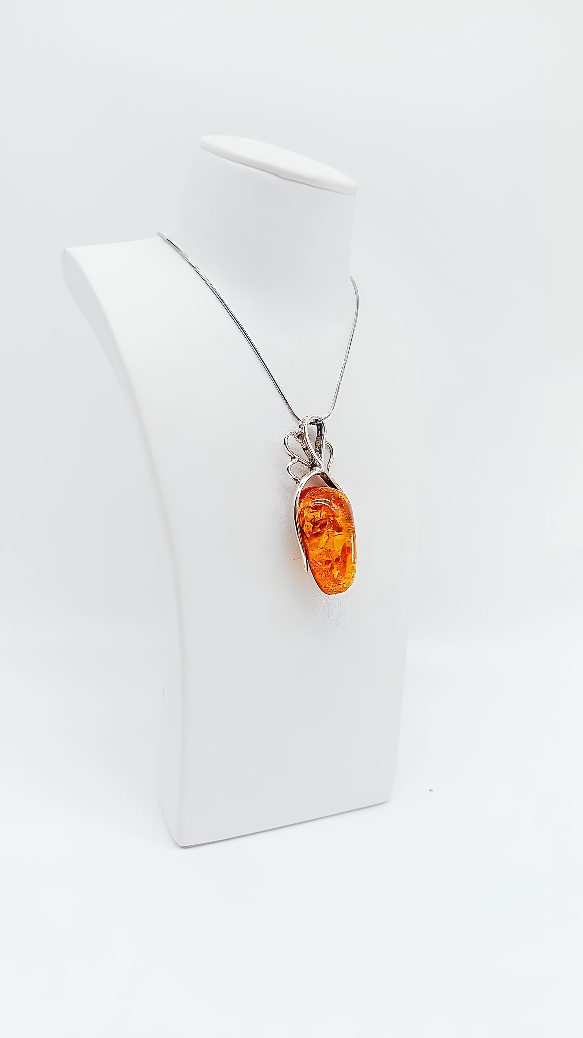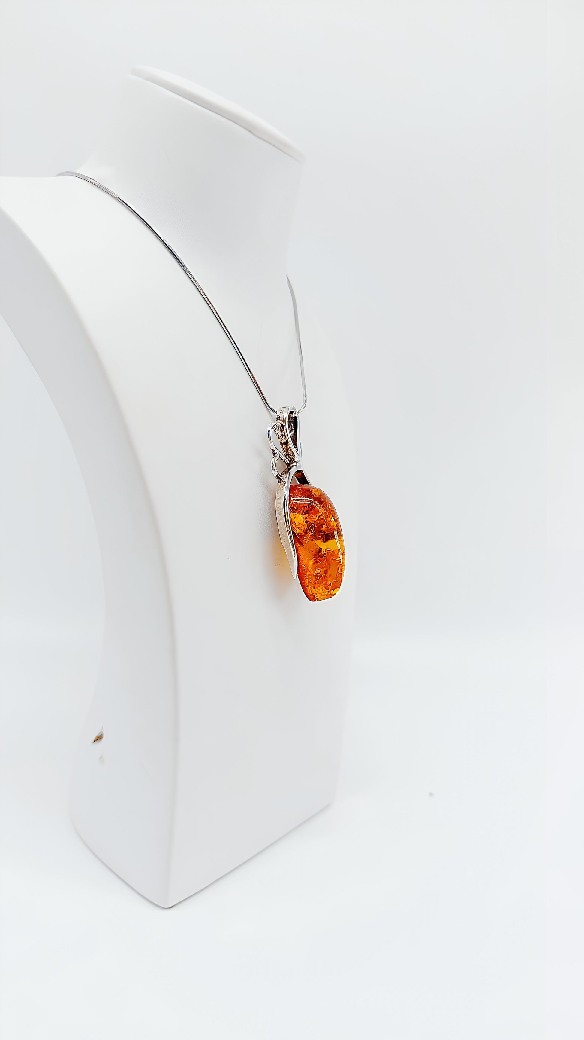 Dieser kunstvoll gestaltete Bernsteinanhänger aus 925er Sterlingsilber beeindruckt durch sein einzigartiges Design. Der warme, honigfarbene Bernstein wird von einer filigranen, handgefertigten Silberfassung umschlossen, die dem Schmuckstück eine elegante und verspielte Note verleiht. Jedes Stück ist ein Unikat und passt perfekt zu Frauen, die handgefertigten und individuellen Schmuck schätzen. Ein besonderes Geschenk für Geburtstage, Jubiläen oder um sich selbst eine Freude zu machen.