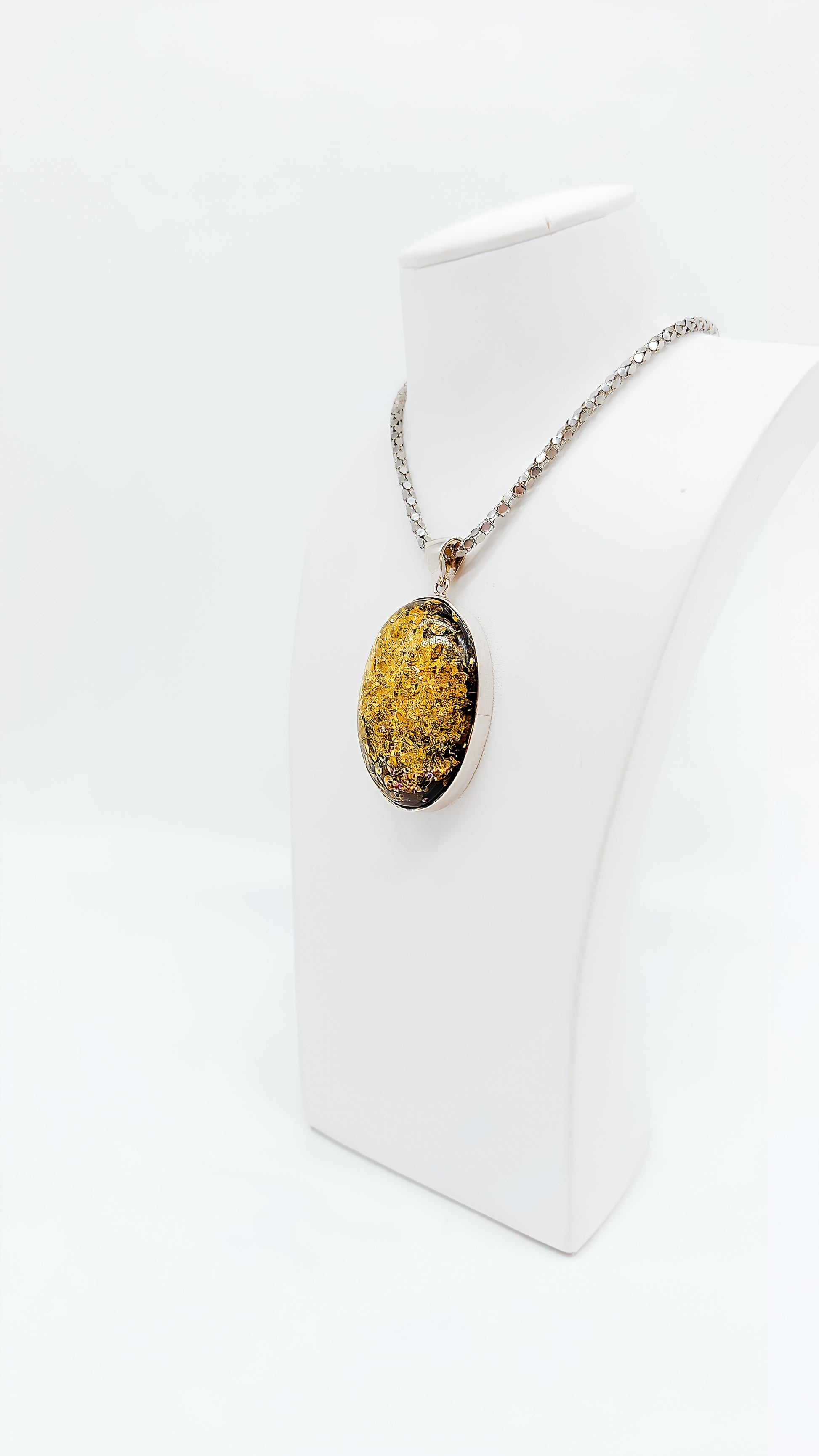 - Design: Ovaler Bernstein mit Silberfassung