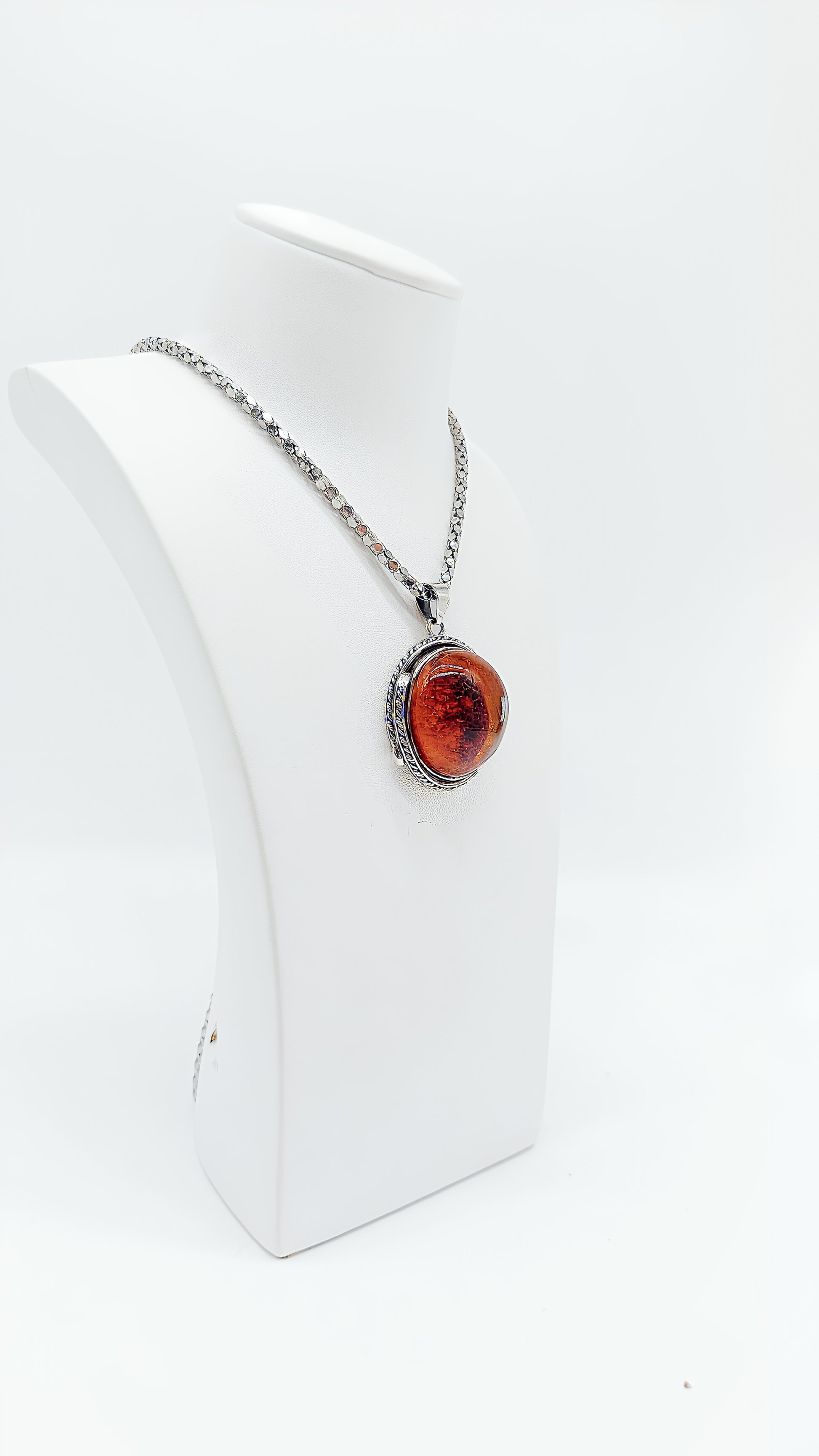Roter Bernstein-Schmuck – Einzigartiger Anhänger aus echtem Silber
