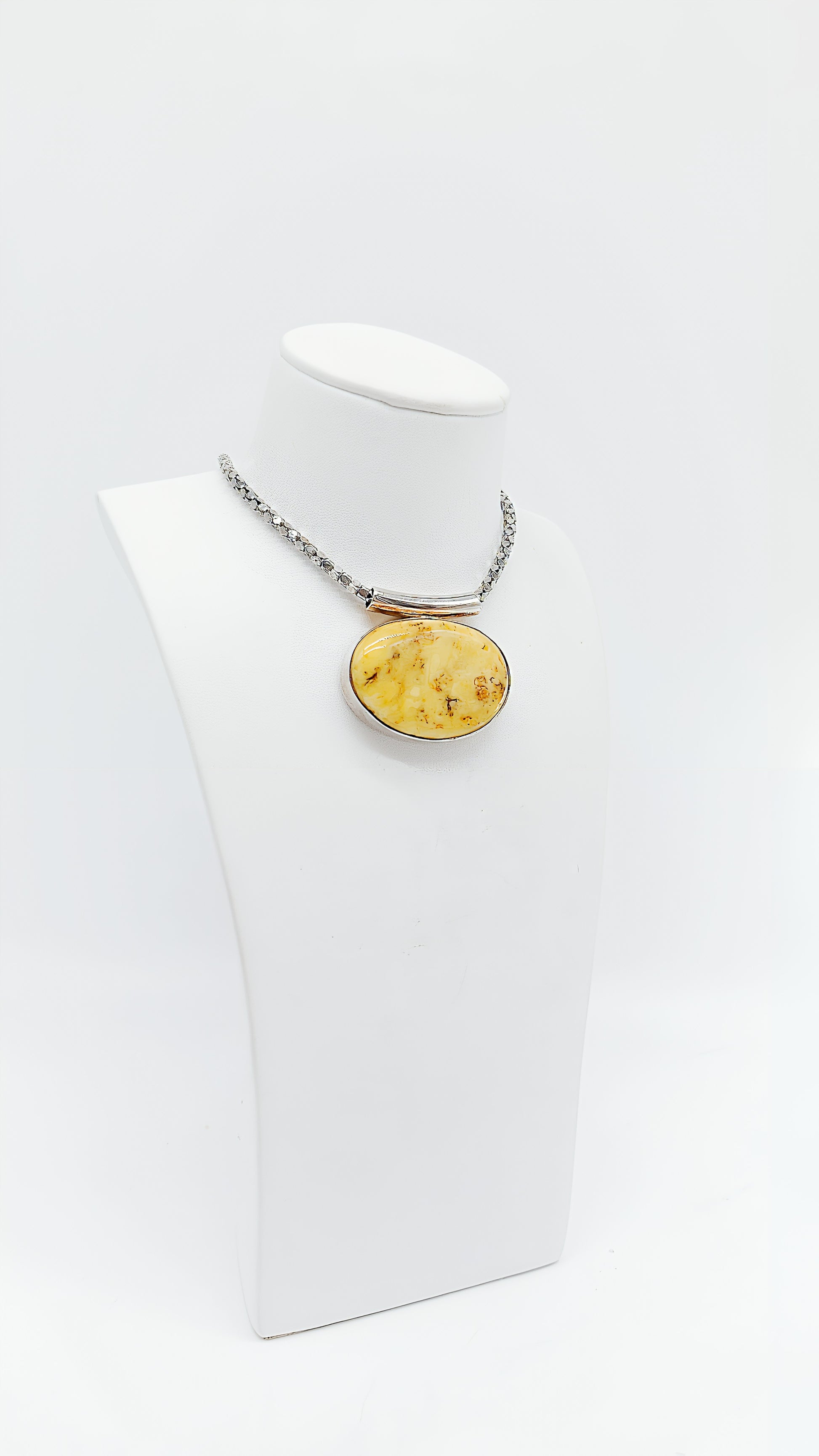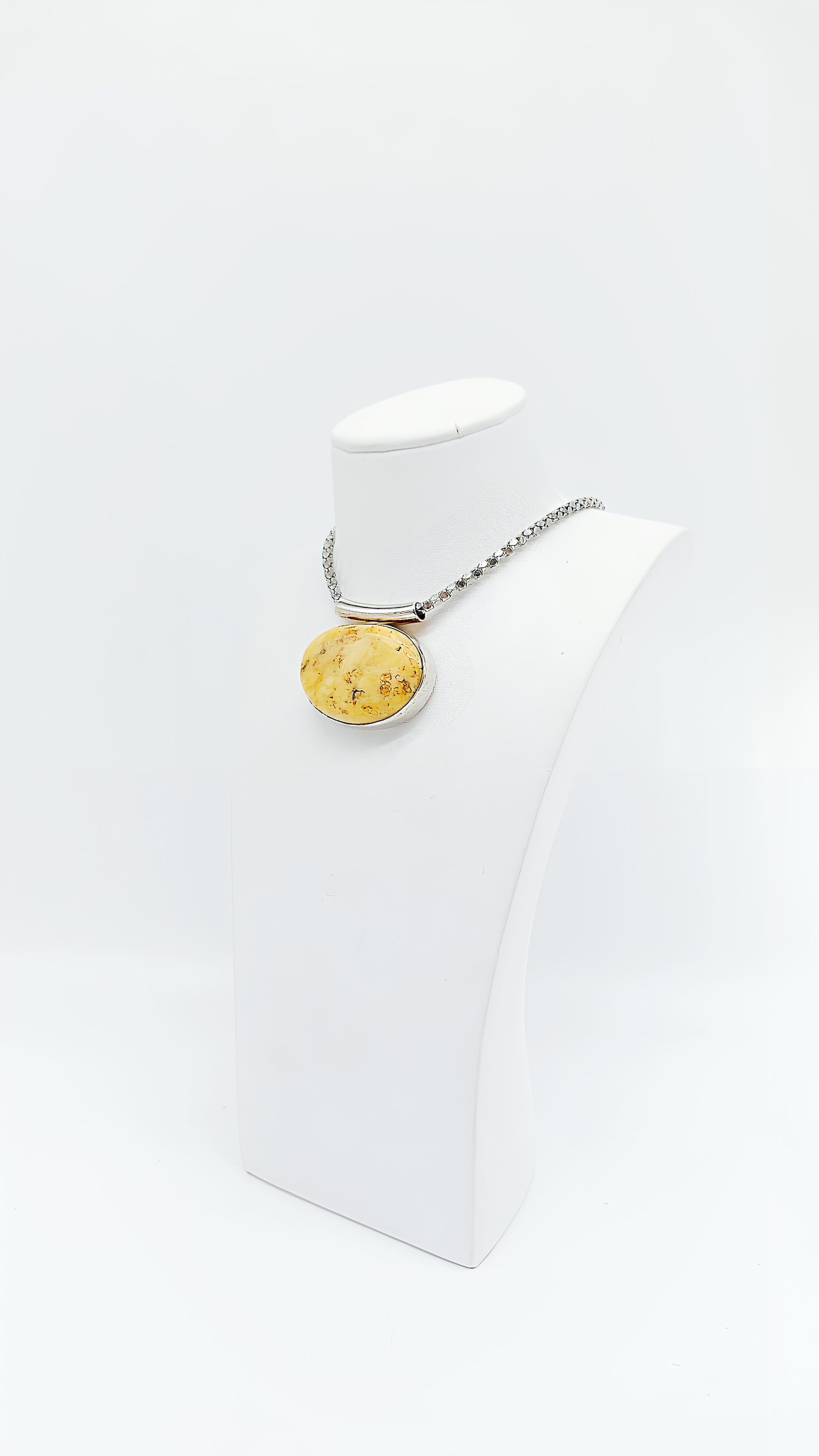 Dieser cremefarbene Bernsteinanhänger in ovaler Form ist ein wahres Meisterwerk der Natur, perfekt eingefasst in 925er Sterlingsilber. Der zarte Farbton des Bernsteins verleiht diesem Schmuckstück eine besondere Leichtigkeit und Eleganz, die sowohl im Alltag als auch zu besonderen Anlässen getragen werden kann. Der Anhänger ist ideal für Menschen, die zeitlose, minimalistische Designs lieben und dabei einen Hauch von Natur um den Hals tragen möchten. Ob als Geschenk für einen lieben Menschen oder für sich selbst – dieses Unikat aus Bernstein ist ein Symbol der Beständigkeit und natürlichen Schönheit.