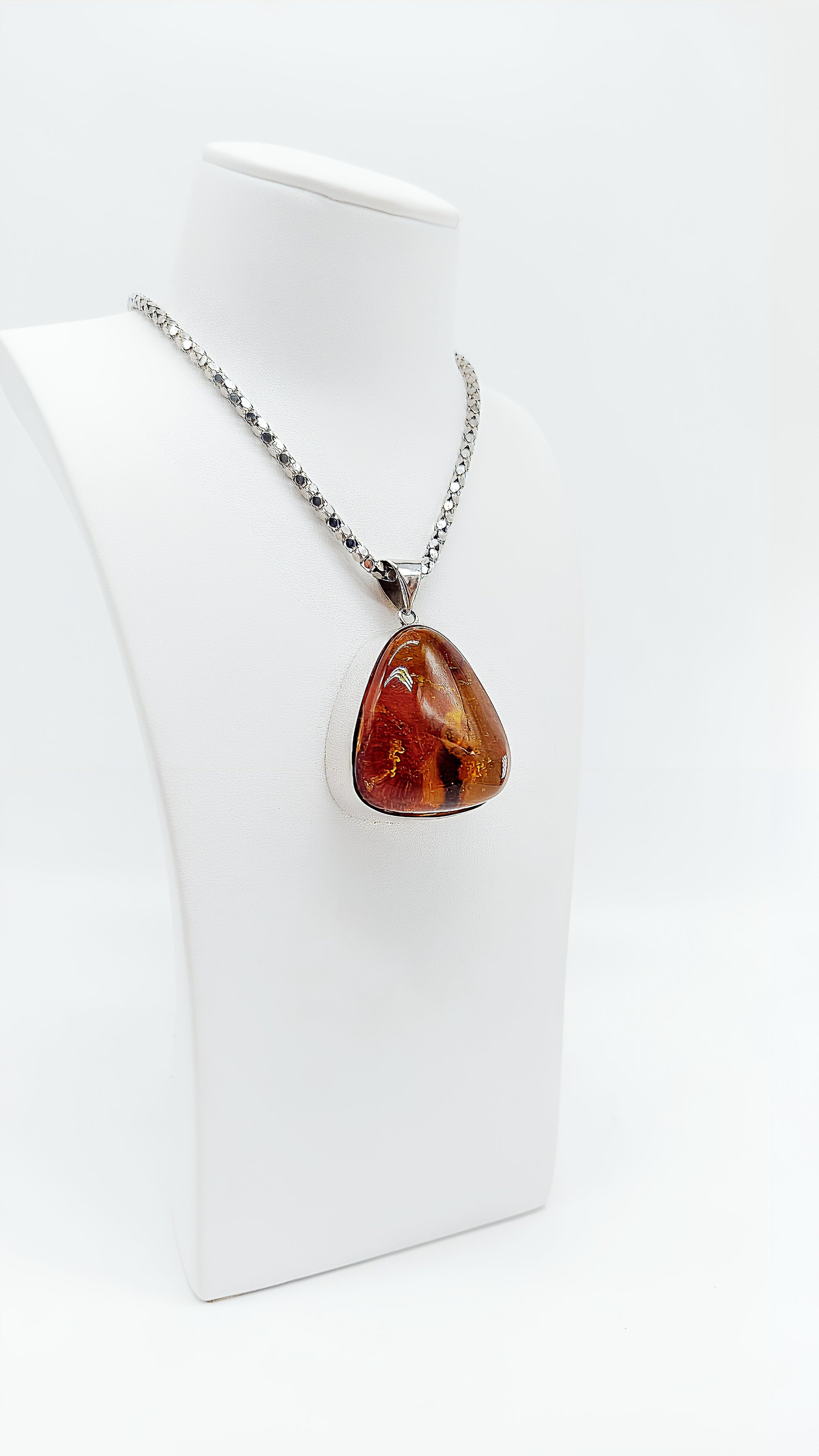 Dieser besondere Bernsteinanhänger in eleganter Tropfenform ist ein einzigartiges Unikat, das natürliche Schönheit mit moderner Handwerkskunst vereint. Der bernsteinfarbene Stein ist in feinstem 925er Sterlingsilber eingefasst, wodurch er besonders zur Geltung kommt. Die warmen Farben und die sanften Muster im Bernstein machen dieses Schmuckstück zu einem perfekten Accessoire für Naturliebhaber oder alle, die ein auffälliges und dennoch stilvolles Statement setzen möchten. Ein ideales Geschenk für besondere Anlässe wie Geburtstage, Jubiläen oder einfach als Zeichen der Wertschätzung für einen geliebten Menschen.