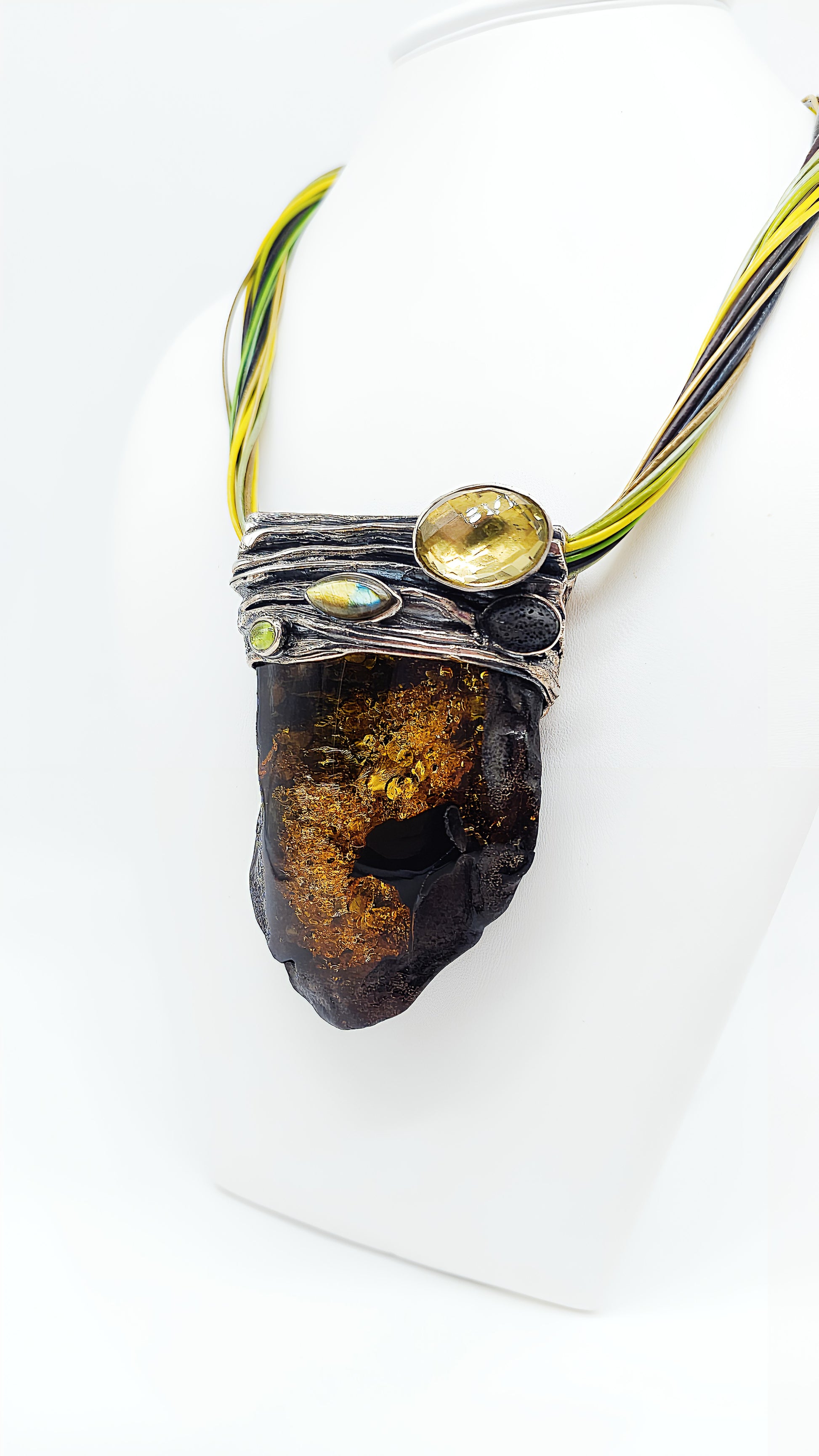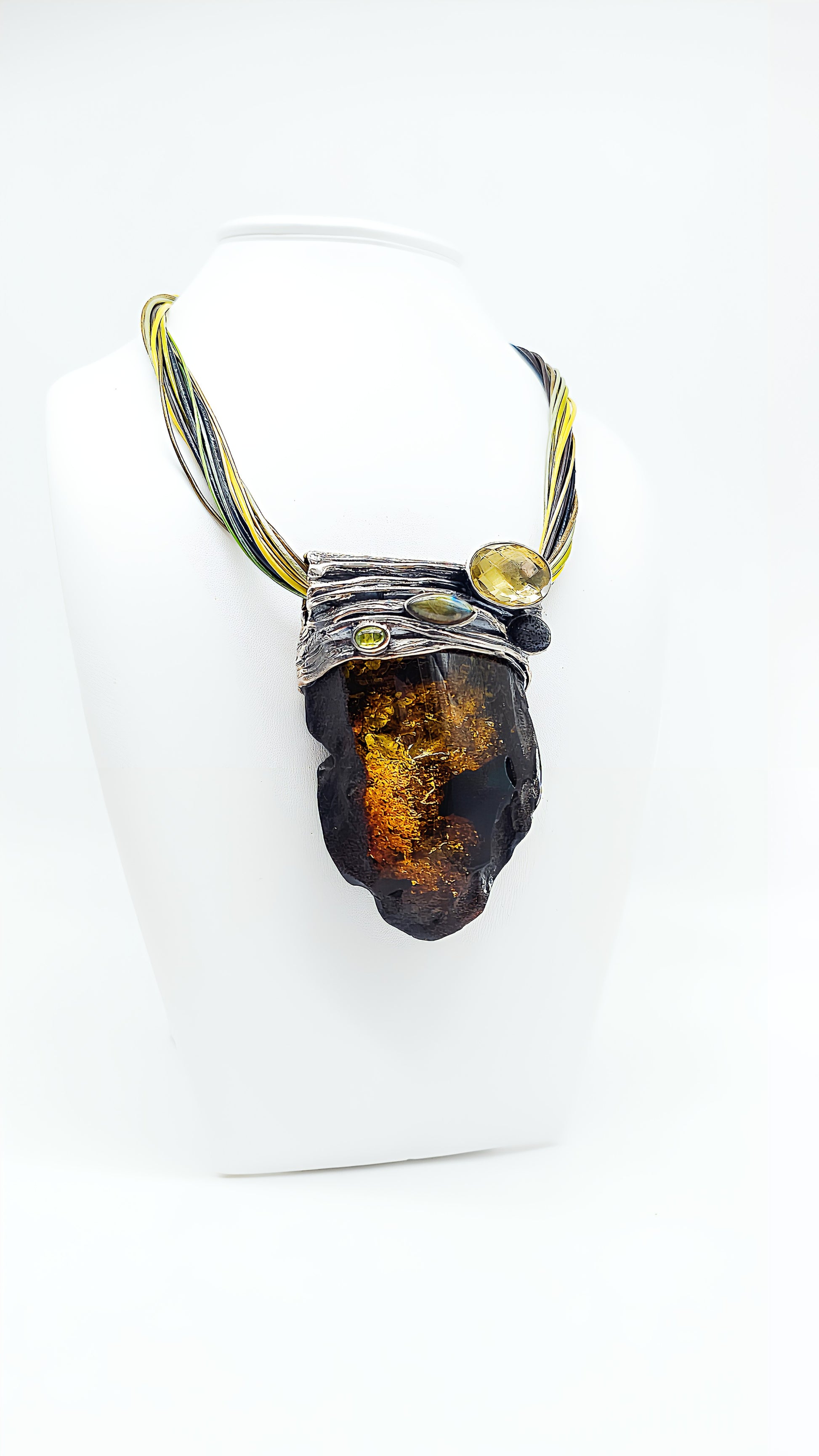 - Material: Echter Bernstein, Citrin, Labradorit, 925er Sterlingsilber
