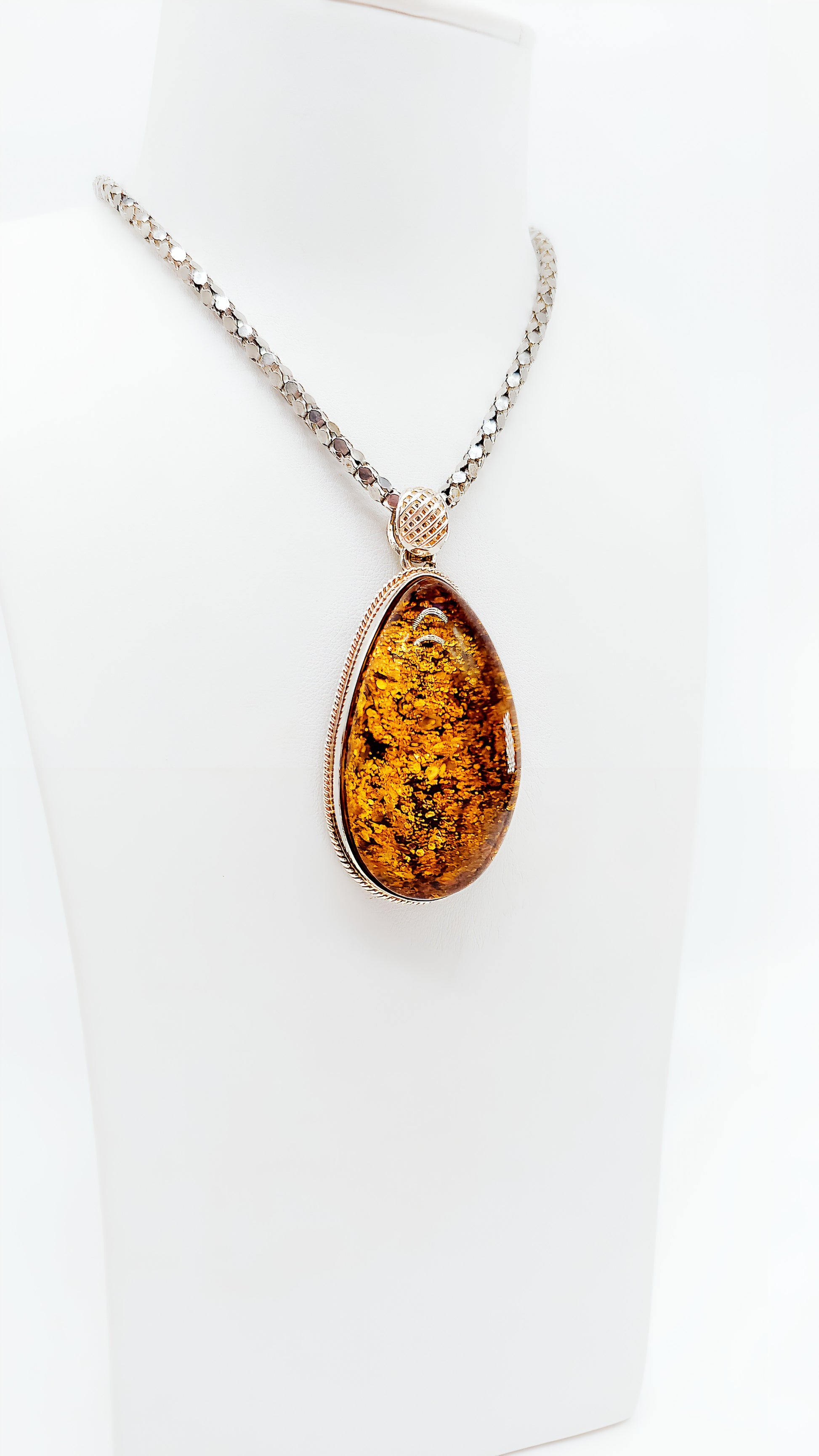 Naturbernstein Anhänger mit filigraner Silberverzierung