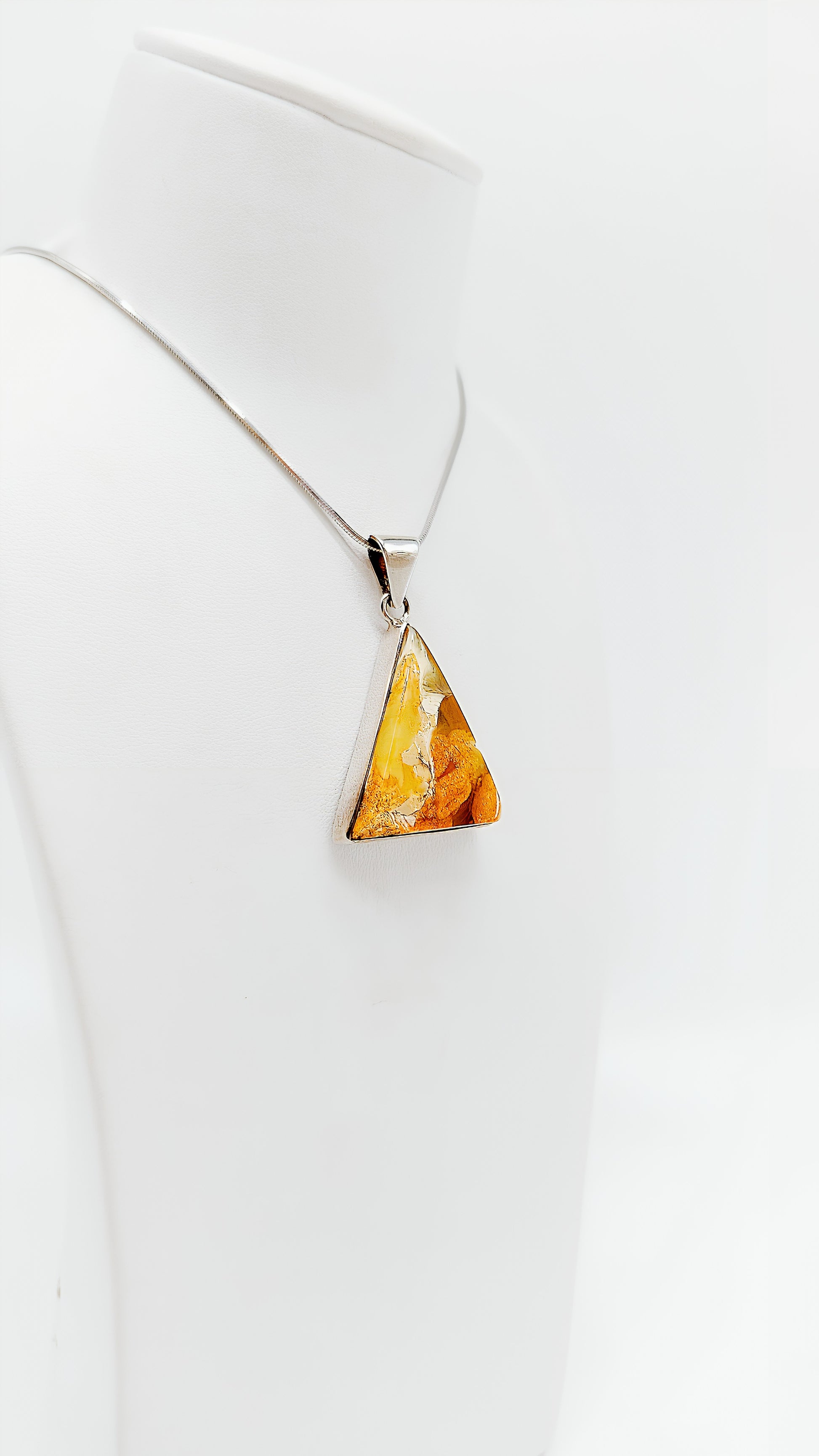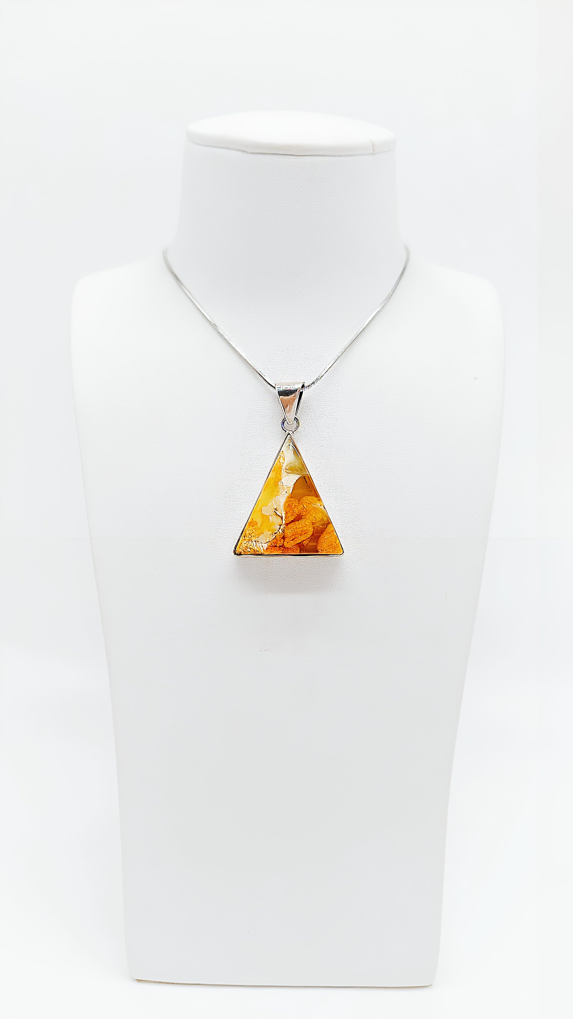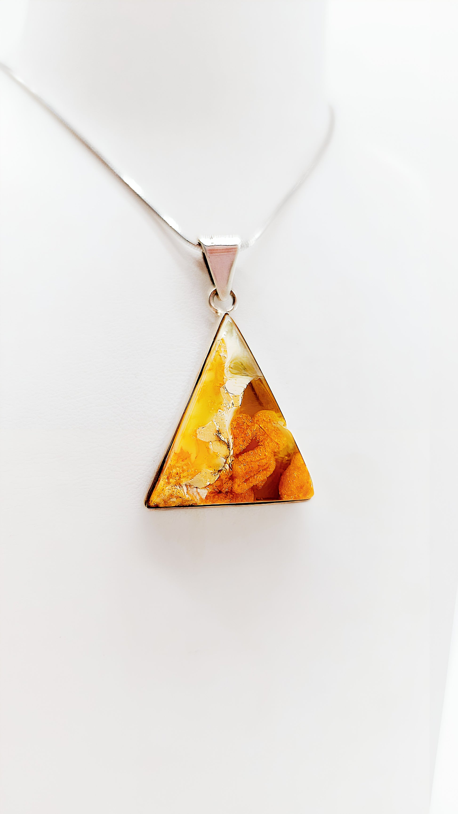 Dreieckiger Bernstein Anhänger aus 925er Silber für Damen