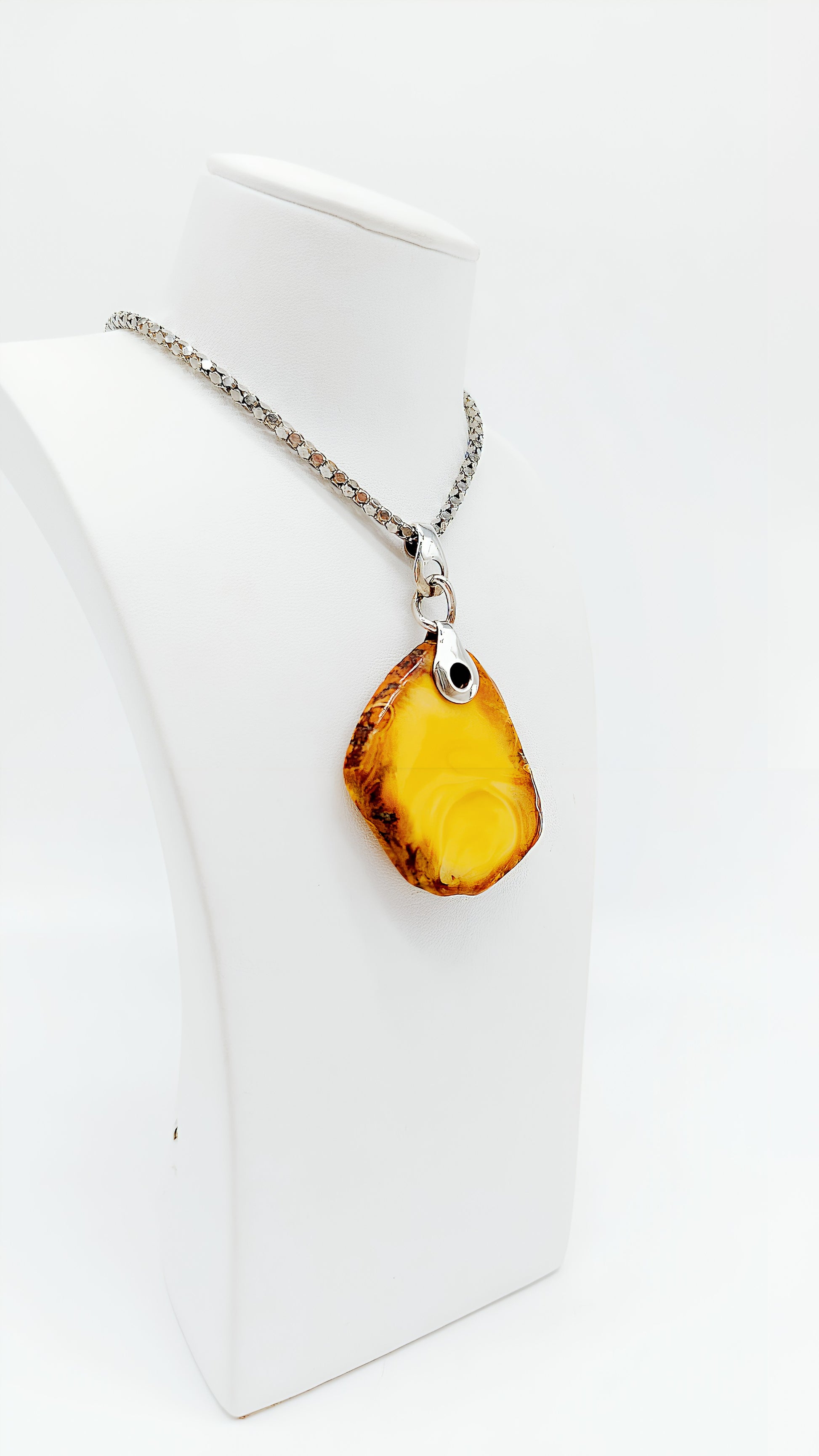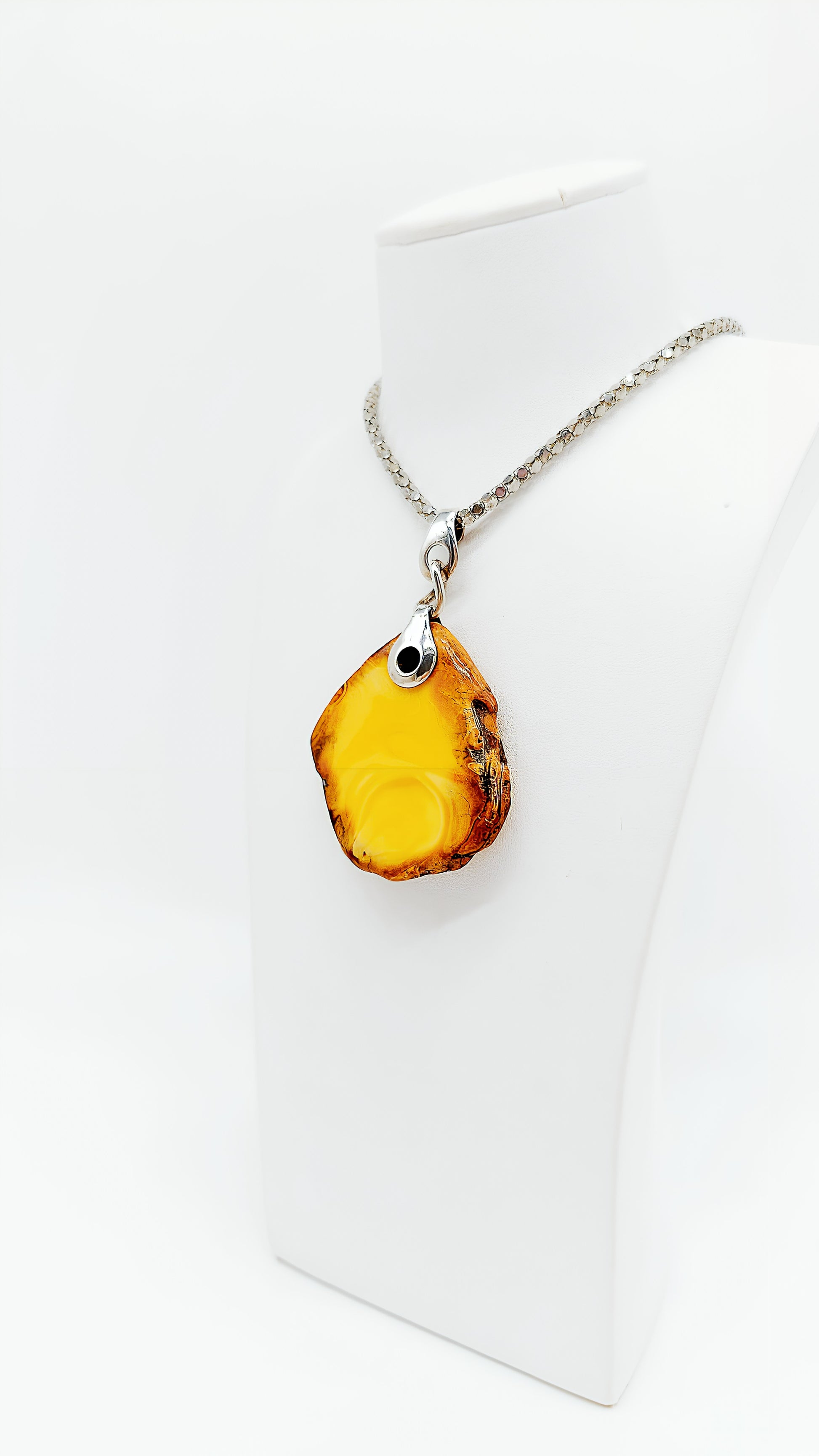 Dieser handgefertigte Bernstein-Anhänger ist ein wahres Unikat! Die natürliche, unregelmäßige Form des Bernsteins verleiht ihm einen rustikalen und doch edlen Charme. Gefasst in hochwertigem 925er Sterlingsilber, besticht dieser Anhänger durch seine warme goldgelbe Farbstruktur mit natürlichen Maserungen. Dank seines modernen, unisex Designs eignet er sich perfekt für Damen und Herren. Ob als individuelles Schmuckstück für den Alltag oder als stilvolles Accessoire zu besonderen Anlässen – dieser Anhänger verbindet Natur und Eleganz in einer einzigartigen Kombination.