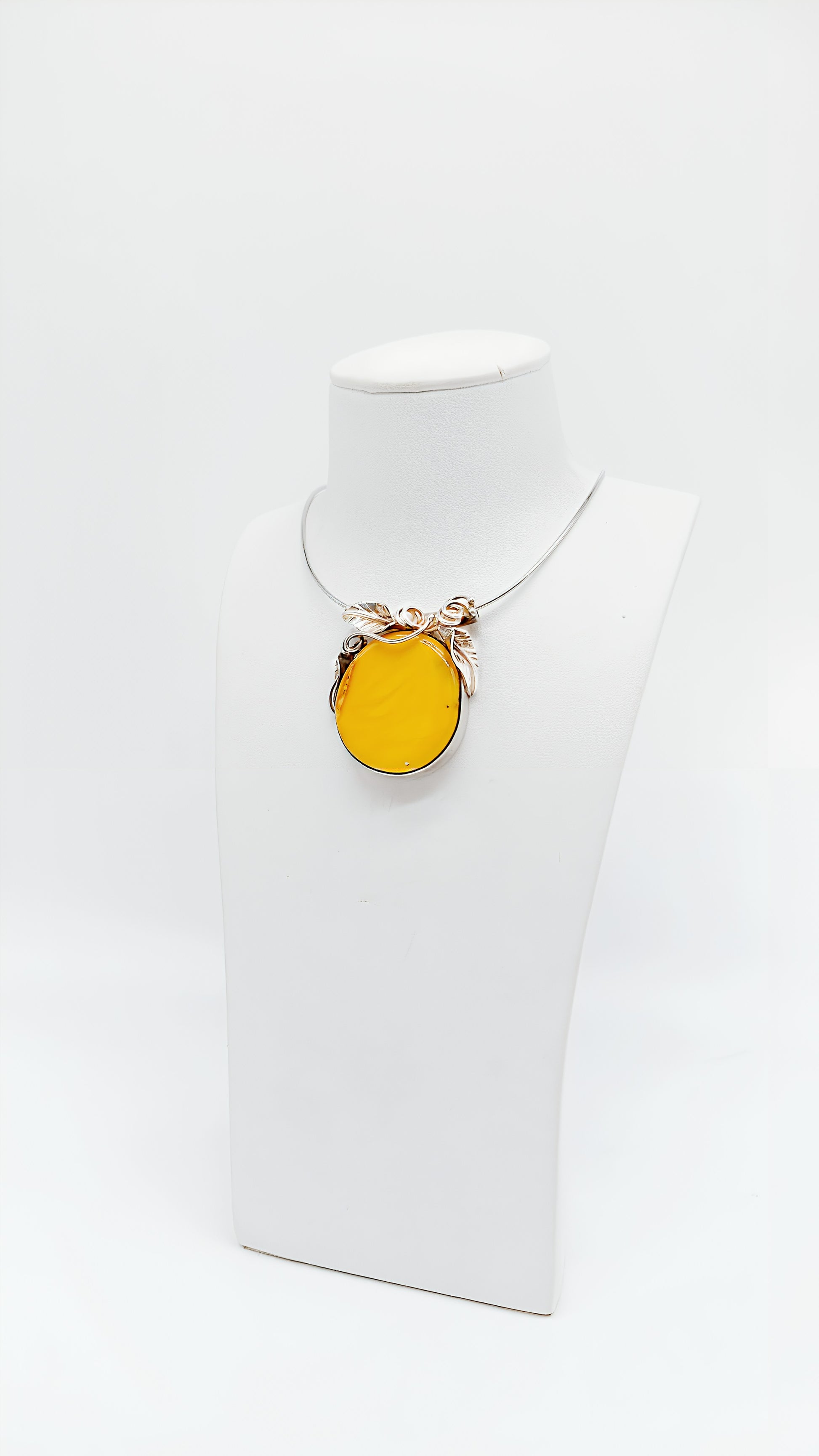 Dieser elegante Bernstein-Anhänger kombiniert natürliches Design mit kunstvoller Handwerkskunst. Der runde Naturbernstein, eingefasst in filigran gearbeitete 925er Sterlingsilber-Blätter, strahlt in einem warmen Honiggelb und ist ein wahrer Blickfang. Jedes Schmuckstück ist ein handgefertigtes Unikat, das durch seine individuelle Maserung und Silberverzierung einzigartig wird. Perfekt für Frauen, die exklusiven und stilvollen Schmuck lieben – sei es als Geschenk für Geburtstage, Jubiläen oder als besonderes Highlight für die eigene Schmucksammlung.