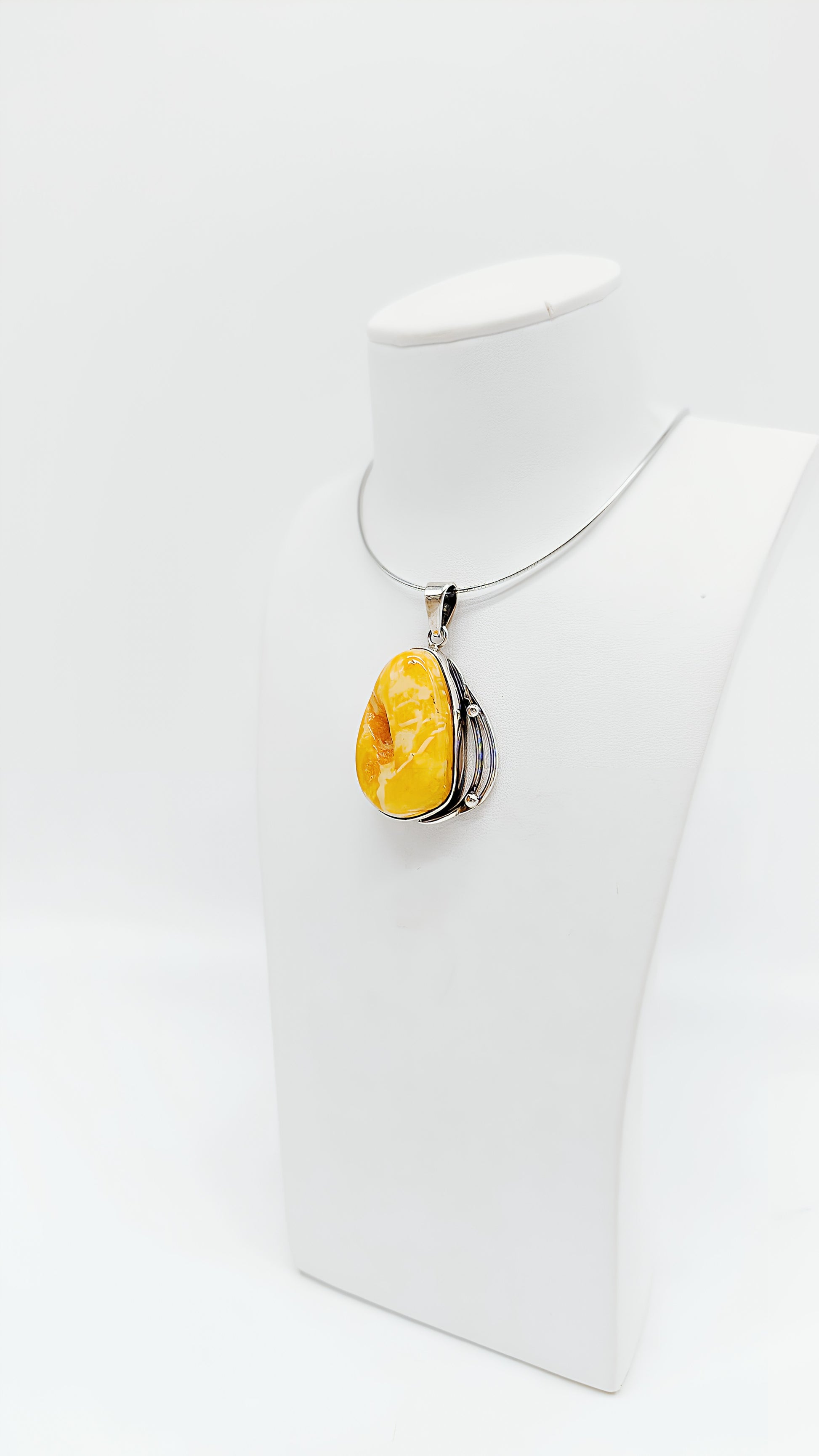 Dieser wunderschöne Bernstein-Anhänger mit seiner leuchtend gelben Farbe bringt die Schönheit der Natur in ein edles Schmuckstück. Die tropfenförmige Bernsteinfassung aus hochwertigem 925er Sterlingsilber hebt die einzigartige Maserung des Bernsteins hervor und verleiht jedem Look eine besondere Note. Perfekt für Frauen, die eleganten und natürlichen Schmuck lieben. Dieses zeitlose Schmuckstück eignet sich ideal als Geschenk für Geburtstage, Jahrestage oder besondere Anlässe. Die warme Ausstrahlung des Bernsteins harmoniert mit jeder Garderobe und macht den Anhänger zum perfekten Begleiter für den Alltag oder festliche Anlässe.