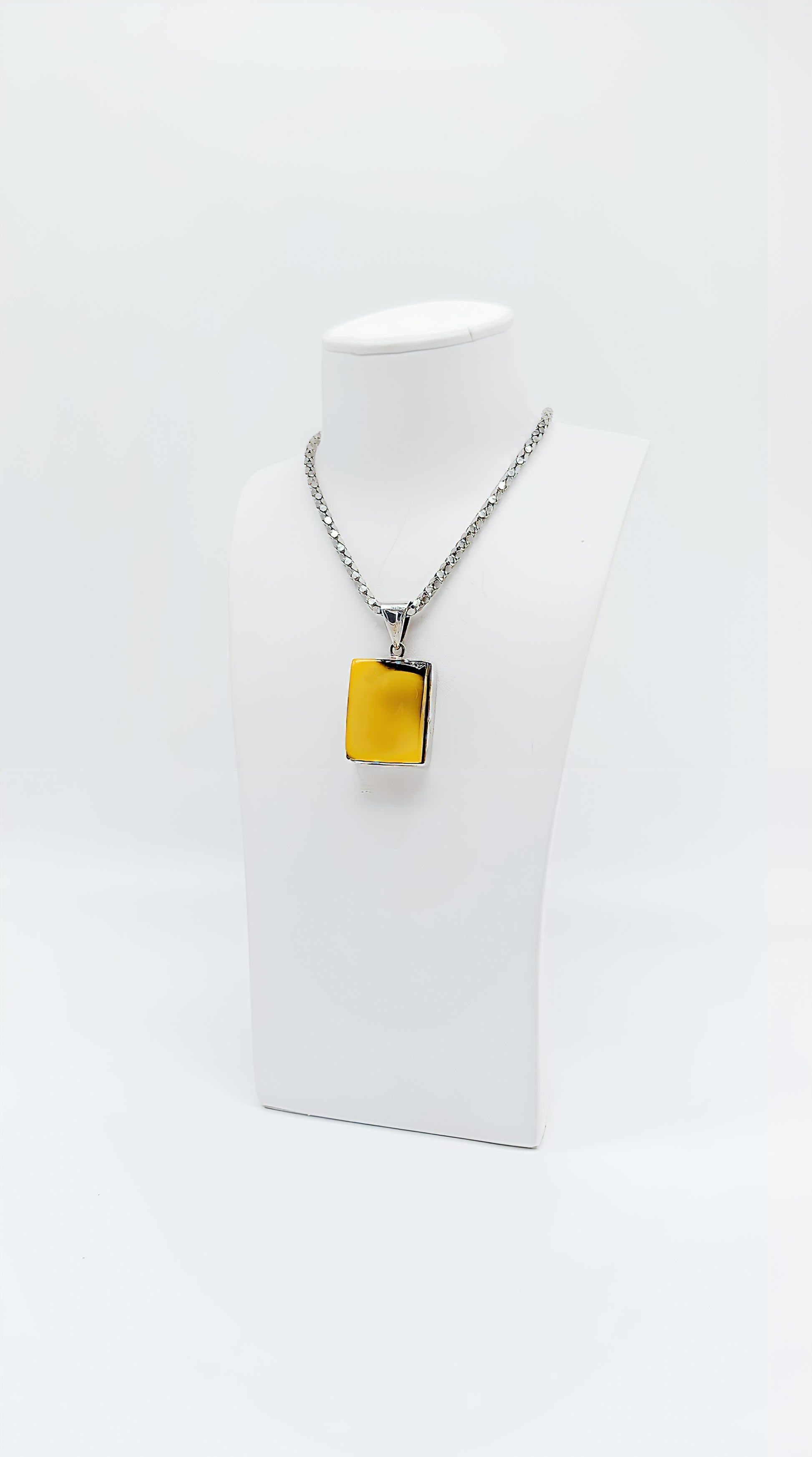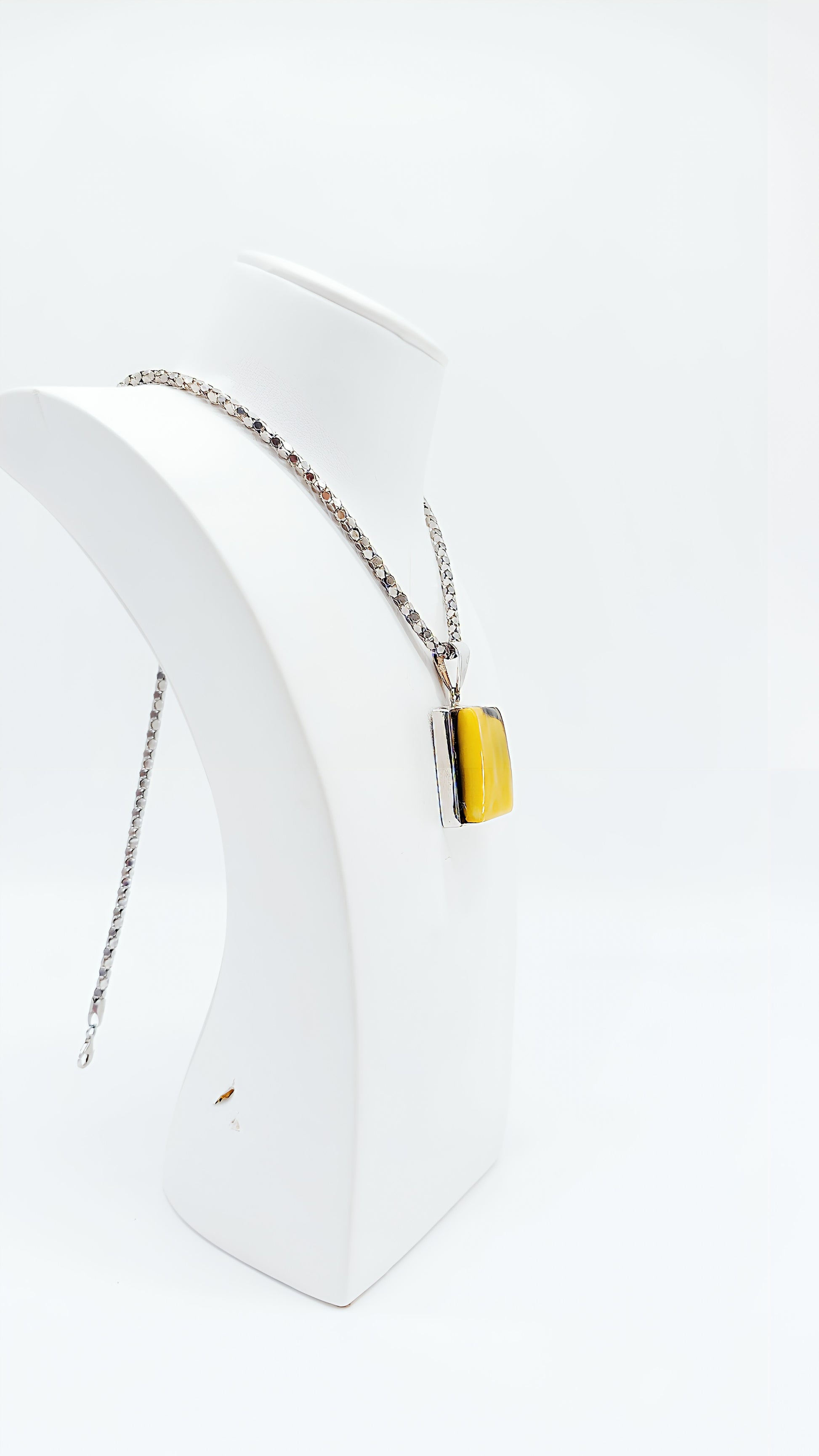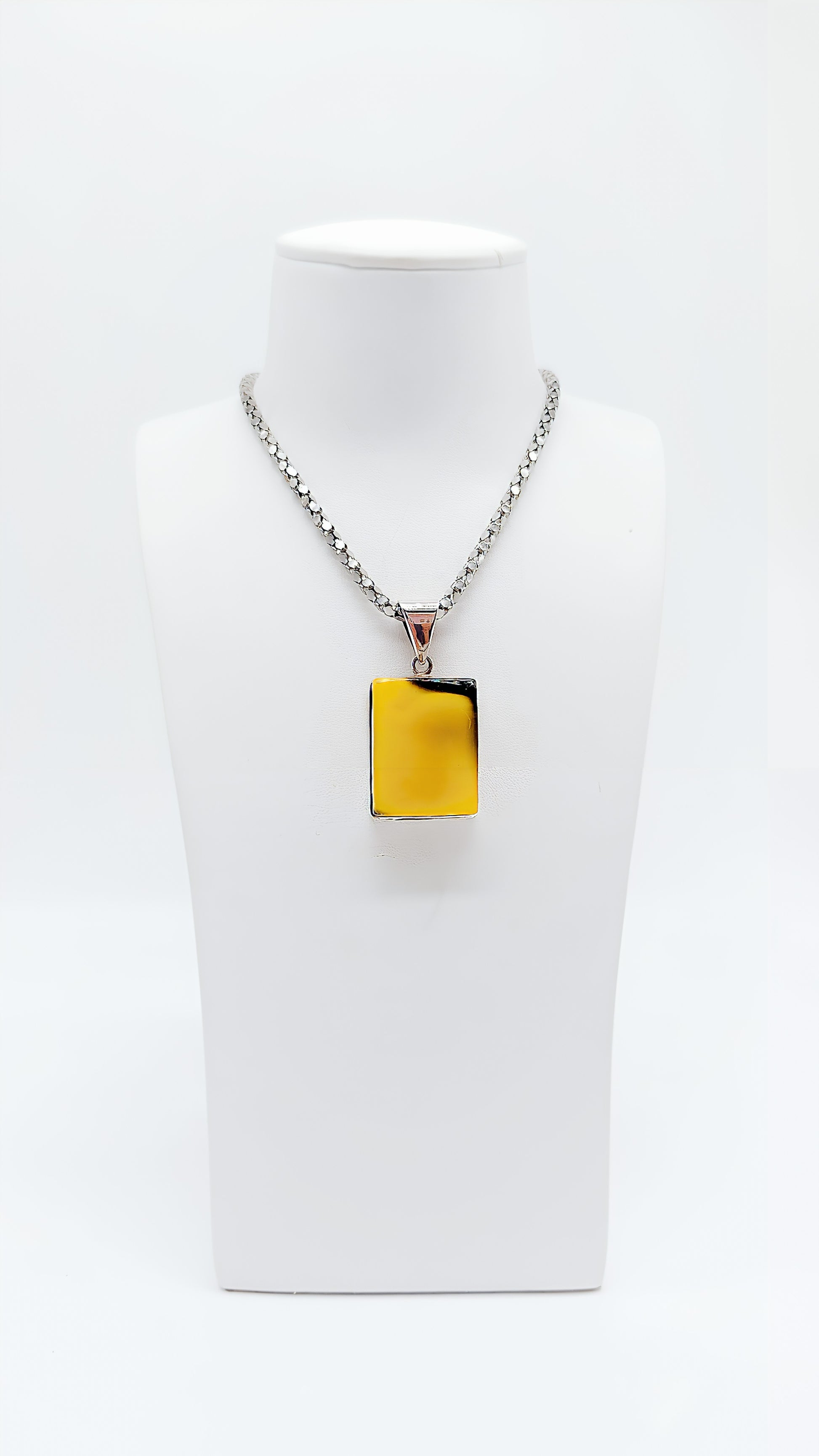 Rechteckiger Bernstein-Anhänger – 925 Silber & modernes Design