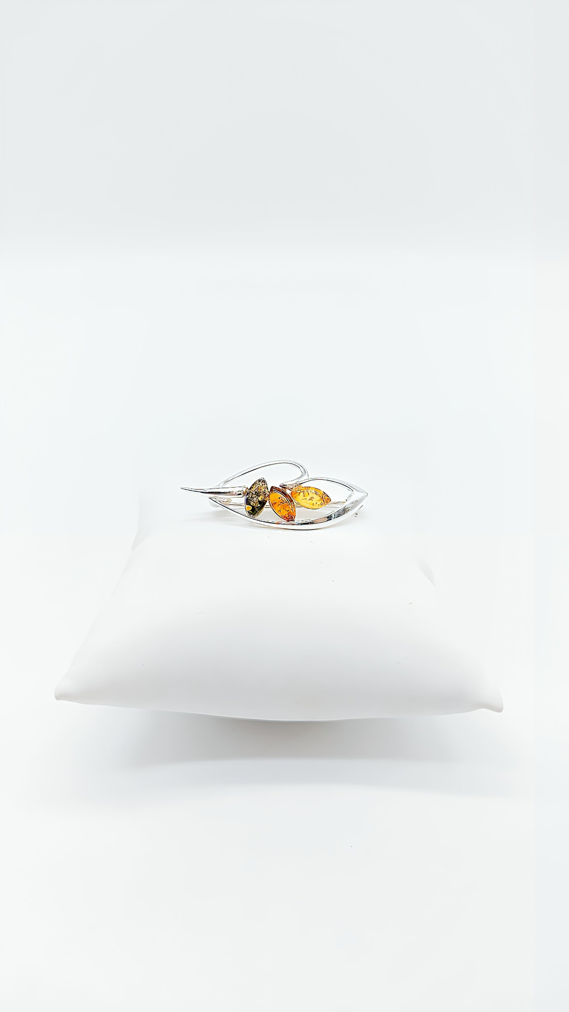 Diese exquisite Brosche aus 925er Sterlingsilber ist ein wahres Meisterwerk. Das kunstvoll gestaltete Blatt-Design wird durch drei funkelnde Bernsteine in verschiedenen Farben akzentuiert. Jede Brosche ist ein handgefertigtes Unikat, das sowohl durch die hochwertigen Materialien als auch durch die filigrane Verarbeitung besticht. Der warme Glanz des Bernsteins harmoniert perfekt mit dem kühlen Silber und verleiht Ihrem Outfit eine natürliche Eleganz. Ideal für jeden Anlass – sei es als besonderes Detail auf Ihrer Kleidung oder als stilvolles Accessoire an einem Schal oder einer Tasche.