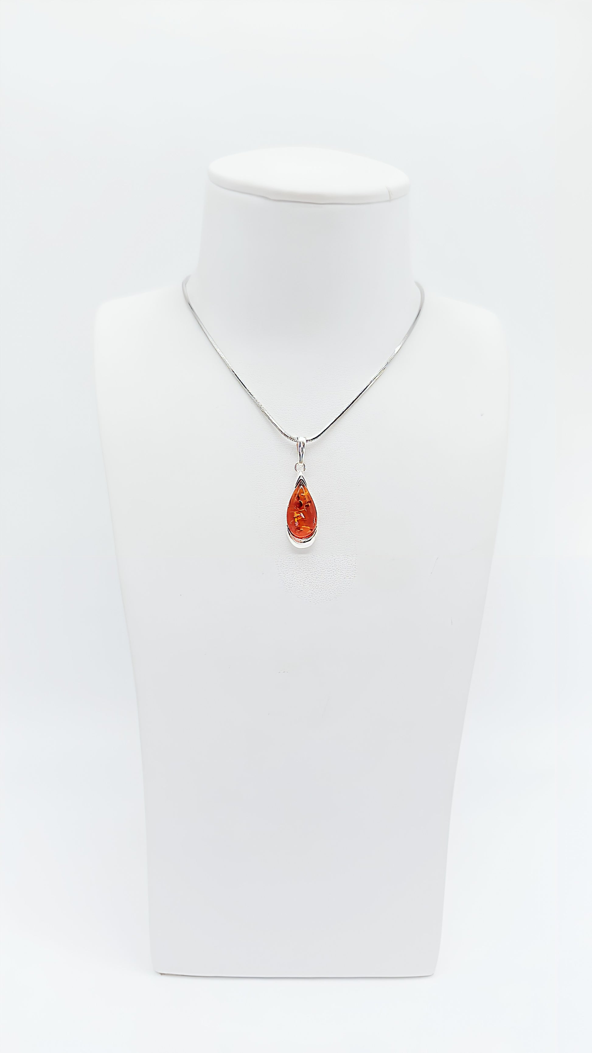 Dieser tropfenförmige Bernsteinanhänger aus 925er Sterlingsilber vereint schlichte Eleganz mit natürlicher Schönheit. Der warme Glanz des Bernsteins und das glänzende Silber verschmelzen in diesem handgefertigten Unikat zu einem einzigartigen Schmuckstück, das jedem Outfit einen Hauch von Raffinesse verleiht. Perfekt für Liebhaber zeitlosen Designs und natürlicher Edelsteine.