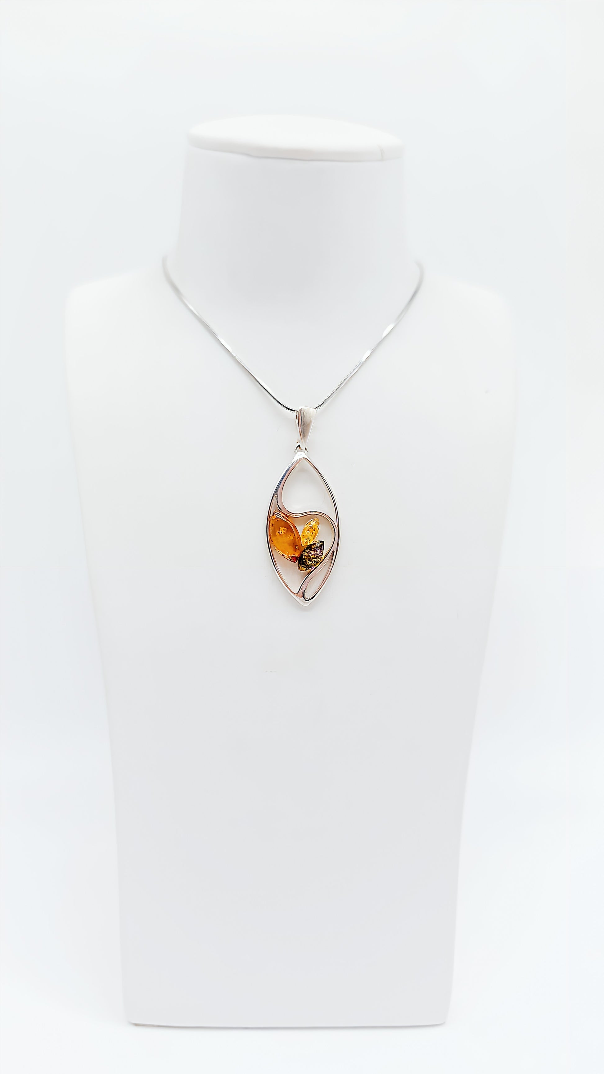 Dieser wunderschöne Anhänger kombiniert drei verschiedene Farben von Bernstein – ein leuchtendes Orange, ein tiefes Gelb und ein mysteriöses Dunkelgrün – in einem eleganten und offenen Design aus 925er Sterlingsilber. Die tropfenförmige Fassung umschließt die Bernsteine und betont ihre natürliche Schönheit auf eine moderne und stilvolle Weise. Das farbliche Zusammenspiel der Bernsteine macht diesen Anhänger zu einem besonderen Hingucker, der jedem Outfit eine elegante, natürliche Note verleiht. Bernstein wird seit Jahrhunderten als Symbol für Schutz und positive Energie geschätzt. Mit diesem Anhänger trägst du die Farben und die Kraft der Natur nah bei dir. Ein perfektes Geschenk für besondere Anlässe oder um dir selbst eine Freude zu bereiten – ein Schmuckstück, das Eleganz und Naturverbundenheit vereint.