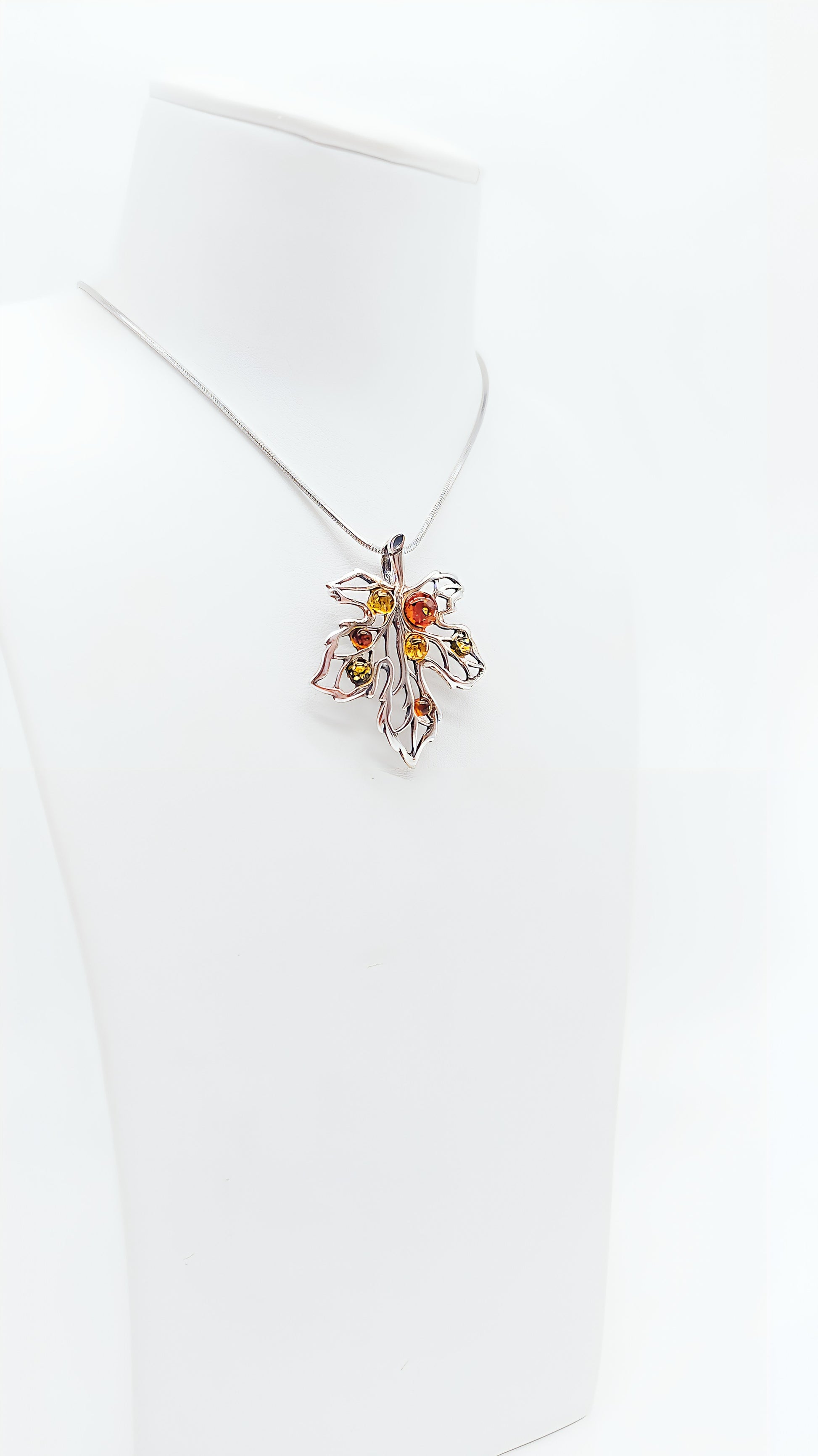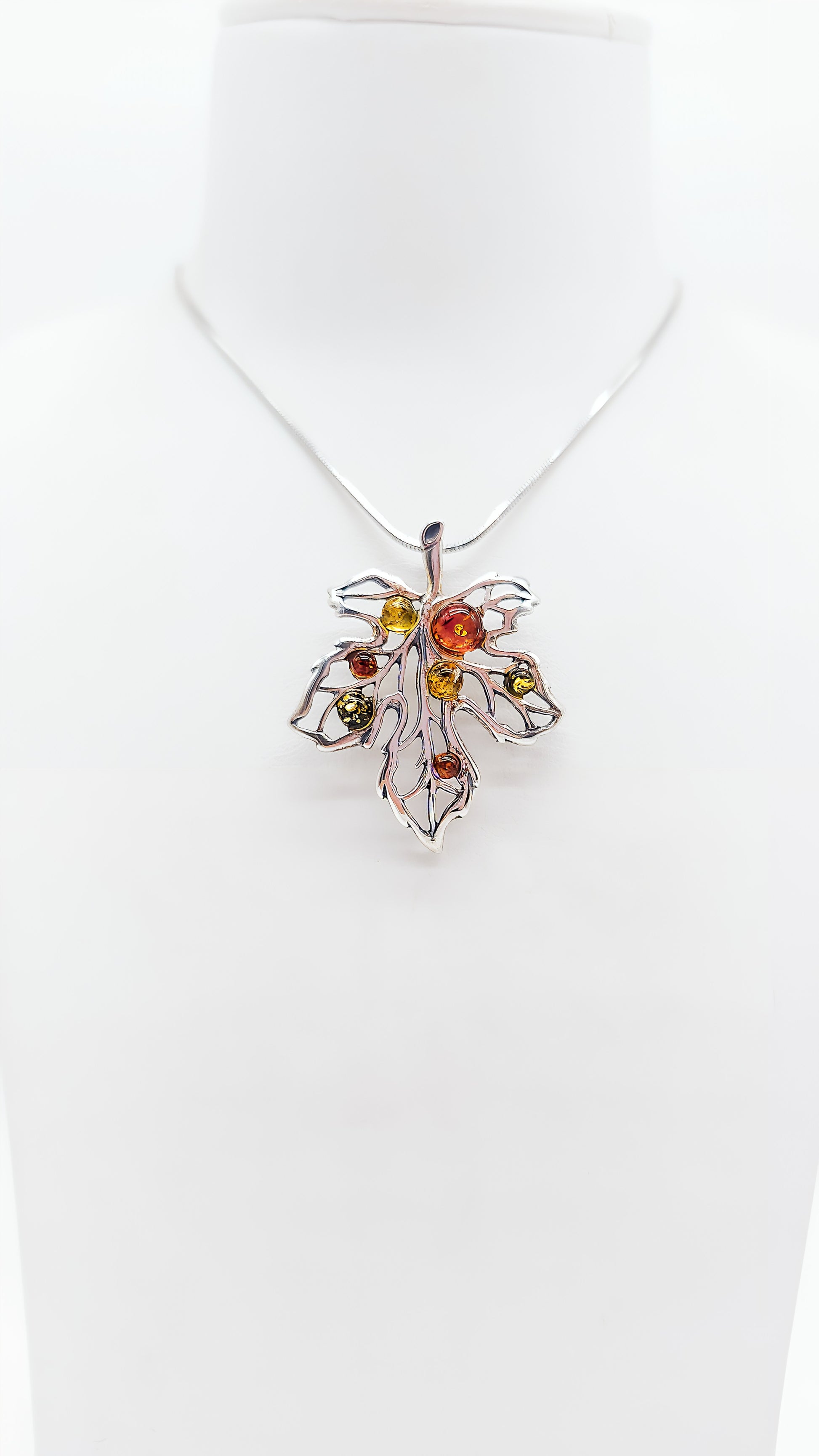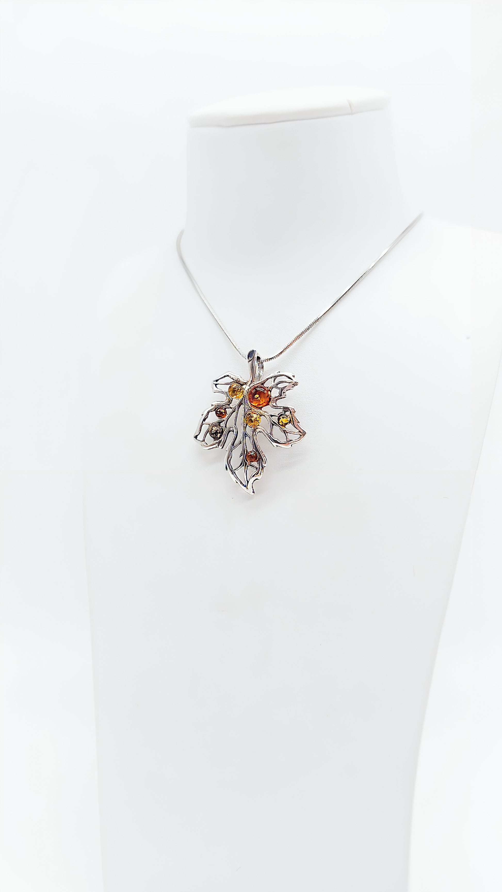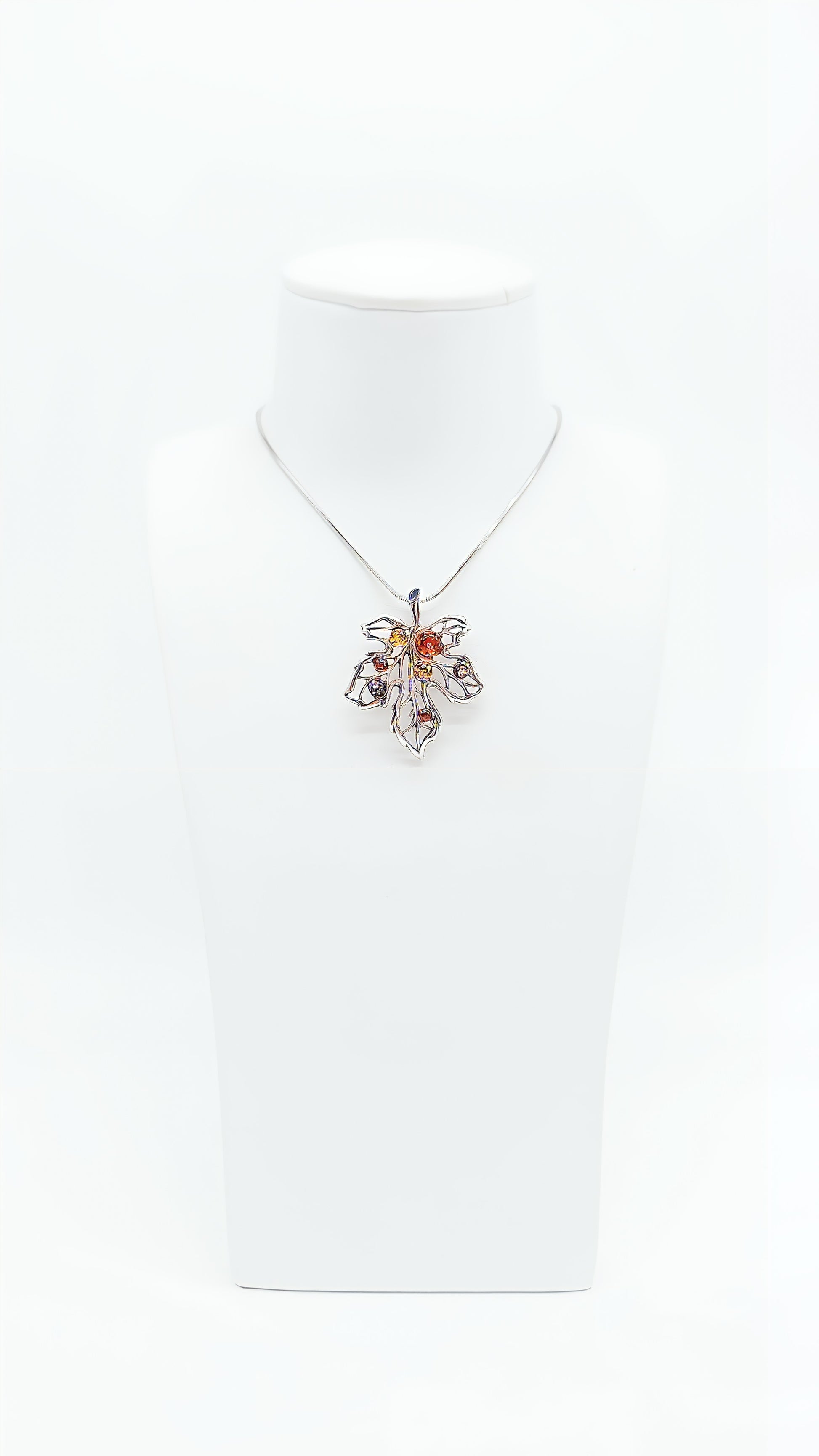 Dieser wunderschöne Anhänger Aus 925er Sterlingsilber ist von der Natur inspiriert und besticht durch sein filigranes Blattdesign, in das verschiedene farbige Bernsteine eingearbeitet sind. Die leuchtenden Farben des Bernsteins – von warmem Orange über strahlendes Gelb bis hin zu tiefem Grün – spiegeln die Vielfalt und Schönheit des Herbstes breiter. Der Anhänger kombiniert das lebendige Funkeln der Bernsteine mit der schlichten Eleganz des Silbers und schafft so ein einzigartiges Schmuckstück, das die Kraft und Farbenpracht der Natur einfängt. Bernstein wird als Symbol für Schutz, Freude und positive Energie betrachtet. Dieser Anhänger ist daher nicht nur ein stilvolles Accessoire, sondern auch ein besonderes Geschenk für Naturfreunde oder als Erinnerung an die warmen, farbenfrohen Herbsttage. Perfekt für besondere Anlässe oder um deinen Alltag mit einem Hauch von natürlicher Eleganz zu bereichern.