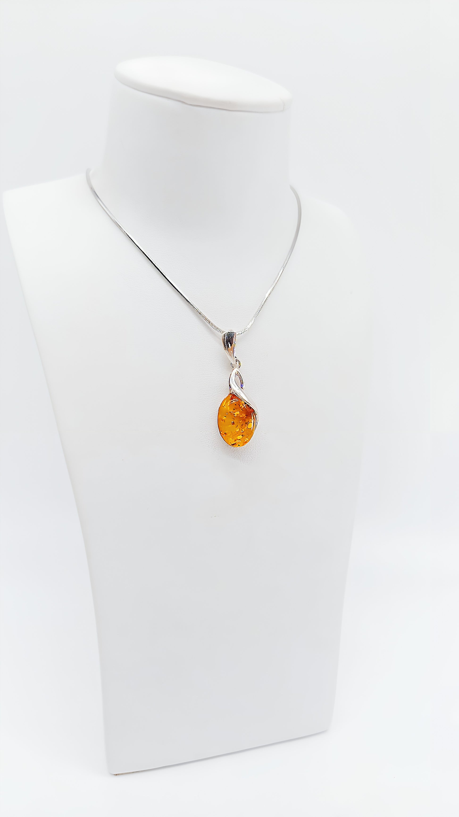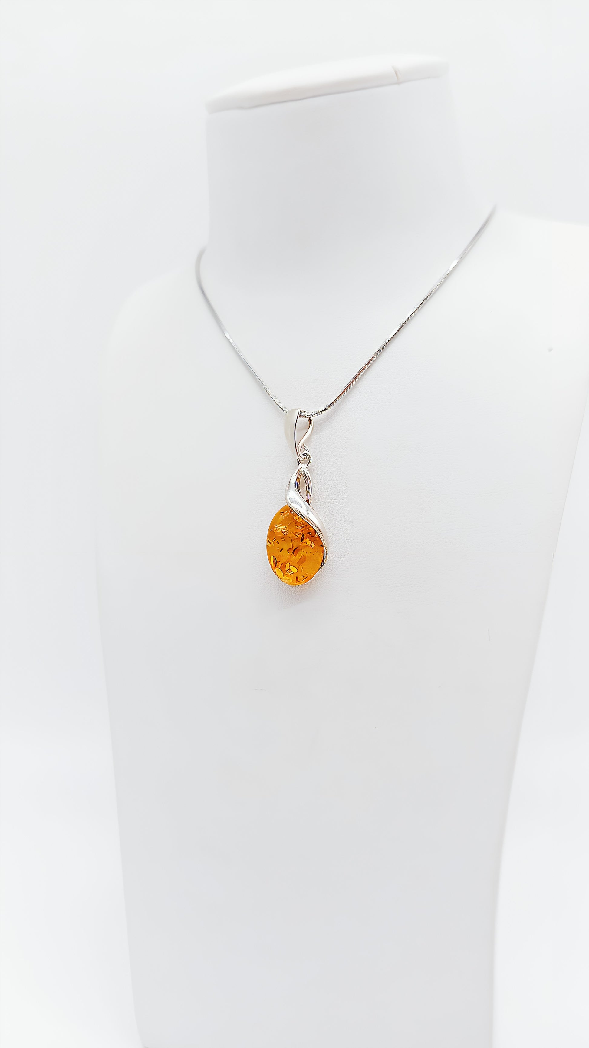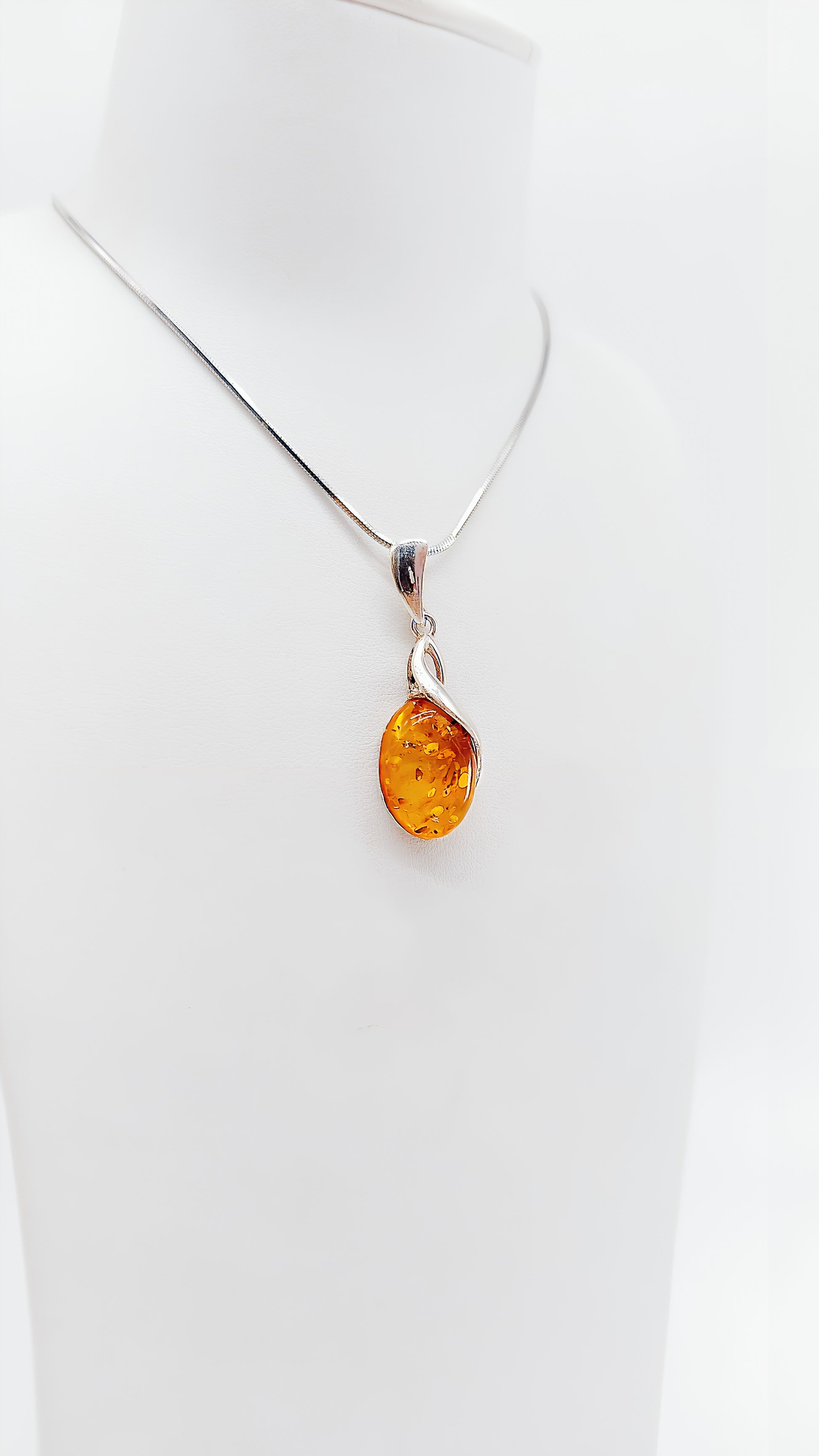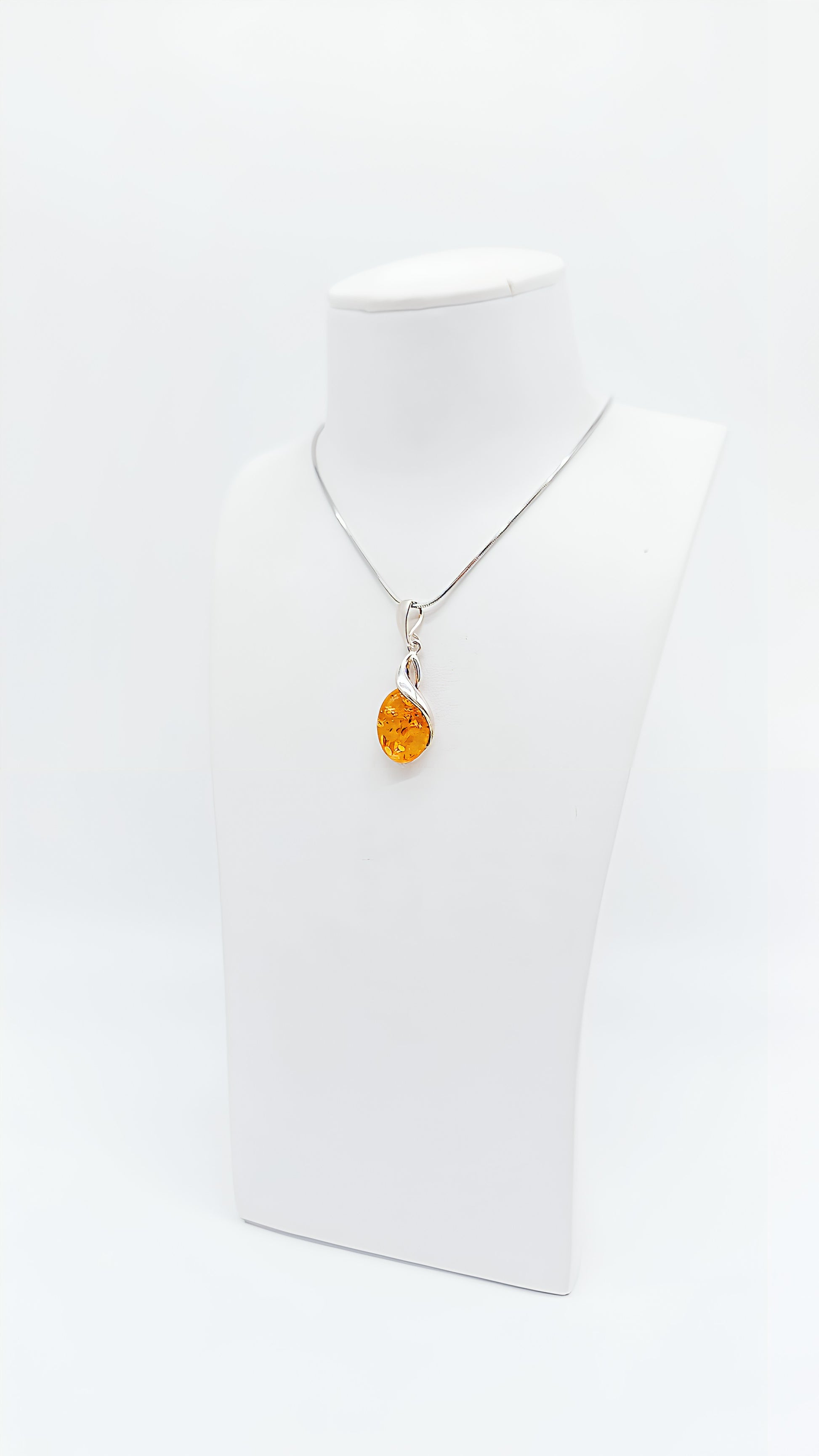 Dieser wunderschöne Anhänger vereint den warmen Glanz eines orangefarbenen Bernsteins mit der kühlen Eleganz aus 925er Sterlingsilber. Die fließende Silberfassung umschlingt den Bernstein und betont seine natürliche Ausstrahlung. Der Anhänger ist ein perfektes Accessoire für Frauen, die einen Hauch von Natur und zeitloser Eleganz in ihrem Stil suchen. Mit seiner leuchtenden Farbe bringt dieser Anhänger Wärme und Lebensfreude in jedes Outfit. Bernstein steht seit Jahrhunderten als Symbol für Schutz und positive Energie – ein wunderbares Geschenk für jemanden, der dir am Herzen liegt, oder als besonderes Schmuckstück für dich selbst. Ob im Alltag oder bei besonderen Anlässen, dieser Anhänger ist ein zeitloser Begleiter.