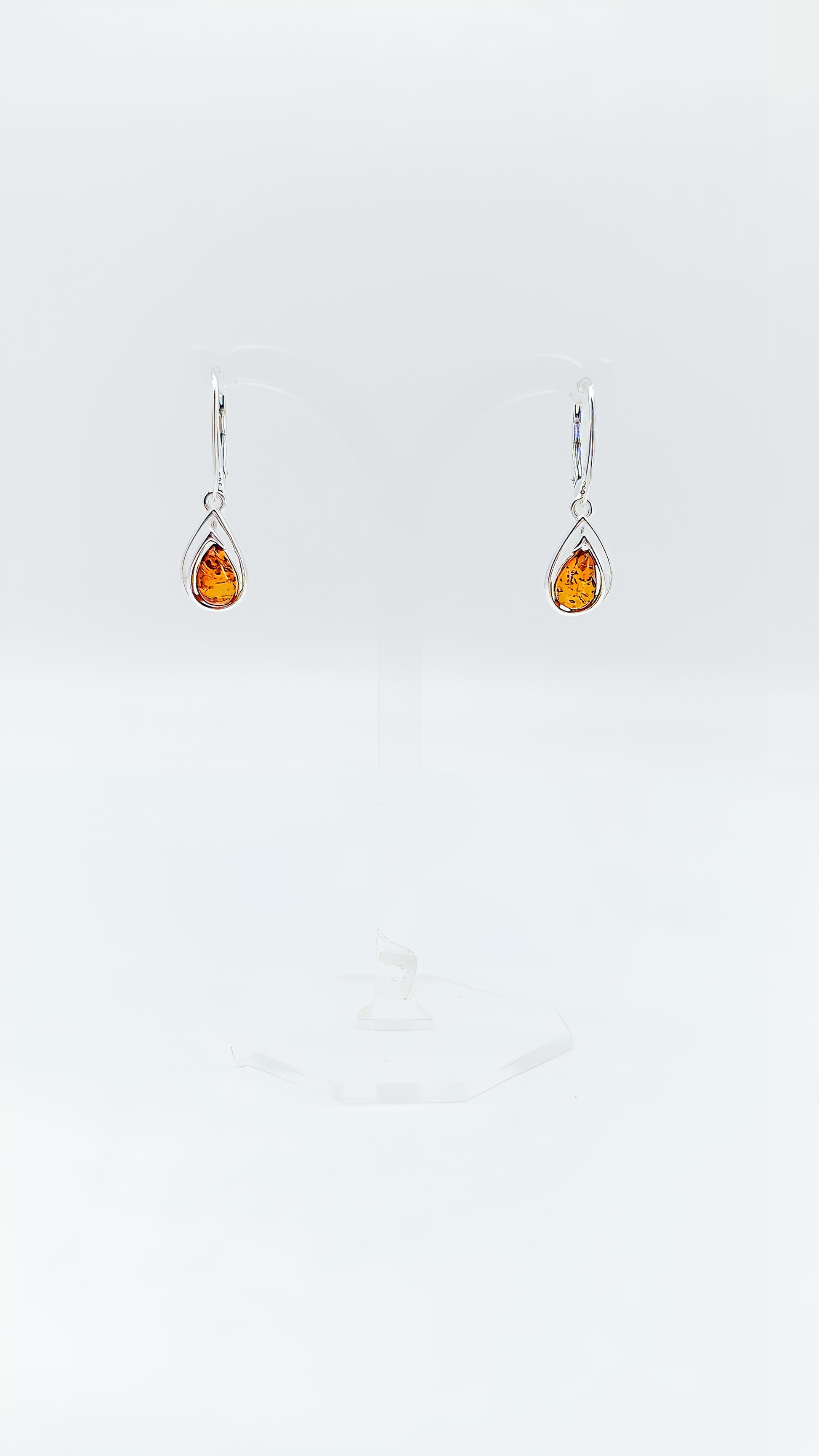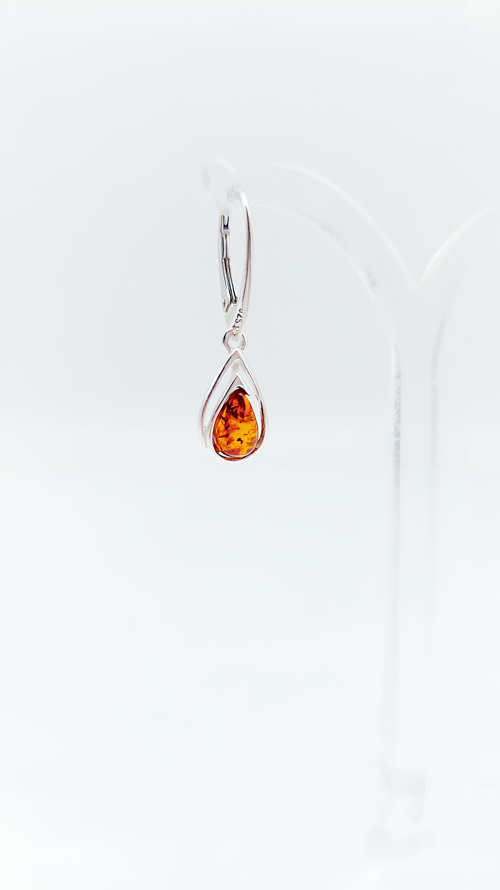 Minimalistische Tropfen-Ohrringe – Bernstein & Silber für dezente Eleganz
