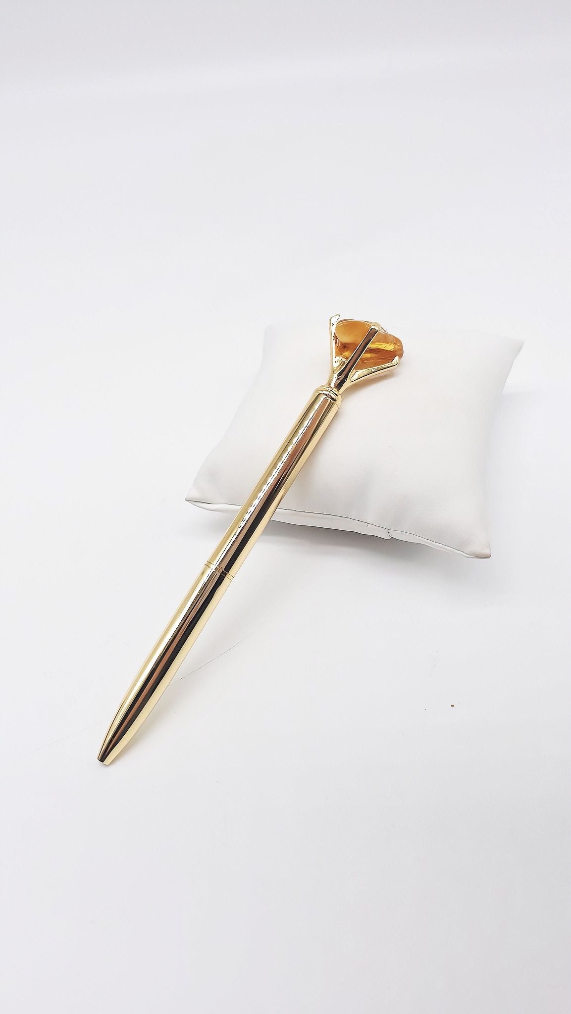 Dieser luxuriöse Kugelschreiber kombiniert goldene Eleganz mit der natürlichen Schönheit von echtem Bernstein. Der funkelnde Bernstein am Griff sorgt für ein edles Highlight und macht den Stift zu einem außergewöhnlichen Accessoire. Ob für den eigenen Schreibtisch oder als besonderes Geschenk – dieser Stift vereint Stil und Funktionalität in einem Design, das beeindruckt. Perfekt für Geschäftspartner, Kollegen oder alle, die das Besondere schätzen.