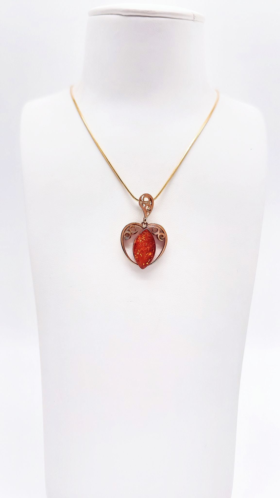 Romantischer Gold-Anhänger mit Bernstein-Herz