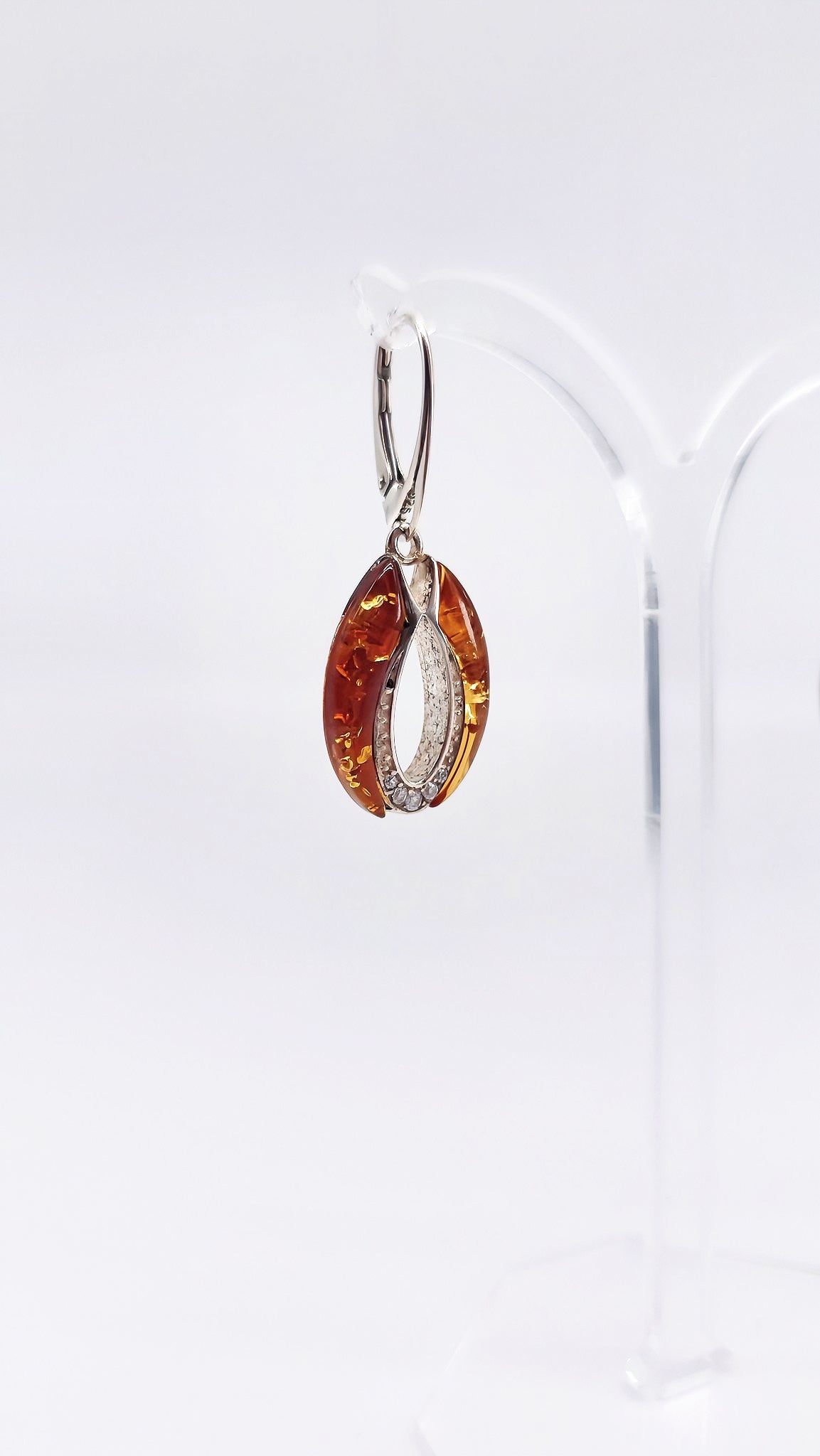Tropfenförmige Ohrringe mit Bernstein – Echtschmuck aus Silber